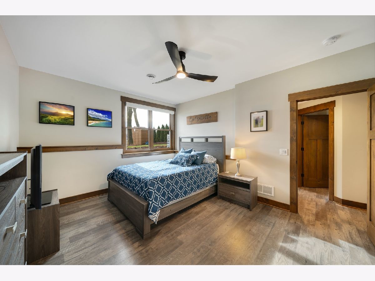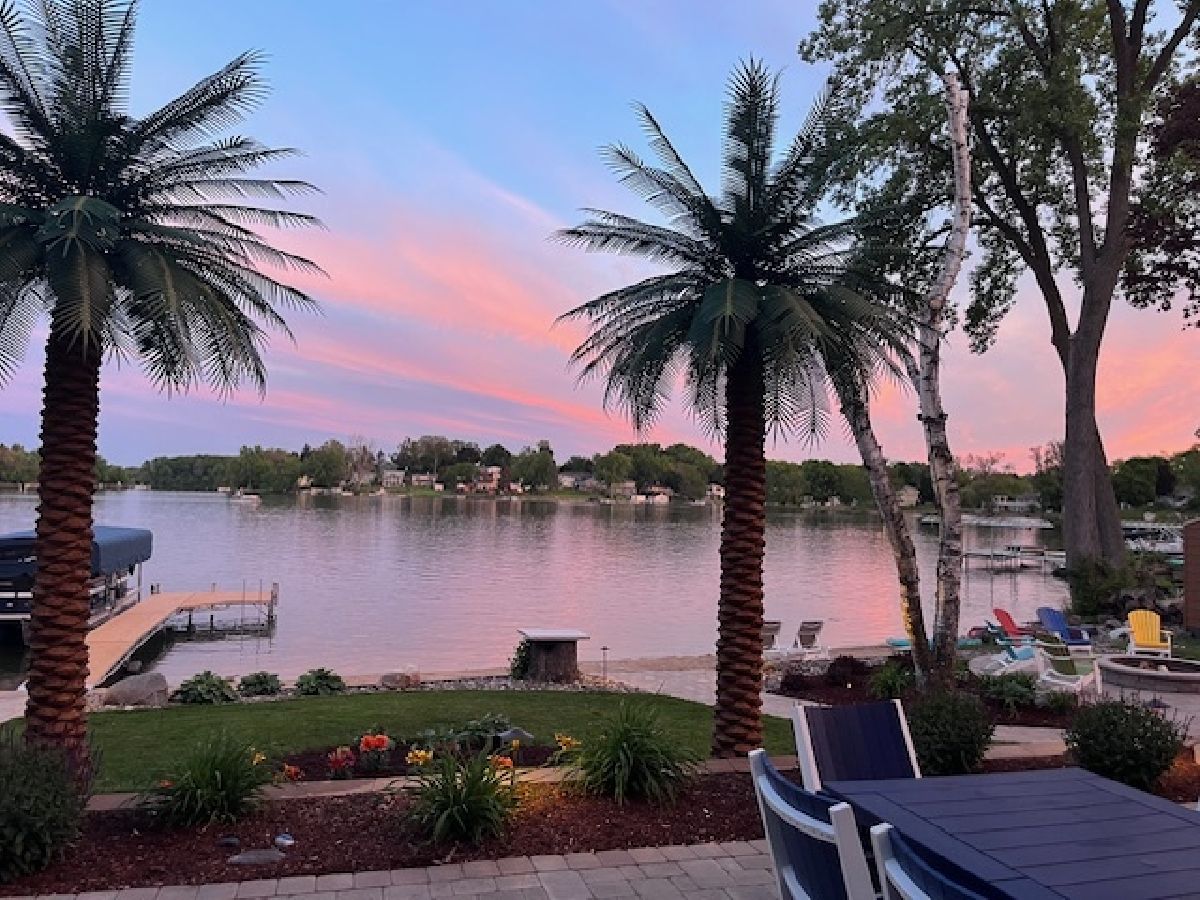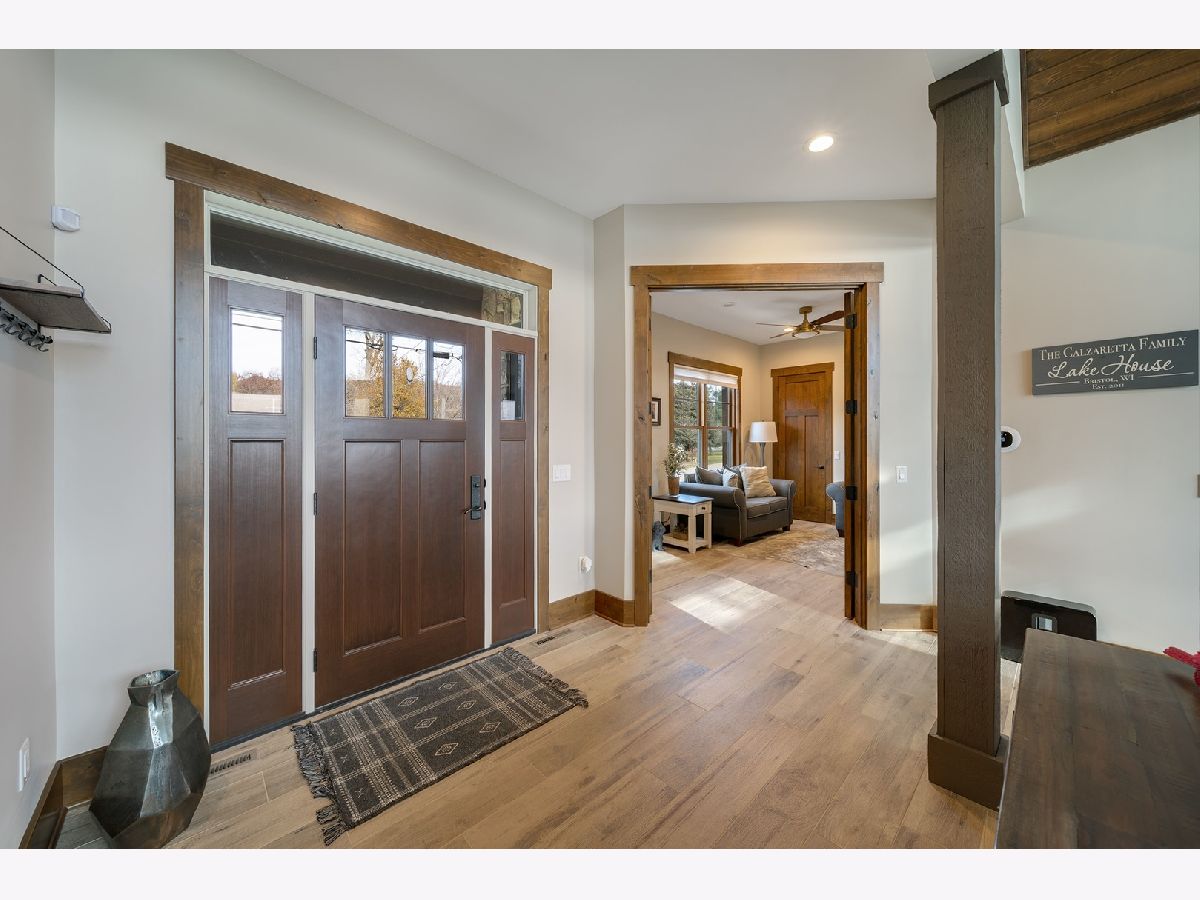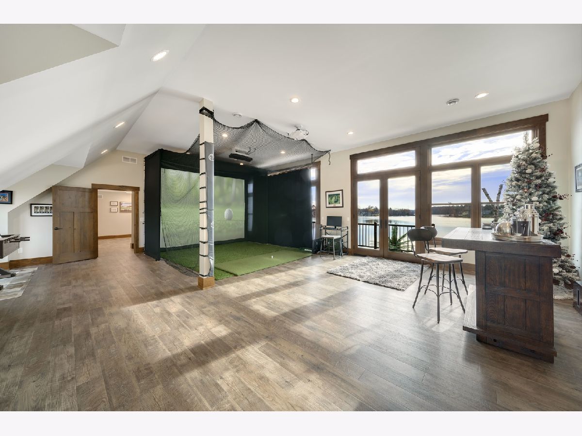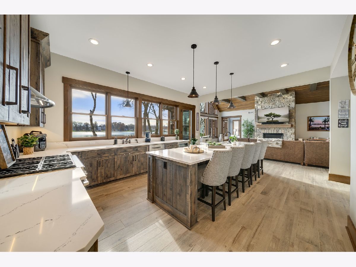 Welcome to Paradise on Lake Shangrila-an extraordinary furnished waterfront estate where luxury lakefront living meets lifestyle and income potential in Southeast Wisconsin. Located in Bristol, WI, just a short drive from Chicago and Milwaukee, this one-of-a-kind property blends high-end design, privacy, and resort-style amenities. From the moment you arrive, the striking exterior-crafted with low-maintenance fiber-concrete logs and hand-selected stone-sets the tone for the craftsmanship throughout. Outside, 120 feet of manicured sandy beachfront, lifelike palm trees, a 10-person firepit, and curated landscape lighting create a private resort atmosphere, while expansive patios and walkways seamlessly connect indoor and outdoor living for effortless entertaining. Inside, the Aspen-inspired interior features soaring A-frame architecture and floor-to-ceiling south-facing windows that flood the home with natural light, flowing into a chef's kitchen with bold custom cabinetry, a 12-foot quartz island, Sub-Zero refrigerator, and premium designer appliances. Designed for both relaxation and recreation, the home offers a luxurious primary suite with a spa-inspired steam shower, private fitness room, and a state-of-the-art golf simulator and theater. The oversized heated garage with pass-through doors opens to an epic indoor-outdoor bar with floor-to-ceiling sliding glass doors, perfect for year-round enjoyment. With no HOA or deed restrictions, this property is ideal for short-term rental investors seeking strong income potential in a growing luxury vacation market. Set along the 185-acre Lake Shangrila with 6.2 miles of shoreline, enjoy boating, kayaking, fishing, and lakeside living, with nearby access to skiing at Wilmot Mountain, scenic forest preserves, golf courses, dining, and convenient access to both Chicago and Milwaukee. This is more than a home-it's a fully furnished waterfront lifestyle investment and one of the most iconic properties in Southeast Wisconsin.