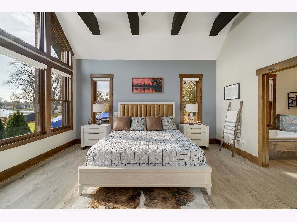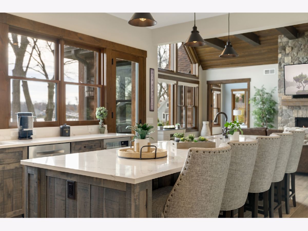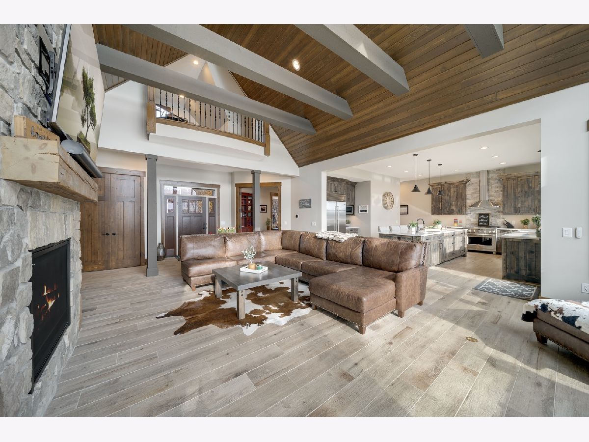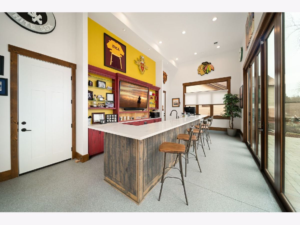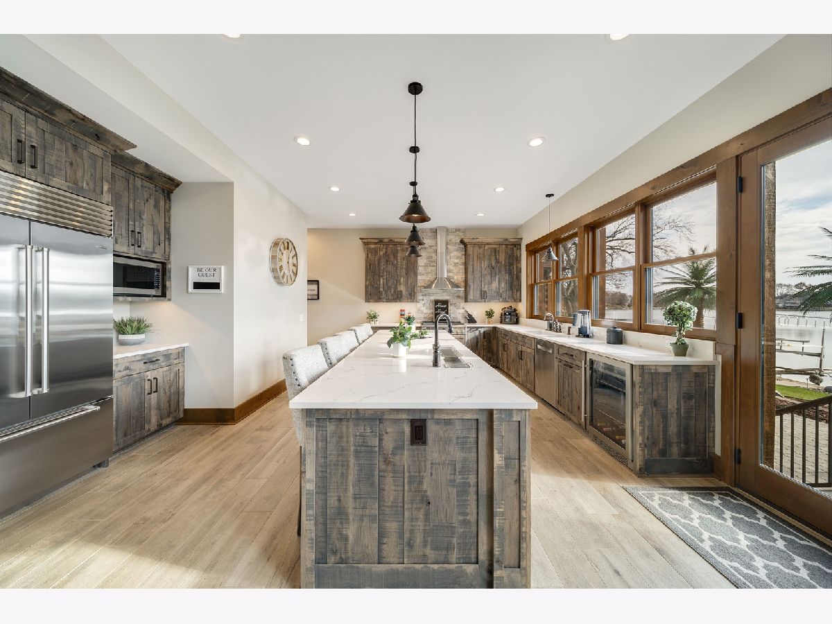 Welcome to Paradise on Lake Shangrila-an extraordinary furnished waterfront estate where luxury lakefront living meets lifestyle and income potential in Southeast Wisconsin. Located in Bristol, WI, just a short drive from Chicago and Milwaukee, this one-of-a-kind property blends high-end design, privacy, and resort-style amenities. From the moment you arrive, the striking exterior-crafted with low-maintenance fiber-concrete logs and hand-selected stone-sets the tone for the craftsmanship throughout. Outside, 120 feet of manicured sandy beachfront, lifelike palm trees, a 10-person firepit, and curated landscape lighting create a private resort atmosphere, while expansive patios and walkways seamlessly connect indoor and outdoor living for effortless entertaining. Inside, the Aspen-inspired interior features soaring A-frame architecture and floor-to-ceiling south-facing windows that flood the home with natural light, flowing into a chef's kitchen with bold custom cabinetry, a 12-foot quartz island, Sub-Zero refrigerator, and premium designer appliances. Designed for both relaxation and recreation, the home offers a luxurious primary suite with a spa-inspired steam shower, private fitness room, and a state-of-the-art golf simulator and theater. The oversized heated garage with pass-through doors opens to an epic indoor-outdoor bar with floor-to-ceiling sliding glass doors, perfect for year-round enjoyment. With no HOA or deed restrictions, this property is ideal for short-term rental investors seeking strong income potential in a growing luxury vacation market. Set along the 185-acre Lake Shangrila with 6.2 miles of shoreline, enjoy boating, kayaking, fishing, and lakeside living, with nearby access to skiing at Wilmot Mountain, scenic forest preserves, golf courses, dining, and convenient access to both Chicago and Milwaukee. This is more than a home-it's a fully furnished waterfront lifestyle investment and one of the most iconic properties in Southeast Wisconsin.