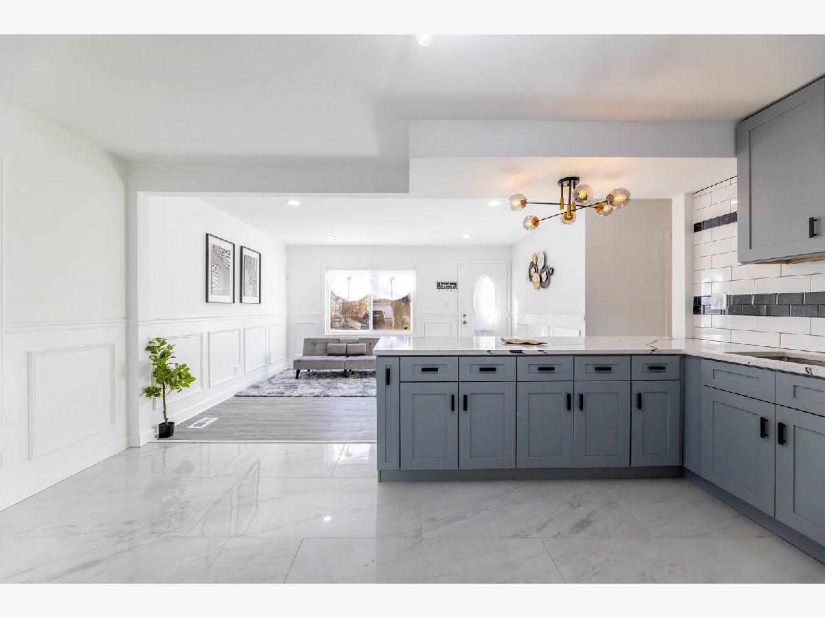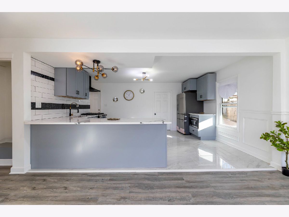 Welcome to this spectacular 6 bedroom and 2 full bathroom home with a beautiful finished basement in desired Sauk Village. This beautifully updated home offers an abundance of space and natural light throughout, with 4 bedrooms on the main level. The gleaming brand new floors welcome you in the spacious living room with wonderful views of the gorgeous tree lined street. The living room guides you into the spectacular kitchen that offers an open concept perfect for when entertaining guests. You will find beautiful stainless steel appliances in the gorgeous kitchen that boasts an abundance of white shaker cabinets and quartz countertop space that features a peninsula breakfast bar so you can enjoy meals with family and friends. In the marvelous full finished basement you will find the expansive family room that offers a serene setting with endless possibilities, 2 bedrooms, a full bath, and a laundry room. The spacious backyard features a patio and fully fenced yard for the kids and pets to play, perfect to enjoy those summer barbecue's with family and friends. A 2 car garage with a desired side driveway with room for 4 cars. The proximity to parks, schools, golfing, shopping and dining is outstanding.