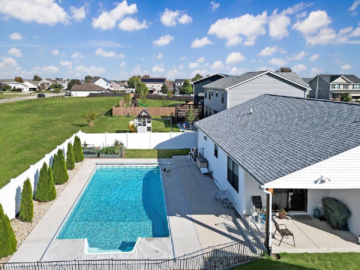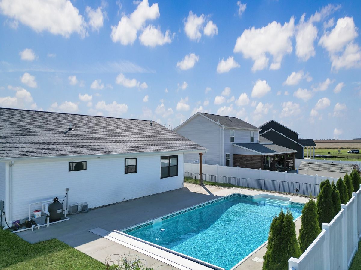 Prepare to fall in love the moment you step inside! This thoughtfully designed ranch offers an effortless flow with its bright, open-concept kitchen and great room-an ideal space for everyday living and comfortable entertaining. The split-bedroom layout provides wonderful separation, giving the primary suite a peaceful sense of privacy. The suite feels like a personal retreat with its spacious walk-in closet and beautifully tiled walk-in shower. The kitchen is sure to impress with the upgrades like soft-close cabinetry, quartz countertops, a stylish tiled backsplash, and stainless steel appliances. Just off the kitchen, enjoy easy access to the covered back patio that leads seamlessly to the sparkling in-ground pool- perfect. Great for entertaining with plenty of space for grilling, relaxing by the pool, or just sitting under the covered patio enjoying your morning coffee. Built with quality in mind, this home includes 2x6 exterior construction, LED puck lighting for exceptional efficiency and warmth, convenient USB charging outlets, a WiFi-programmable thermostat, high-efficiency HVAC system, and MyQ smart-garage technology that lets you open and close the garage right from your phone. Every detail is designed for comfort, convenience, and peace of mind. This home will surely impress you with its' quality and pristine condition.