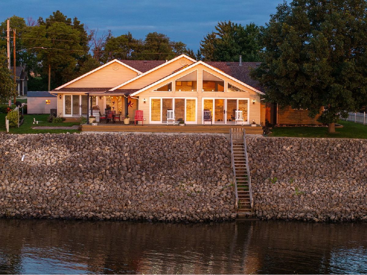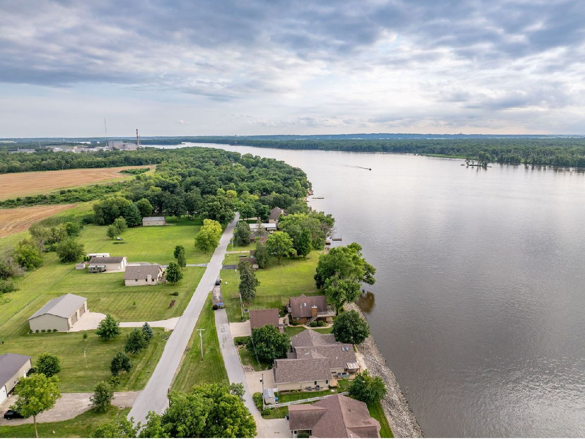 Breathtaking Mississippi Riverfront property offers dramatic wall of windows, and an open-concept layout with vaulted ceilings that showcases magnificent sunsets, wildlife and barges floating down the river. NO FLOOD INSURANCE! Wrap-around deck with pergola invites outdoor living, now enhanced with a new BBQ wind break-perfect for year-round grilling and entertaining. The grand suite offers a spacious and serene retreat, featuring two large walk-in closets, including one with barn doors added in 2021- ideal for use as a home office or den. The ensuite bathroom was completely remodeled in 2025, blending modern finishes with spa-like comfort. The in-law suite, fully updated in 2025, includes a private entrance and kitchen, providing flexibility for guests, rental use, or multigenerational living. A fully remodeled hallway bath (2025) further enhances the home's modern feel. The gourmet kitchen boasts gorgeous countertops, tiled backsplash, abundant cabinet space, high-efficiency kitchen-aid appliances-all new in 2021, and a 5-burner Bosch cooktop. Additional upgrades include ceramic tile flooring, new carpet, fresh paint and updated lighting throughout. Ultimate 36' x 64' Cleary building includes heated 32' x 36' workshop with bar, radiant floor heating, 10'x10' insulated doors. AMP RV drop, updated well pump/holding tank and additional spigots. New Roof, commercial-grade water heater 2022, water softener 2023 and reverse osmosis 2021. New landscaping, fencing, lighting 2021. Seller is offering a home warranty which offers added peace of mind to the new buyers. This home is priced to sell. Don't miss your chance to make this home yours today! Come see all this home has to offer!