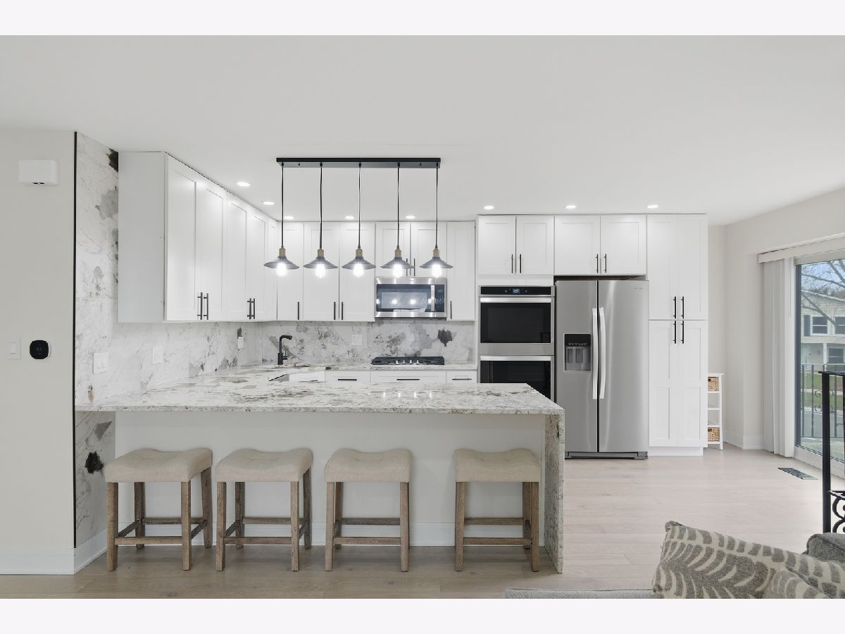 Completely remodeled 2-bedroom, 1-bath 2nd floor condo with private garage in sought-after Inverrary West. Bright open layout features a spacious living room with built-in fireplace and access to a private balcony. Updated kitchen offers a large island, built-in refrigerator, microwave, wine cooler, dishwasher, and ample cabinet space. Both bedrooms offer generous closets including a walk-in closet. Fully remodeled bathroom, brand new in-unit washer and dryer, and central AC. Community amenities include outdoor pool and well-maintained grounds. Convenient location close to shopping, dining, Metra, and more. Fully updated in 2024 and move-in ready.