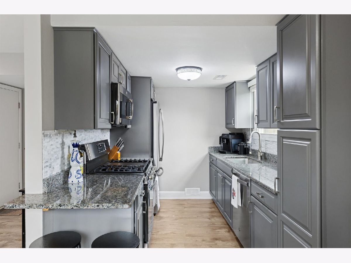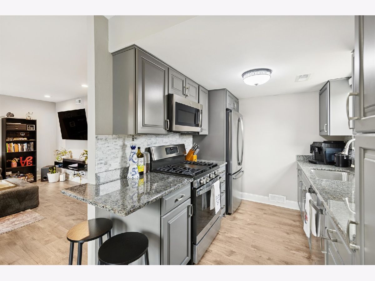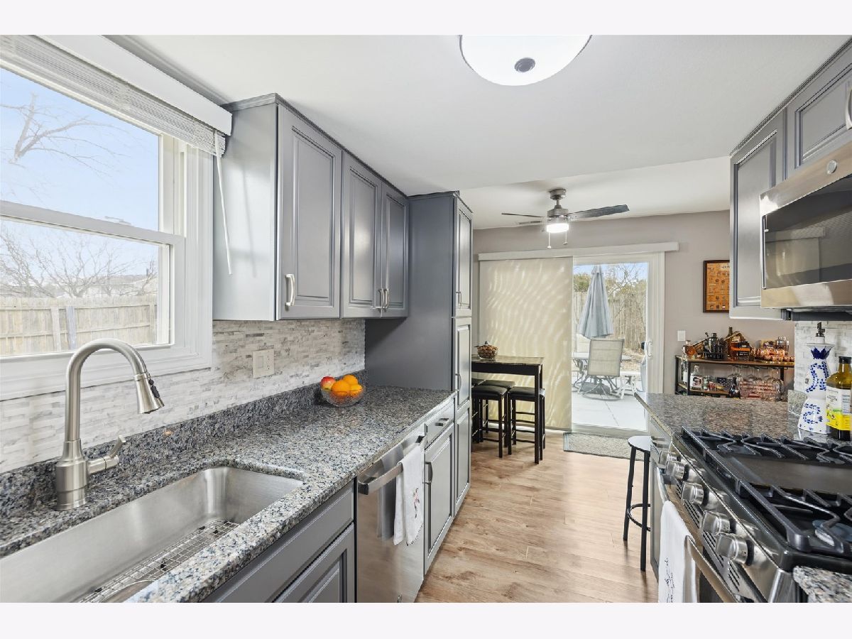 Impeccably maintained and completely updated, this move-in ready 2 bedroom, 1.1 bath duplex sits on a premium corner lot with an oversized yard in a desirable school district and no HOA. The redesigned kitchen (2022) features custom cabinetry with added pantry, granite countertops with extended breakfast bar, designer backsplash, deep sink, and stainless steel appliances (2021). The full bath was remodeled (2020) and the powder room updated with a floating vanity (2025). Luxury vinyl plank flooring, fresh paint, updated lighting and electrical, custom closet systems, a laundry room with added storage, plus attic and crawl space storage provide exceptional functionality. Major improvements include the furnace, roof, siding, and gutters (2019), windows (2014), hot water heater (2024), epoxy garage floor (2023), new insulated garage door (2025), and upgraded insulation (2025). Smart features include a Nest thermostat and Blink security system with wired sensors and video doorbell. The expansive fenced backyard offers an extended patio (2024), firepit (2021), and enhanced landscaping, all within walking distance to the park and lake with easy access to shopping.