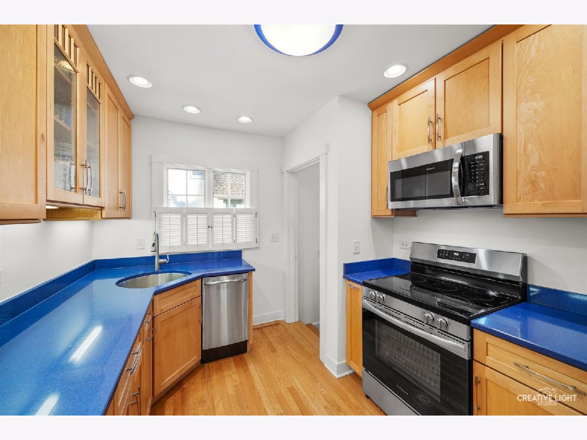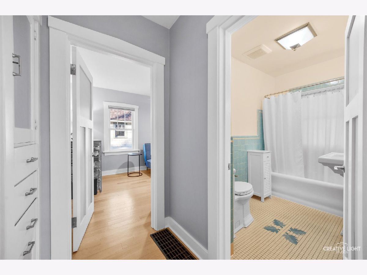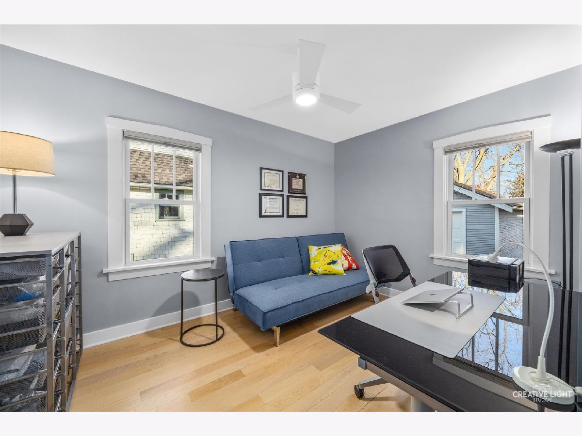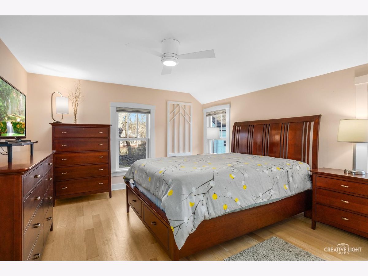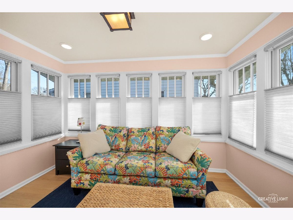 Built in 1929, this beautifully maintained home blends historic charm with thoughtful modern updates and is located in the desirable Aurora University District. Original character has been preserved while enhancing comfort and functionality throughout the home. Recent improvements include new hardwood floors throughout, custom window treatments, and Marvin fiberglass double-hung replacement windows. The sunroom was completely rebuilt with new insulation, walls, and flooring, creating a bright and inviting space filled with natural light. The modern galley kitchen offers efficient design and updated finishes, while the main floor bathroom has been carefully updated to maintain the classic character of the home. The second floor master bathroom was fully renovated in 2024, featuring a spacious fully tiled walk-in shower and updated fixtures. The main level also includes a second bedroom with private access to the back porch, offering flexibility for guests, office space, or convenient single-level living. Additional updates include a recently waterproofed and sealed basement with new laundry sink. The basement remains unfinished, providing storage and future potential. Outside, the generous yard offers space to relax, garden, or entertain. Located just moments from Aurora University, parks, and local amenities, this home offers a rare opportunity to enjoy the character of a classic 1920s home with modern updates and move-in readiness.