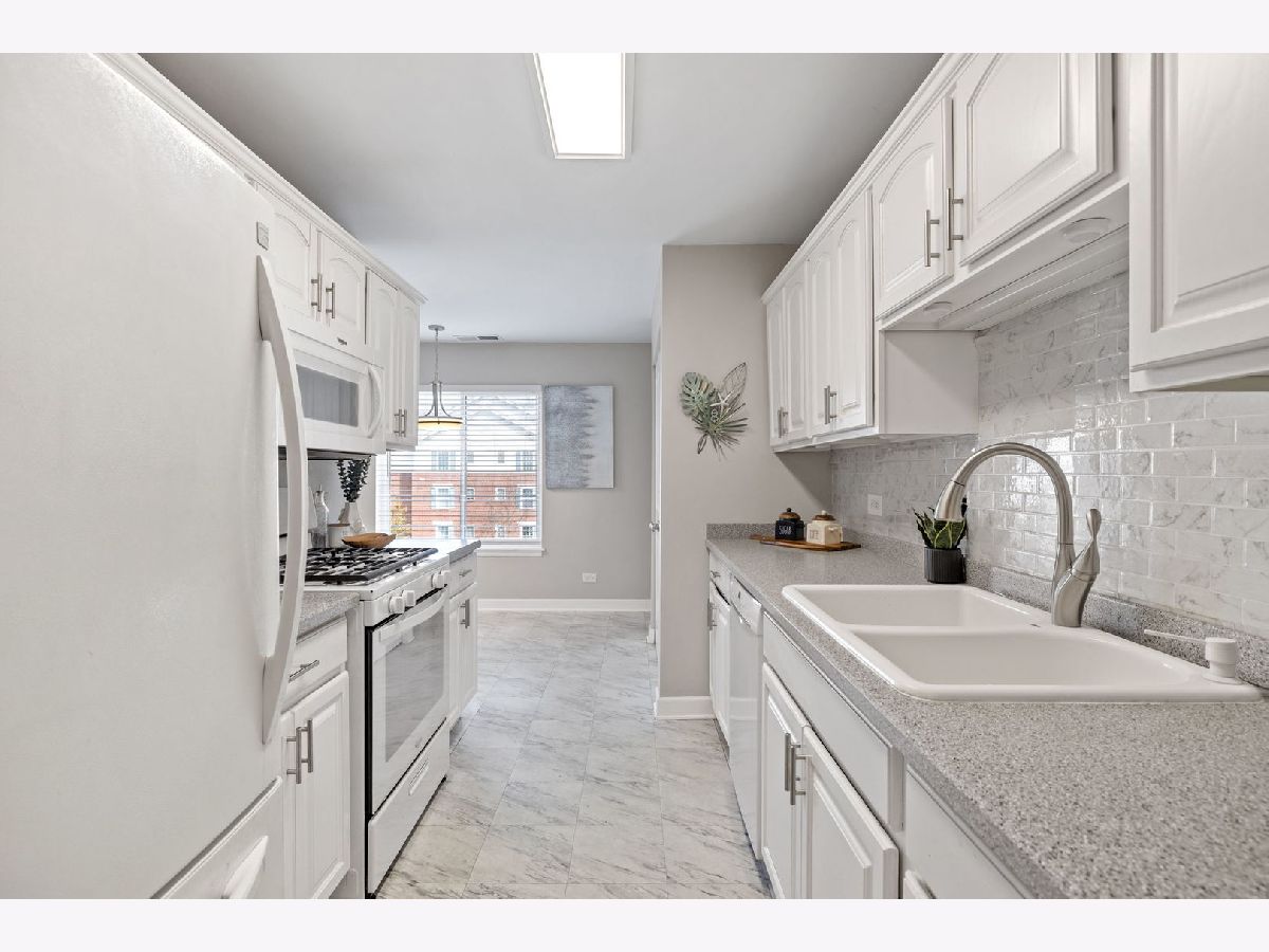 Fantastic location! Beautifully updated and rarely available corner unit featuring 3 spacious bedrooms and 2 full bathrooms. Flooded with natural light, this home offers a seamless blend of comfort and functionality, ideal for everyday living and entertaining. The open-concept living and dining areas flow effortlessly, while the eat-in kitchen provides a charming view of the courtyard, pool, clubhouse and morning sunrise. The kitchen is beautifully updated with white cabinetry and a stylish backsplash. The primary suite, along with the secondary and guest bedrooms, each boast breathtaking sunset views. Adding comfort and convenience, the primary suite offers a generous walk-in closet. Additional features include newer windows, newer sleek sliding glass doors, modern flooring, and the convenience of in-unit laundry. Custom 2-inch blinds have been thoughtfully installed on every window. Ample storage is found throughout the home, including a generous pantry, linen closet, and foyer closet-perfect for keeping everything organized and within reach. Unwind on the patio while taking in the captivating sunsets and a canopy of stars after dark. Residents enjoy a wide range of premium amenities covered by the assessment including a poolside clubhouse, tennis courts and essential utilities such as gas, water, garbage removal, and building maintenance. In the summer months, cool off and unwind in the luxury of a sparkling in-ground pool, a serene retreat ideal for both tranquil relaxation and outdoor entertaining. Convenience is enhanced with same-floor storage, a garbage chute and elevator access. For colder winter months, enjoy the luxury of an indoor heated garage space with a large, additional storage unit. This home is located just steps away from Yorktown Mall, Target, the new and upcoming Fresh Market boutique grocer, and a variety of fine dining options. With scenic lakeside parks nearby, quick access to I-88 and I-355, and less than 12 minutes to both Lombard and Downers Grove Metra stations, this home offers the perfect blend of lifestyle, comfort, and convenience - recreation and shopping are a breeze.