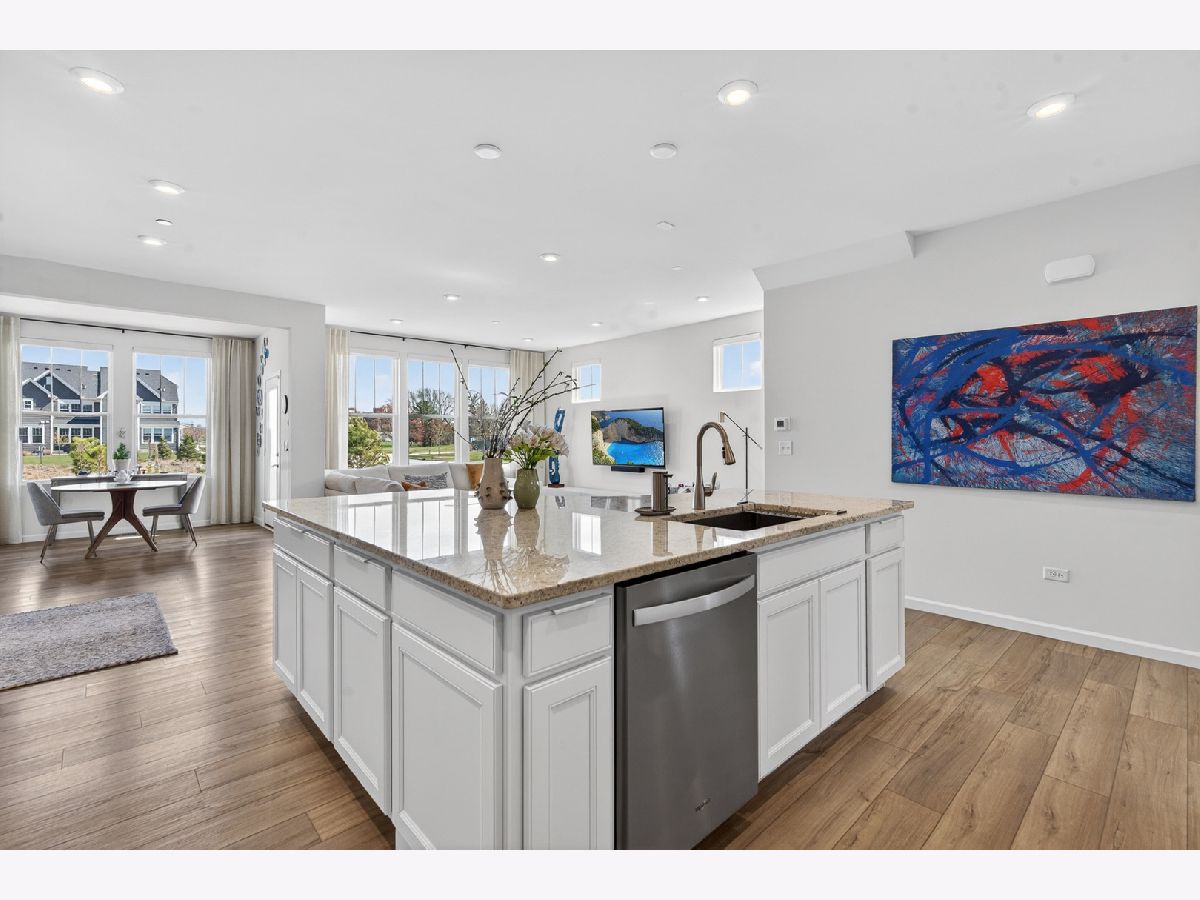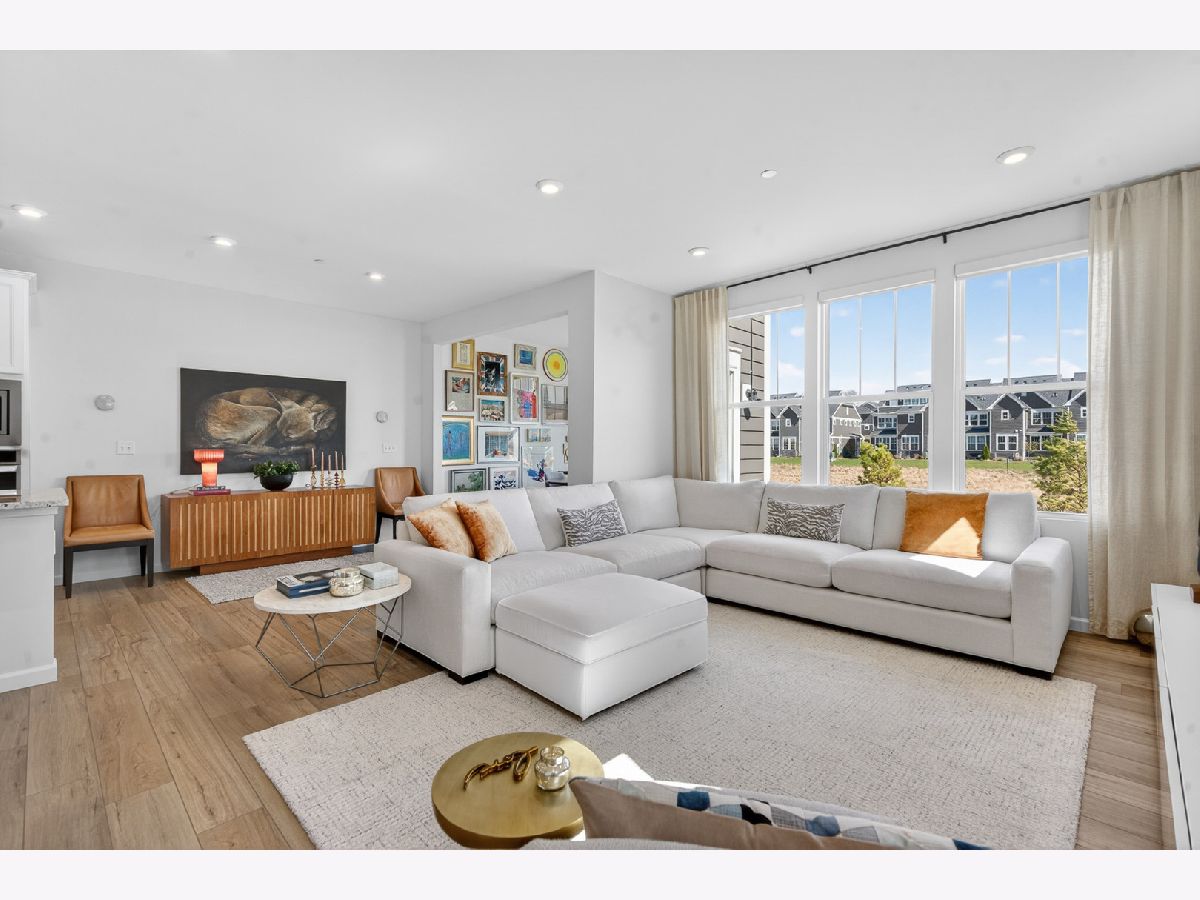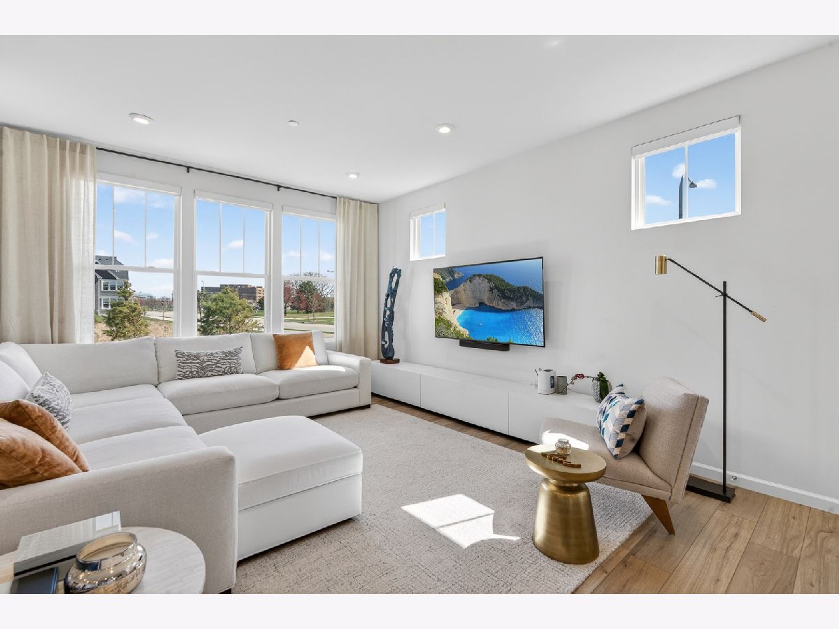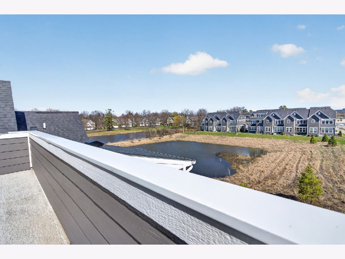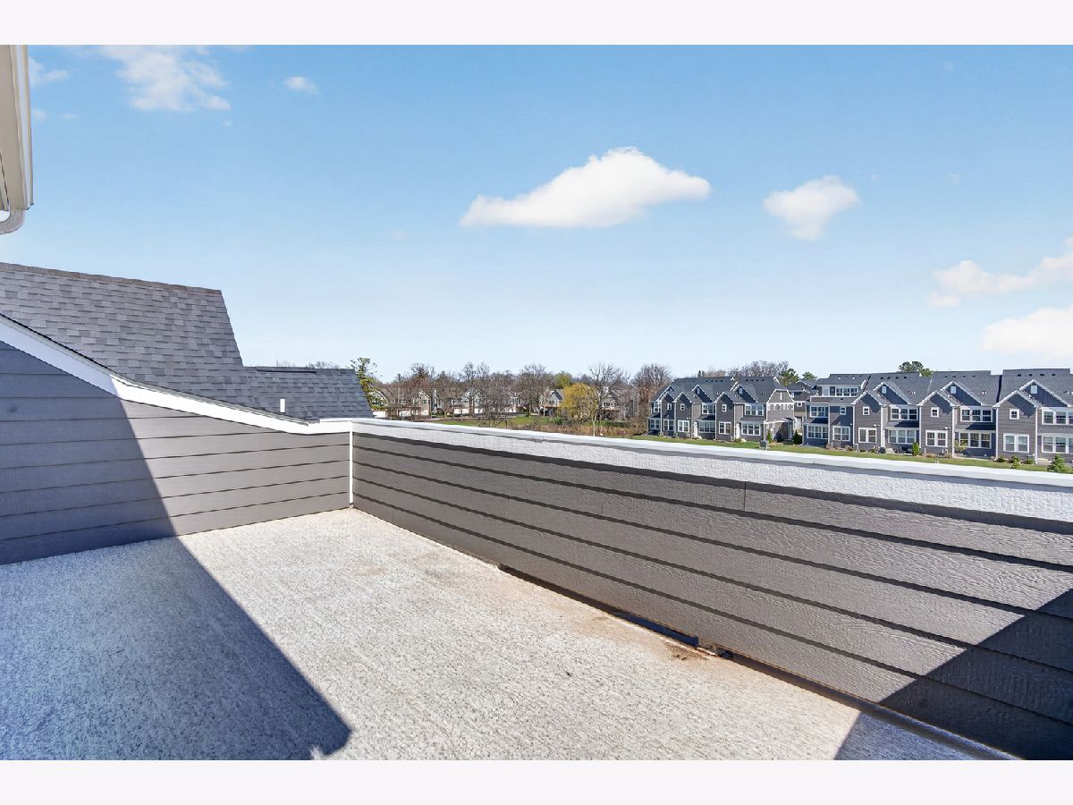 Welcome to Naper Commons, an exceptional community by Pulte Homes, ideally located within the highly acclaimed Naperville Community Unit School District 203. This stunning end-unit home makes a memorable first impression with its charming wraparound front porch and desirable east-west exposure, filling the space with abundant natural light throughout the day. Boasting 2,566 square feet across three thoughtfully designed levels, plus a full basement, this residence offers both space and versatility. With three generously sized bedrooms and 2.5 baths, it is perfectly suited for comfortable living and effortless entertaining. The main level showcases a beautifully appointed gourmet kitchen featuring granite countertops, 9-foot ceilings, recessed lighting, 42-inch cabinetry, a five-burner cooktop with a professional hood, stainless steel appliances, and a bright sunroom. Wood laminate flooring flows seamlessly throughout the home, including the second floor. Upstairs, the spacious primary suite offers a private retreat with a luxurious bath, complete with a soaking tub and a large walk-in closet with custom organizers. All bedrooms include walk-in closets, and the convenience of second-floor laundry enhances everyday living. The third level presents a versatile and expansive loft or game room, complemented by a private rooftop terrace-ideal for relaxation or entertaining. A full basement provides ample storage or the perfect opportunity for a home gym. Additional features include custom electric blinds and blackout shades in select rooms. Built in 2023, the home also includes a transferable builder warranty for added peace of mind. Perfectly positioned just minutes from Downtown Naperville, with easy access to I-88, Arrowhead Golf Club, and the scenic Danada Forest Preserve, this home offers the ideal blend of convenience and tranquility.