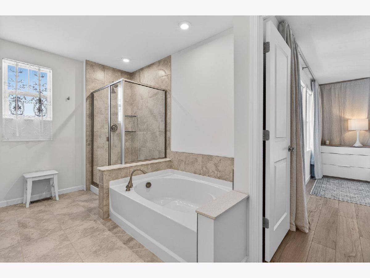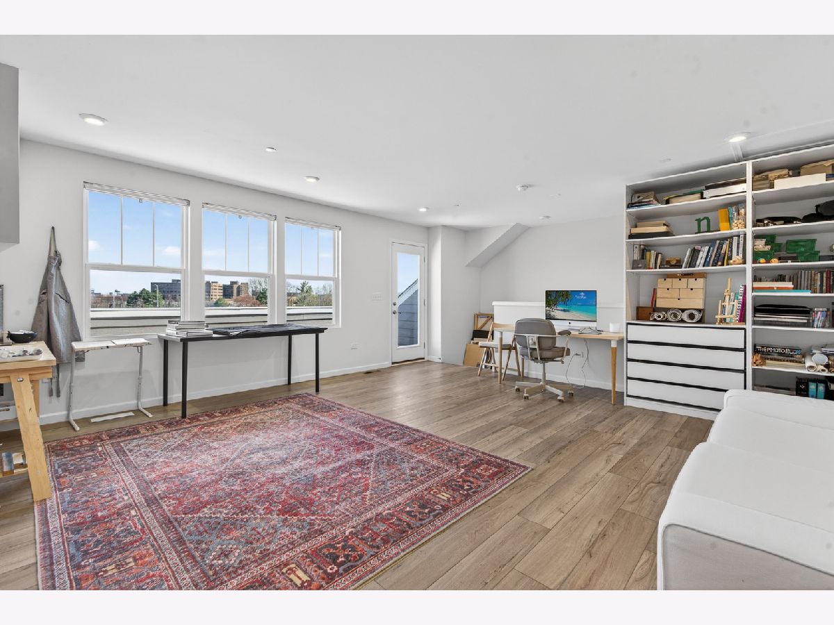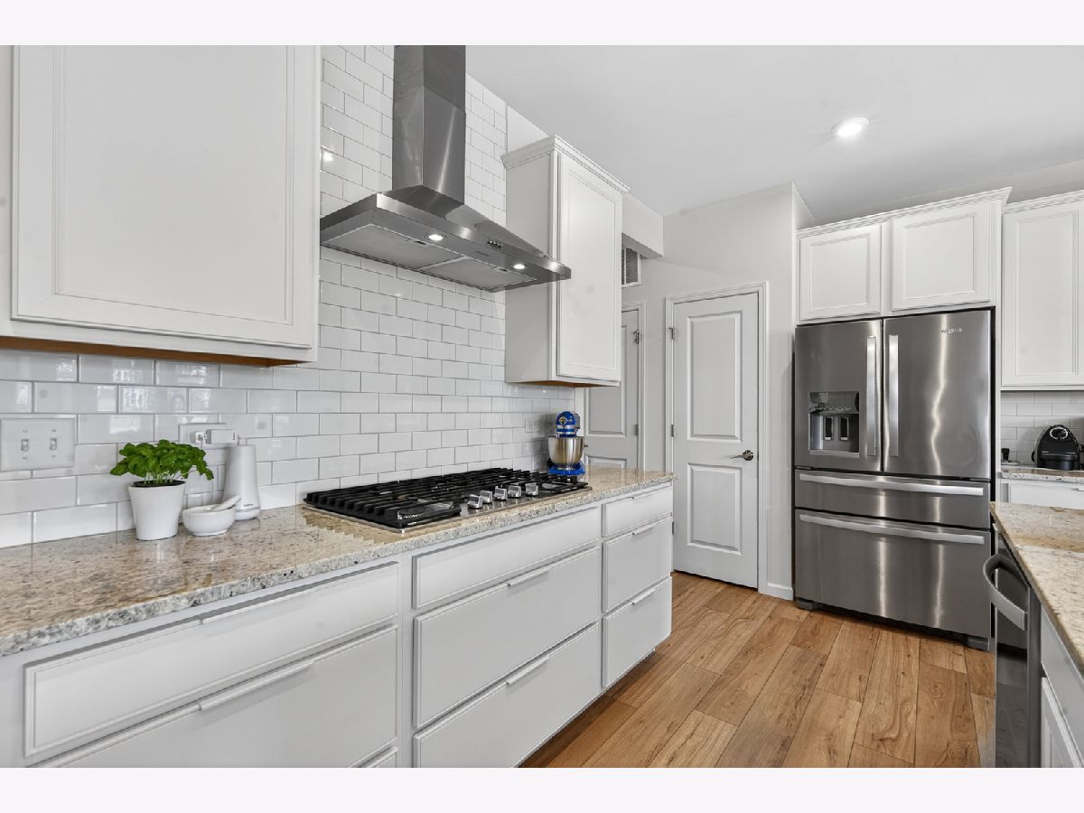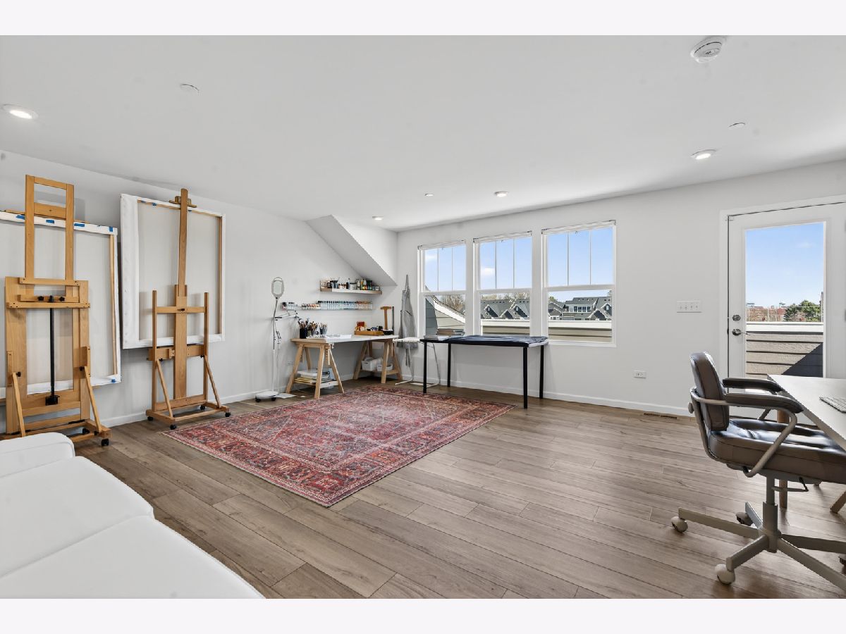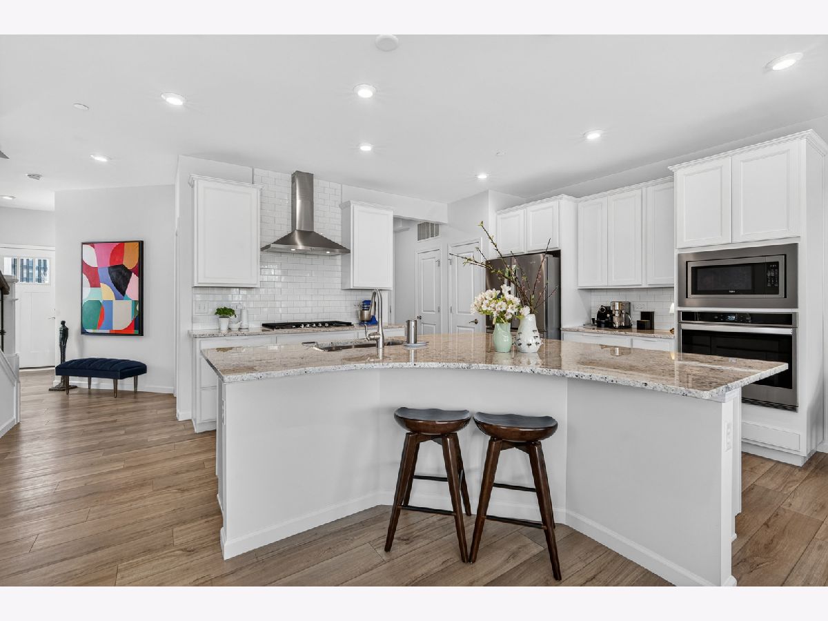 Welcome to Naper Commons, an exceptional community by Pulte Homes, ideally located within the highly acclaimed Naperville Community Unit School District 203. This stunning end-unit home makes a memorable first impression with its charming wraparound front porch and desirable east-west exposure, filling the space with abundant natural light throughout the day. Boasting 2,566 square feet across three thoughtfully designed levels, plus a full basement, this residence offers both space and versatility. With three generously sized bedrooms and 2.5 baths, it is perfectly suited for comfortable living and effortless entertaining. The main level showcases a beautifully appointed gourmet kitchen featuring granite countertops, 9-foot ceilings, recessed lighting, 42-inch cabinetry, a five-burner cooktop with a professional hood, stainless steel appliances, and a bright sunroom. Wood laminate flooring flows seamlessly throughout the home, including the second floor. Upstairs, the spacious primary suite offers a private retreat with a luxurious bath, complete with a soaking tub and a large walk-in closet with custom organizers. All bedrooms include walk-in closets, and the convenience of second-floor laundry enhances everyday living. The third level presents a versatile and expansive loft or game room, complemented by a private rooftop terrace-ideal for relaxation or entertaining. A full basement provides ample storage or the perfect opportunity for a home gym. Additional features include custom electric blinds and blackout shades in select rooms. Built in 2023, the home also includes a transferable builder warranty for added peace of mind. Perfectly positioned just minutes from Downtown Naperville, with easy access to I-88, Arrowhead Golf Club, and the scenic Danada Forest Preserve, this home offers the ideal blend of convenience and tranquility.