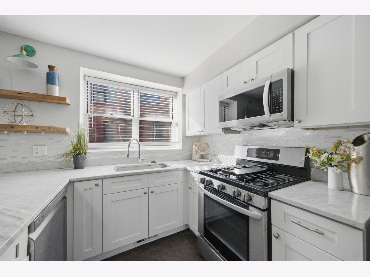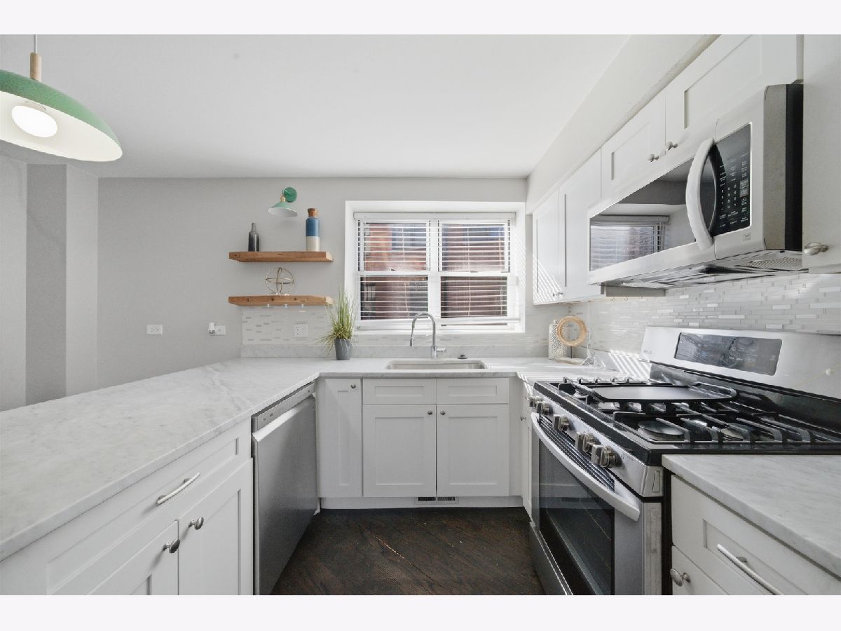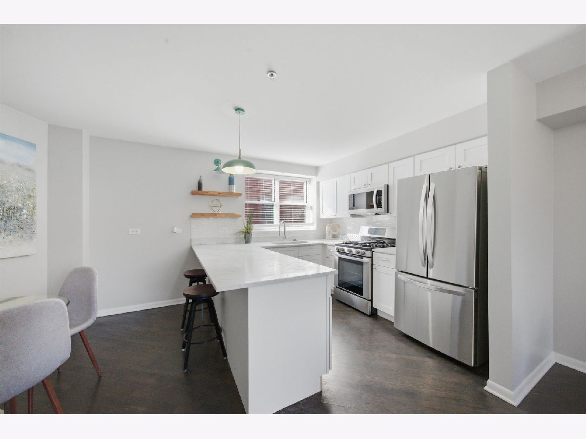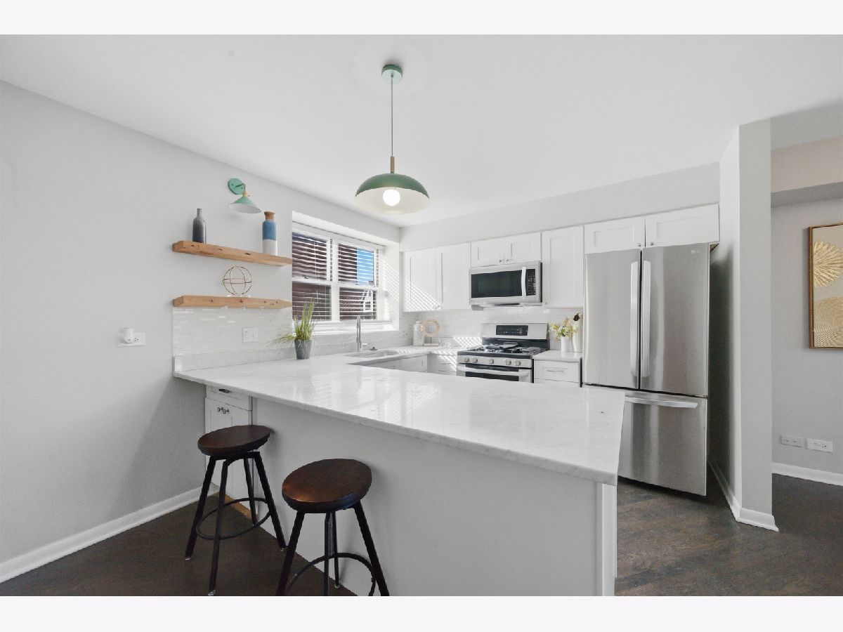 Rarely available waterfront 2-bedroom, 2.1-bath townhouse located in a private, gated community along the edge of the Chicago River, offering direct river access with a kayak launch and beautiful water views! This pet-friendly community features a fully fenced private backyard, an incredibly rare find in the city, along with easy access to the Riverwalk. The home showcases a chef's kitchen with classic white cabinetry, quartz countertops, stainless steel appliances, and an expansive breakfast bar with ample seating. The sun-filled living room features a charming fireplace and opens to a private balcony, perfect for entertaining or relaxing while enjoying the river views. The second level offers two spacious bedrooms, including a primary suite with an en-suite bath, along with a second full bath conveniently located next to the guest bedroom. The entrance level includes a half bath, additional storage, and access to your private fenced backyard. Additional storage is located on the lower level, and the home also includes roof rights. Additional highlights include fresh paint, brand new carpet, in-unit washer/dryer, tandem parking (one garage space plus one driveway space), and a hardwood floors on the main level. Ideally located with CTA Route 76 directly in front, and just steps from shopping, Target, Costco, fitness centers, AMC theaters, restaurants, and more. This is truly a one-of-a-kind opportunity.