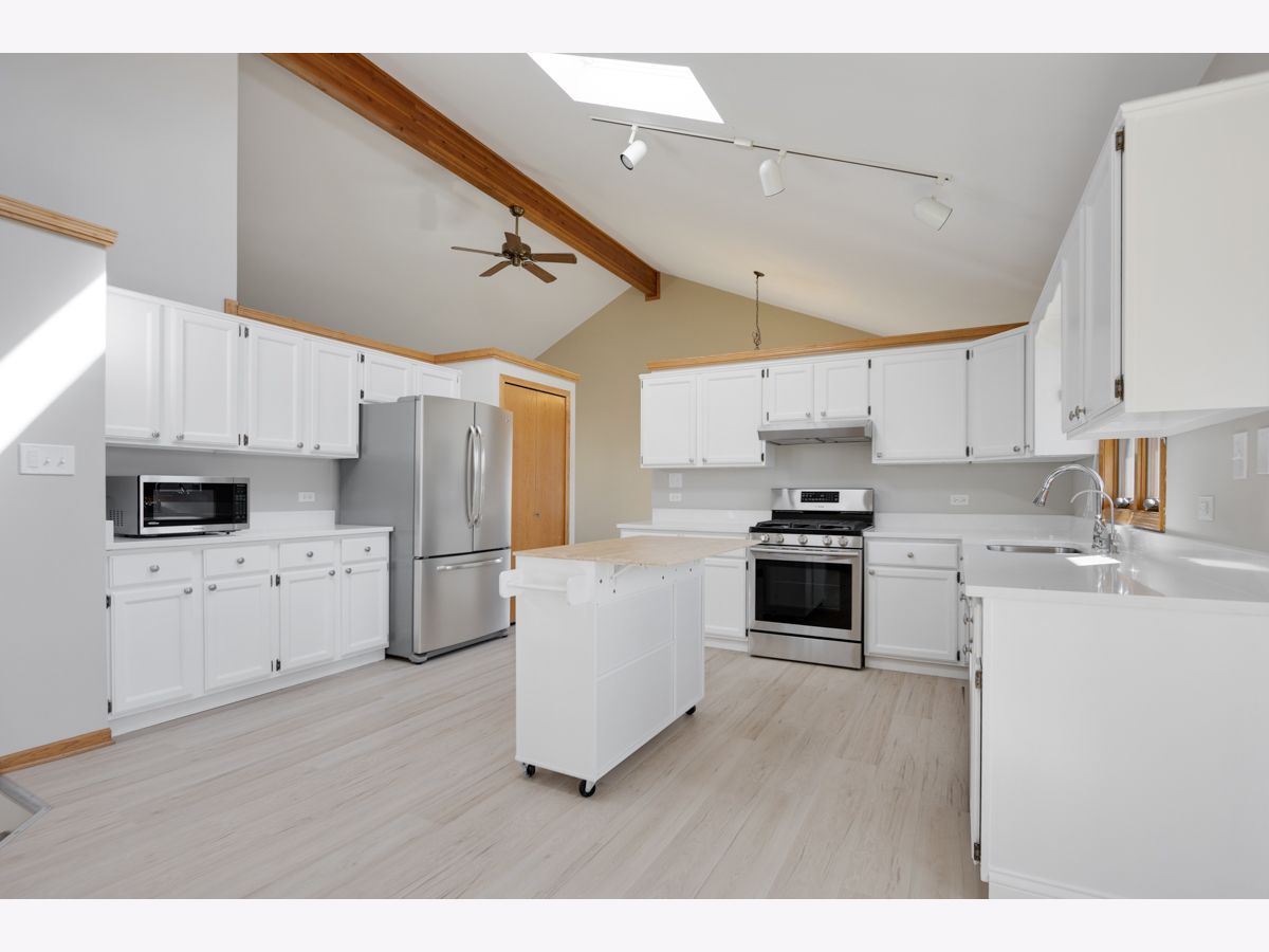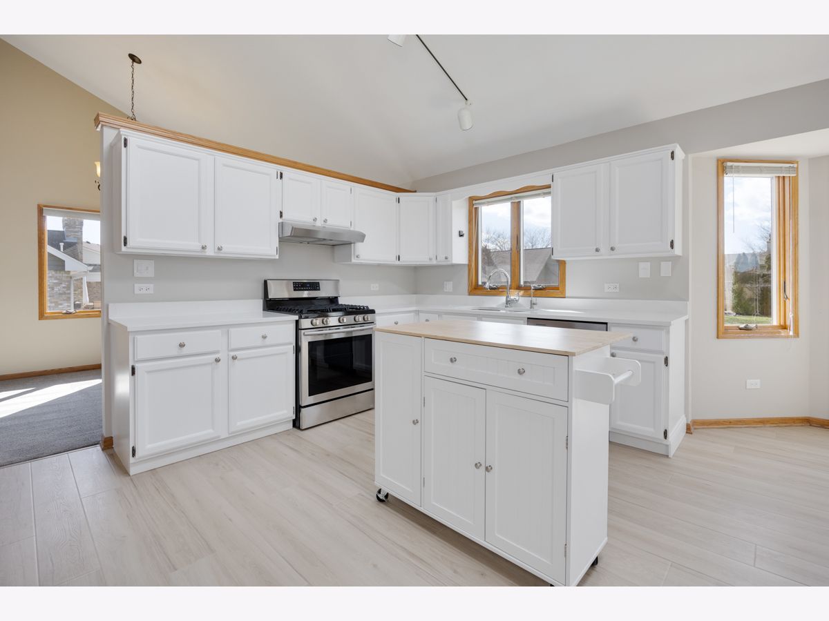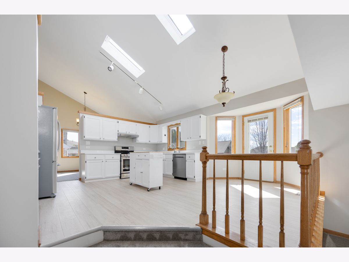 Excellent 4 bedroom, 2.5 bath single family home in Heritage Knolls! Features include formal living room with (5) panel bay window and elevated ceiling! Huge kitchen with beamed cathedral ceiling, stainless steel appliances, new quartz countertops (2026), new LVP flooring (2026), mobile center island, white cabinets, pantry and dual skylights! Spacious family room with high quality carpet (2024) and brick fireplace with gas log system (2024)! Primary bedroom includes cathedral ceiling, palladium window, closet system and primary bath suite! (3) Additional upper level bedrooms and full upper level hallway bath! Main level powder room! Formal dining room! Main level laundry room with new LVP flooring (2026) and service door! Full basement with elevated ceiling! Great usable yard with patio! Attached 2.5 car garage with new garage door opener (2025) and EV charging unit (2025)! Other recent improvements include: New siding and fascia (2024), carpet (2024), multiple painted rooms (2026), new kitchen sink (2026), garbage disposal (2025), blacktop (2024) and exterior fenced storage area (2025)! Anderson windows (except family room). School district 157C & Lincoln-Way East High School!