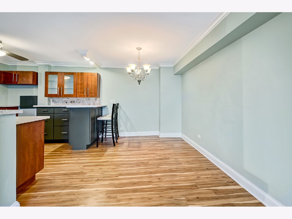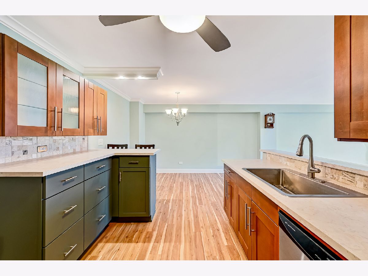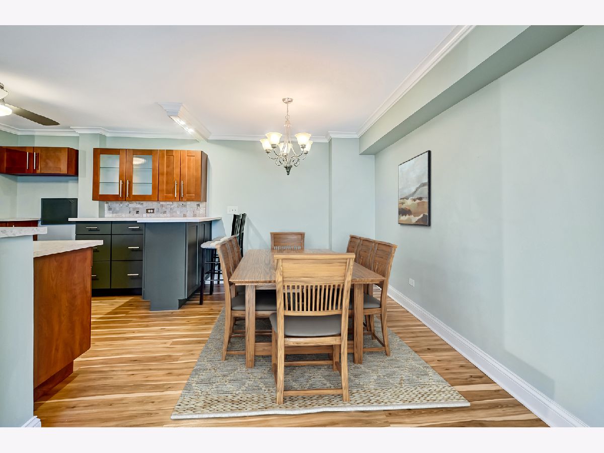 Beautifully updated and move-in-ready 2 bedroom, 2 bathroom condo in the desirable Yorktown Green Condominiums! This well maintained 3rd-floor unit features a modern, open kitchen with two-tone custom cabinetry, newer countertops, tiled backsplash, stainless steel appliances and excellent storage. The spacious living and dining area offers updated LVP flooring, neutral paint throughout, and large west-facing sliding doors that open to a private balcony with relaxing sunset views. Both bedrooms are generously sized with plenty of closet space. The primary bedroom includes a walk-in-closet and an updated (2025) private bathroom with new vanity and toilet. Fresh paint throughout, new trim and crown molding makes this unit truly turnkey! HOA includes water, garbage, heat and cooking gas, outside maintenance and pool access. Garage rental available. Prime Lombard location close to Yorktown, shopping, dining and expressways. Come see it today.