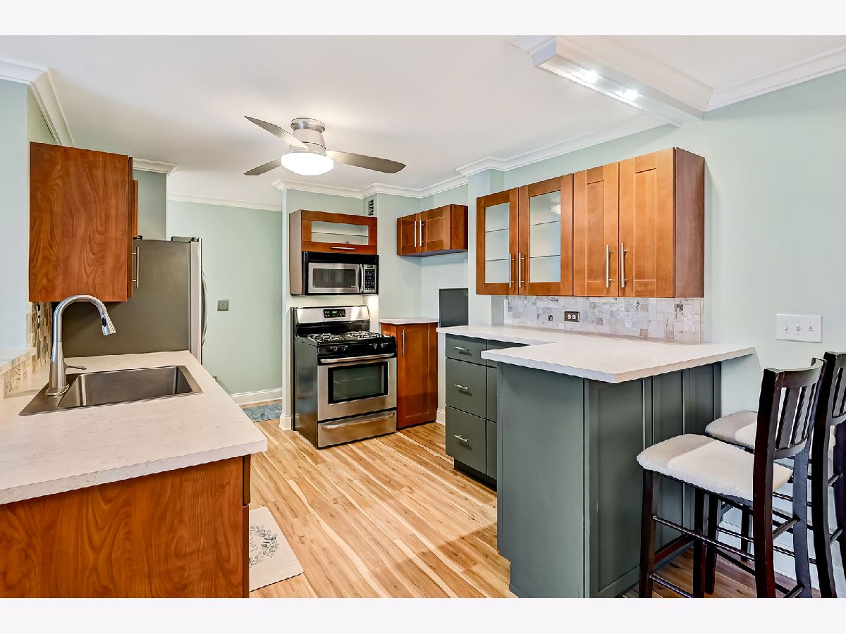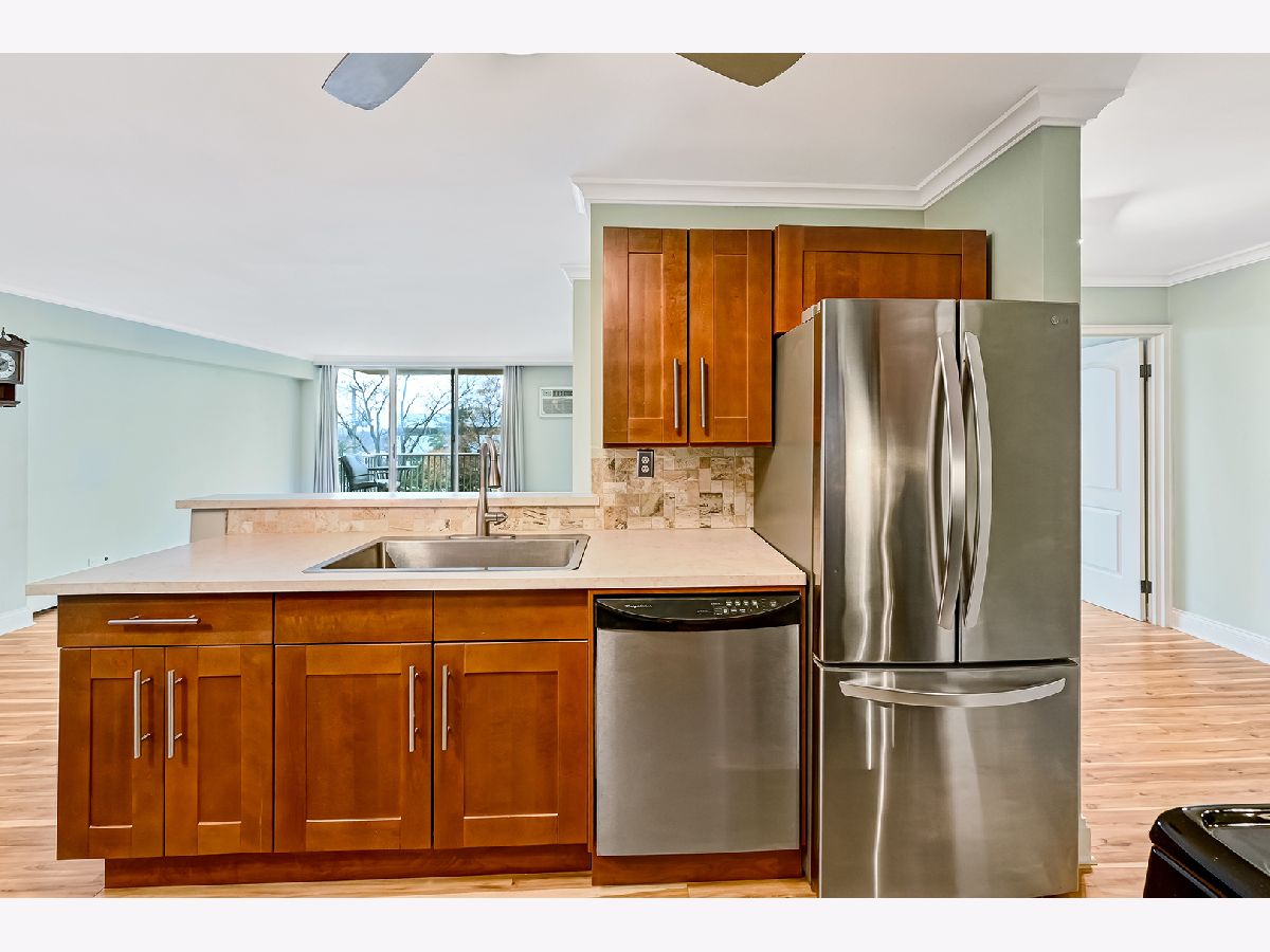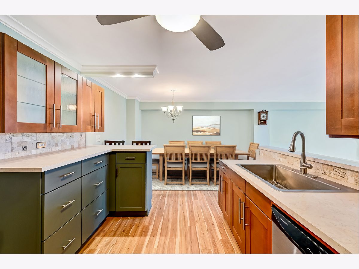 Beautifully updated and move-in-ready 2 bedroom, 2 bathroom condo in the desirable Yorktown Green Condominiums! This well maintained 3rd-floor unit features a modern, open kitchen with two-tone custom cabinetry, newer countertops, tiled backsplash, stainless steel appliances and excellent storage. The spacious living and dining area offers updated LVP flooring, neutral paint throughout, and large west-facing sliding doors that open to a private balcony with relaxing sunset views. Both bedrooms are generously sized with plenty of closet space. The primary bedroom includes a walk-in-closet and an updated (2025) private bathroom with new vanity and toilet. Fresh paint throughout, new trim and crown molding makes this unit truly turnkey! HOA includes water, garbage, heat and cooking gas, outside maintenance and pool access. Garage rental available. Prime Lombard location close to Yorktown, shopping, dining and expressways. Come see it today.