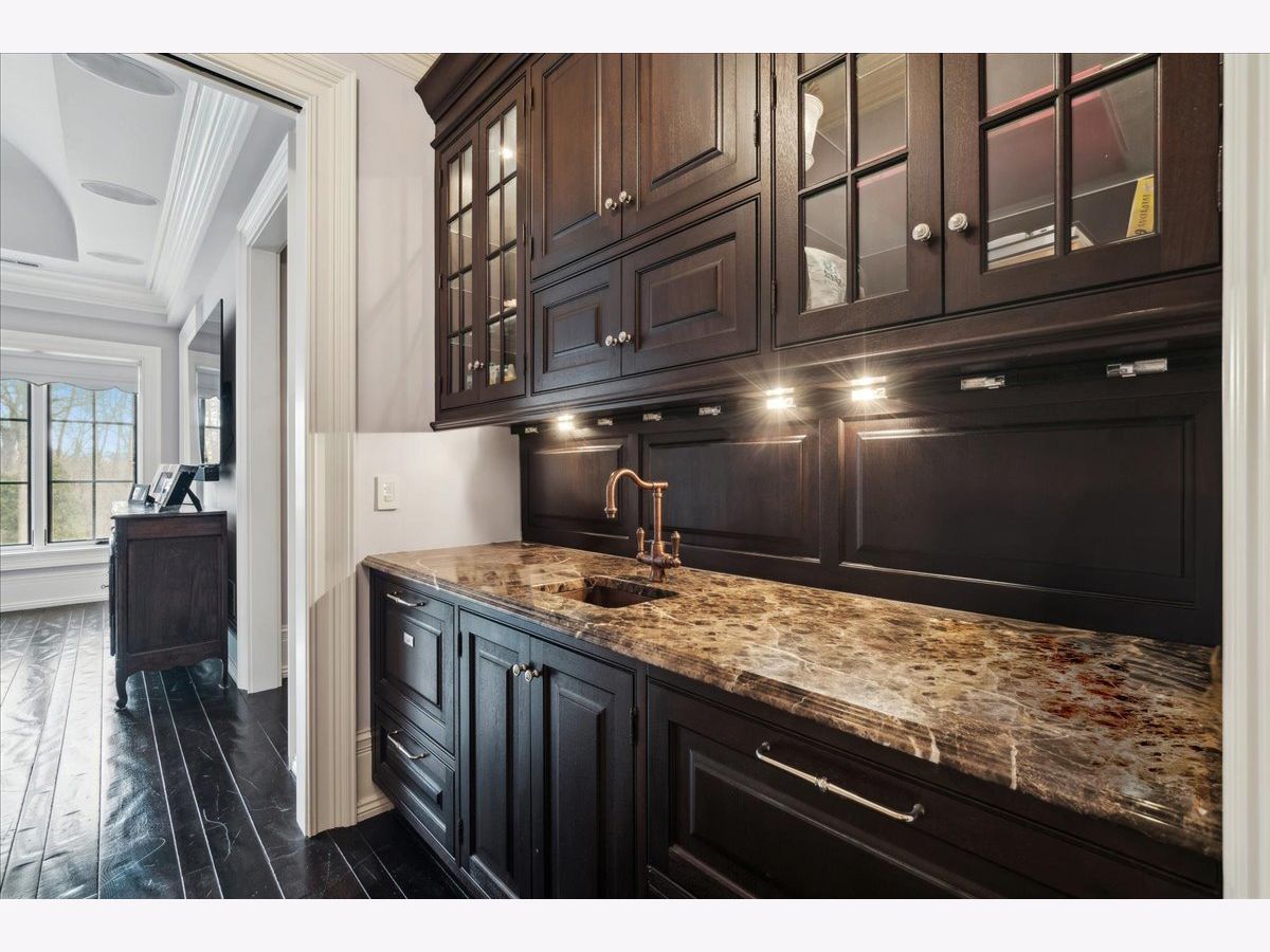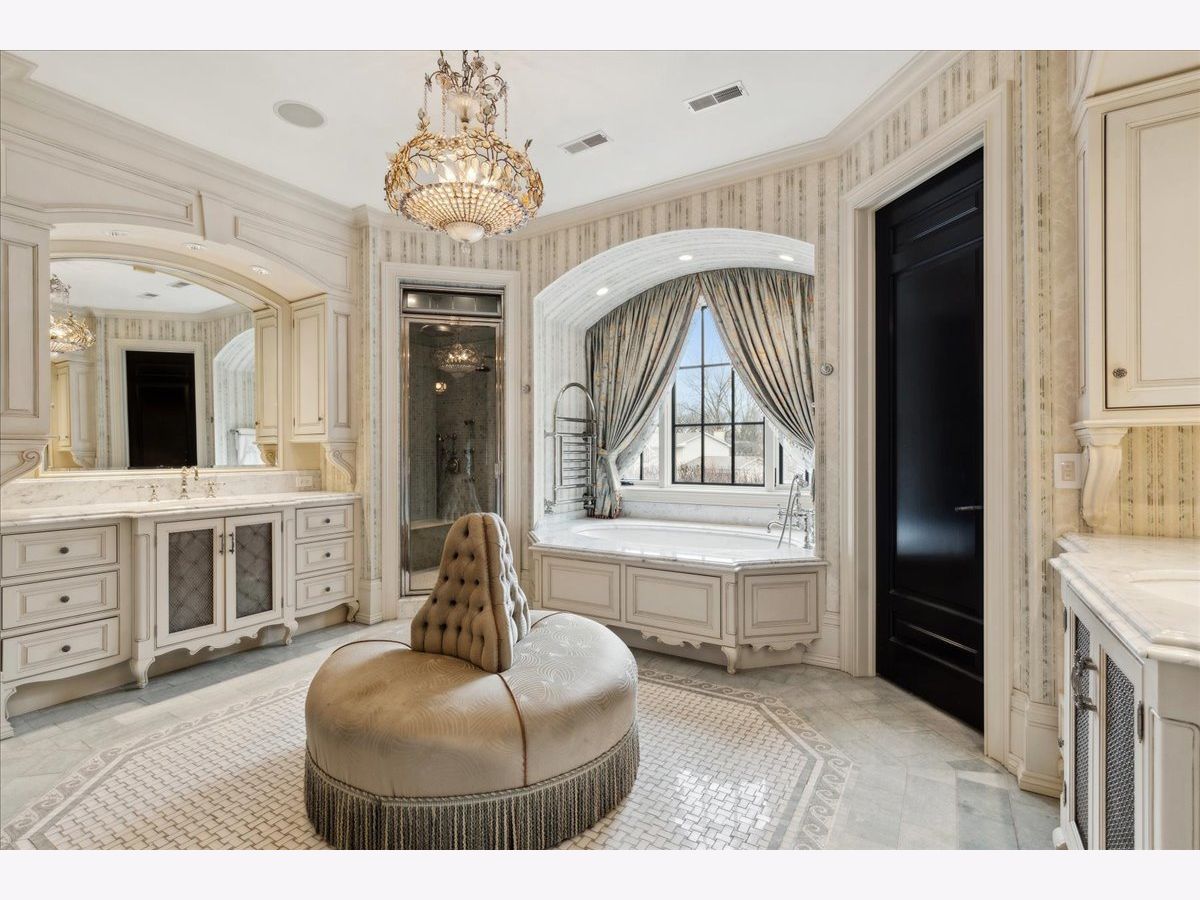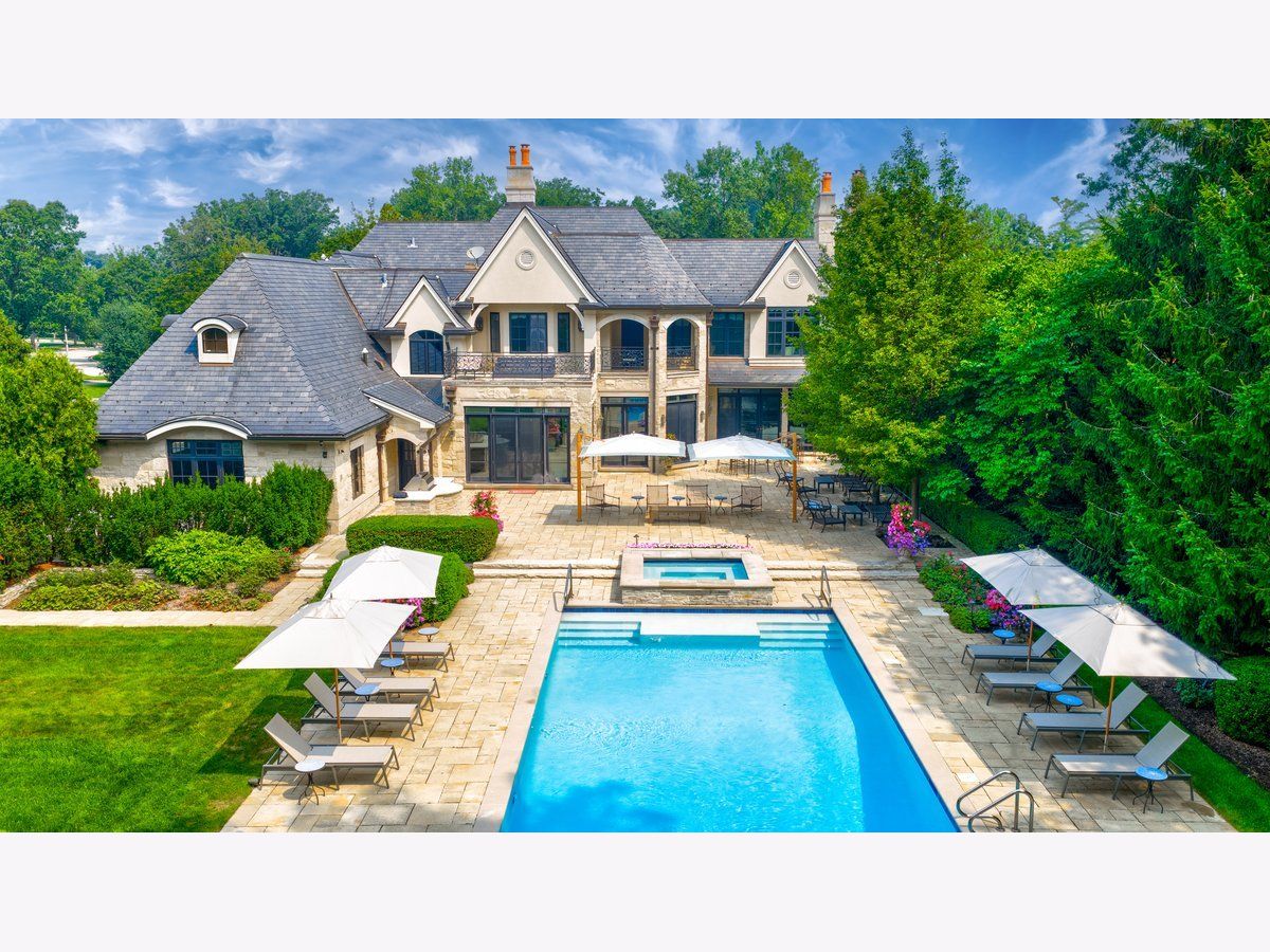 Elegant and sophisticated custom built 6 bedroom, 7 full and 4 half bath home located on 1 acre that is reminiscent of a luxury hotel complete with patio, pool and spa. This limestone clad home boasts unsurpassed quality construction and is accompanied with high-end interior designer appointed finishes throughout. Some of the home's highlights include: hand scraped, hand beveled hardwood floors, extensive millwork, custom built-ins, elevator, professional grade appliances, regulation size indoor basketball court, Turkish spa, outdoor pool and spa with water features and upgraded extensive security system. First level features a gracious foyer with double height ceiling and a bridal staircase. Expansive formal dining room that is the ideal entertaining space for large gatherings. Sun-filled private living room, which can be used as a sound-proof music room, looks unto front manicured lawn. Wood-paneled office with built-ins, marble carved fireplace and coffered ceiling. A large family room with coffered ceiling, marble surround fireplace and two sets of French doors that open to spacious limestone rear patio, pool and outdoor kitchen. Family room leads directly to a gourmet kitchen featuring custom bespoke buttercream cabinetry, marble counters and backsplash, two nickel sinks, professional stainless-steel appliances featuring commercial Wolf range with double ovens, as well as two separate Wolf wall ovens, two Wolf warming drawers, two Sub-Zero refrigerator/freezers plus an additional integrated Sub-Zero refrigeration system and two Miele dishwashers. A large island with nickel farmhouse sink, walnut countertop, storage and ample seating. Butler's pantry with Sub-Zero wine refrigerator and walk-in pantry with custom built-ins completes the kitchen. A separate large octagonal-shaped eat-in area that seats over 20 people and overlooks the magnificent grounds, leads to both the patio and a sunroom with French door access to pool and yard. Mudroom with built-in lockers, cabinetry, wash area and 1/2 bath is located off two 5-door heated garages with 1 car lift that allows for 6 cars. Second level features a luxurious primary suite with coved ceilings, a separate sitting room and a morning bar. Custom designed dressing room that mimics a high-end boutique with built-in bespoke cabinetry with glass panel fronts, island dresser and shoe closet. Additional walk-in closet with custom wood built-ins. Stunning luxurious bath featuring ming green and white marble mosaic heated floor, 2 custom wood vanities with Calacatta marble countertops, large shower with steam, rain showerhead and wall sprays, soaking tub with marble decking, vanity area and commode closet with bidet. 4 additional generous-sized bedrooms all with their own en-suite baths and custom walk-in closets. A large private covered flagstone balcony, accessed from hallway near primary bedroom, overlooks yard, patio and pool. Second floor laundry room with 2 sets of washer/dryers, luggage storage room and huge bonus room that makes a great kids' office, hang-out space or homework room, completes the second level. Fabulous lower level complete with radiant heated flooring, large recreation room with 136" HD Projection TV, full-sized custom wet bar, card/cigar room with smoke eater, temperature-controlled wine cellar, exercise room, golf room with simulator and guest bedroom with en-suite bath. Turkish spa with mud walls, massage room, dressing area with built-in lockers and steam room with dual shower. One floor below is a full-sized basketball court/sport court, batting cage, 1/2 bath and lounge area for sports viewing. The ideal outdoor PRIVATE entertaining space features a large fenced yard, extensive limestone patio, in-ground pool and spa with water features plus a kitchen with built-in Viking grill and 2 refrigerators. A rare opportunity to own this unparalleled luxury home.