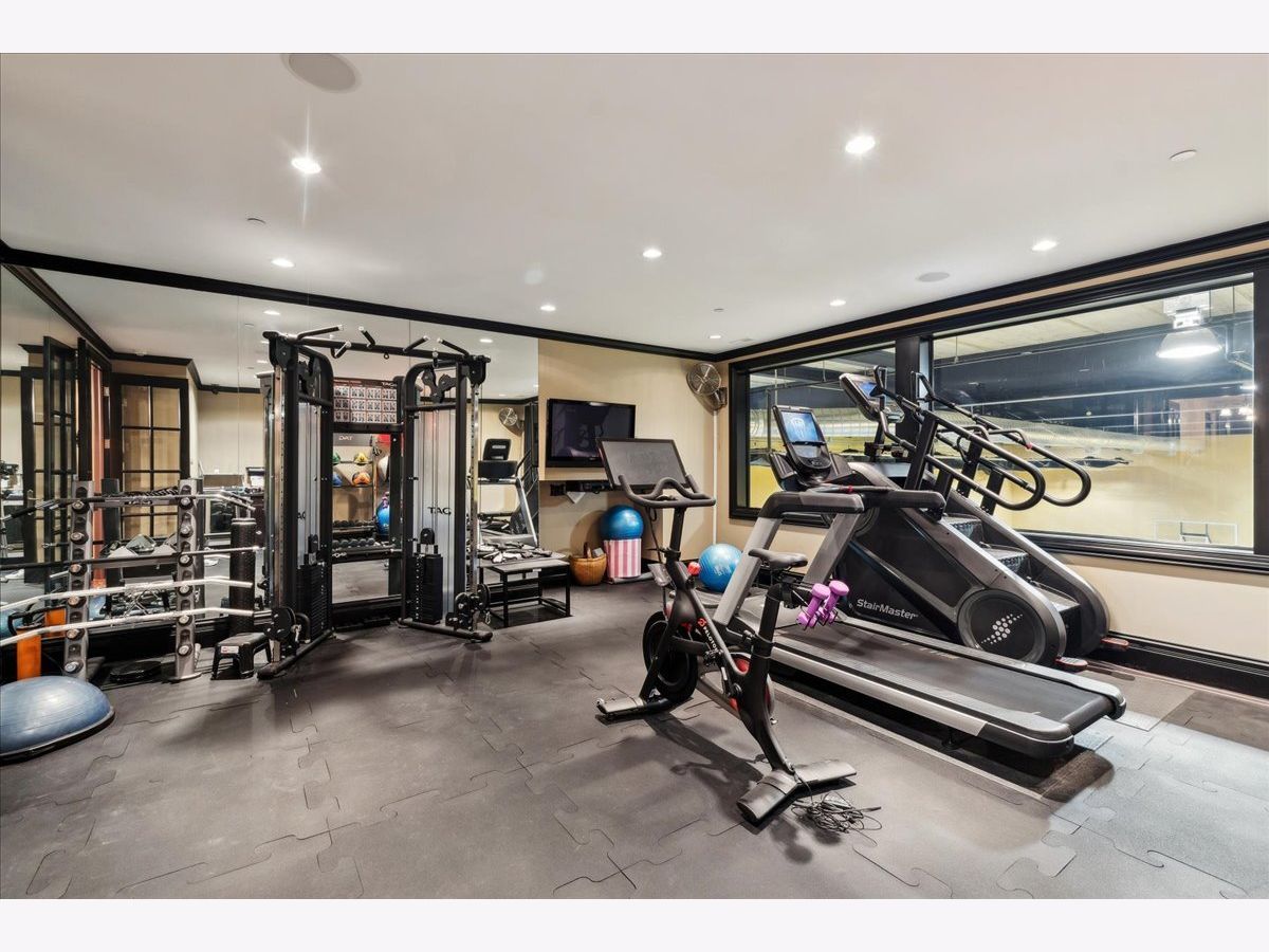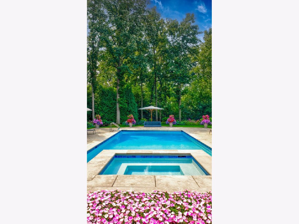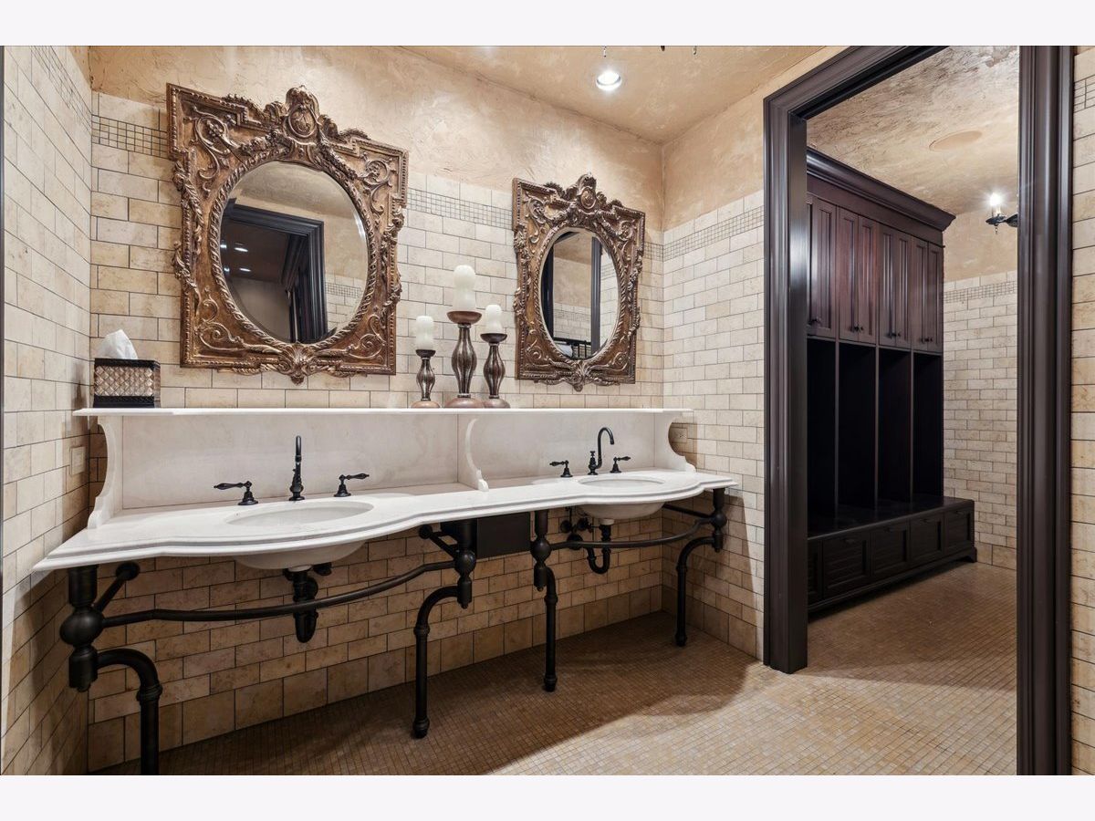 Elegant and sophisticated custom built 6 bedroom, 7 full and 4 half bath home located on 1 acre that is reminiscent of a luxury hotel complete with patio, pool and spa. This limestone clad home boasts unsurpassed quality construction and is accompanied with high-end interior designer appointed finishes throughout. Some of the home's highlights include: hand scraped, hand beveled hardwood floors, extensive millwork, custom built-ins, elevator, professional grade appliances, regulation size indoor basketball court, Turkish spa, outdoor pool and spa with water features and upgraded extensive security system. First level features a gracious foyer with double height ceiling and a bridal staircase. Expansive formal dining room that is the ideal entertaining space for large gatherings. Sun-filled private living room, which can be used as a sound-proof music room, looks unto front manicured lawn. Wood-paneled office with built-ins, marble carved fireplace and coffered ceiling. A large family room with coffered ceiling, marble surround fireplace and two sets of French doors that open to spacious limestone rear patio, pool and outdoor kitchen. Family room leads directly to a gourmet kitchen featuring custom bespoke buttercream cabinetry, marble counters and backsplash, two nickel sinks, professional stainless-steel appliances featuring commercial Wolf range with double ovens, as well as two separate Wolf wall ovens, two Wolf warming drawers, two Sub-Zero refrigerator/freezers plus an additional integrated Sub-Zero refrigeration system and two Miele dishwashers. A large island with nickel farmhouse sink, walnut countertop, storage and ample seating. Butler's pantry with Sub-Zero wine refrigerator and walk-in pantry with custom built-ins completes the kitchen. A separate large octagonal-shaped eat-in area that seats over 20 people and overlooks the magnificent grounds, leads to both the patio and a sunroom with French door access to pool and yard. Mudroom with built-in lockers, cabinetry, wash area and 1/2 bath is located off two 5-door heated garages with 1 car lift that allows for 6 cars. Second level features a luxurious primary suite with coved ceilings, a separate sitting room and a morning bar. Custom designed dressing room that mimics a high-end boutique with built-in bespoke cabinetry with glass panel fronts, island dresser and shoe closet. Additional walk-in closet with custom wood built-ins. Stunning luxurious bath featuring ming green and white marble mosaic heated floor, 2 custom wood vanities with Calacatta marble countertops, large shower with steam, rain showerhead and wall sprays, soaking tub with marble decking, vanity area and commode closet with bidet. 4 additional generous-sized bedrooms all with their own en-suite baths and custom walk-in closets. A large private covered flagstone balcony, accessed from hallway near primary bedroom, overlooks yard, patio and pool. Second floor laundry room with 2 sets of washer/dryers, luggage storage room and huge bonus room that makes a great kids' office, hang-out space or homework room, completes the second level. Fabulous lower level complete with radiant heated flooring, large recreation room with 136" HD Projection TV, full-sized custom wet bar, card/cigar room with smoke eater, temperature-controlled wine cellar, exercise room, golf room with simulator and guest bedroom with en-suite bath. Turkish spa with mud walls, massage room, dressing area with built-in lockers and steam room with dual shower. One floor below is a full-sized basketball court/sport court, batting cage, 1/2 bath and lounge area for sports viewing. The ideal outdoor PRIVATE entertaining space features a large fenced yard, extensive limestone patio, in-ground pool and spa with water features plus a kitchen with built-in Viking grill and 2 refrigerators. A rare opportunity to own this unparalleled luxury home.