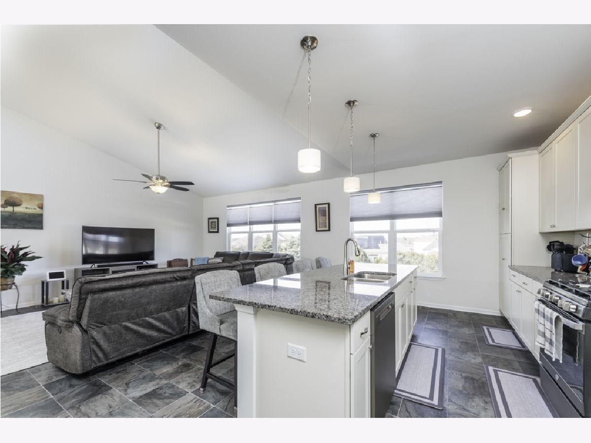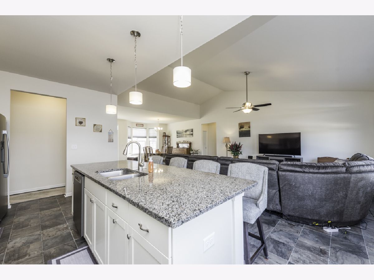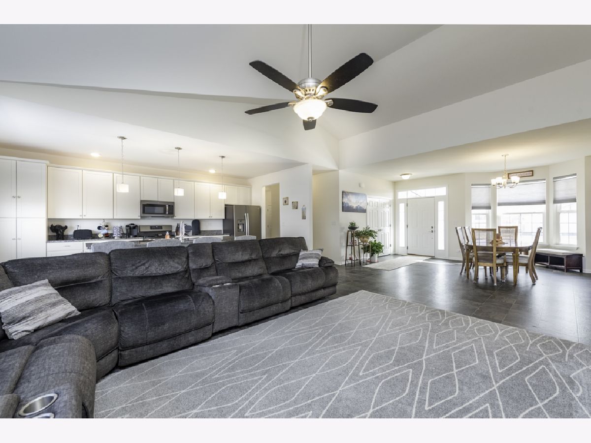 Welcome to Liberty Trails! This stunning 2022-built Palmer Model by Gerstad offers the perfect blend of modern design, thoughtful upgrades, and move-in-ready convenience. This ranch-style home with walk-out basement features 3 bedrooms, 2.5 baths, and 2,107 square feet of beautifully designed open-concept living space. The expansive kitchen is the heart of the home, showcasing stainless steel appliances, granite countertops, cream shaker-style cabinetry, luxury vinyl tile flooring with a slate look, a massive island with stylish pendant lighting, and newer custom window treatments throughout - all included! The open floor plan flows seamlessly into the living area, foyer, and down the hall with consistent slate tile flooring for a clean, cohesive look. The spacious primary suite offers a relaxing retreat with a soaker tub, separate shower, dual vanities, and generous space. Bedrooms 2 and 3 are both nicely sized, with Bedroom 3 featuring a walk-in closet. The second full bath is oversized and thoughtfully designed. Convenient main-floor laundry includes washer, dryer (with approximately 10 months remaining on warranty for dryer), and cabinet with utility sink. The full walk-out basement is partially finished with carpet and insulation already in place, additional electrical outlets installed, sliding doors to the patio, and plumbing stubbed for a future 4th bathroom - ready for your finishing touches. The sellers have invested significantly in upgrades, including: * Upgraded furnace (replaced original builder grade furnace) * New water softener * New security screen door * New ceiling fans in all bedrooms and living room * Built-in irrigation system (installed 2025) * $4,000 in professional landscaping * $4,000 invested in three new trees * Gas line for outdoor grill The 2.5-car attached garage includes an extra refrigerator and offers great storage space. Backyard is partially fenced and ideal for entertaining or relaxing. This home truly shows pride of ownership and feels better than new - without the wait to build. Don't wait! Come see today!