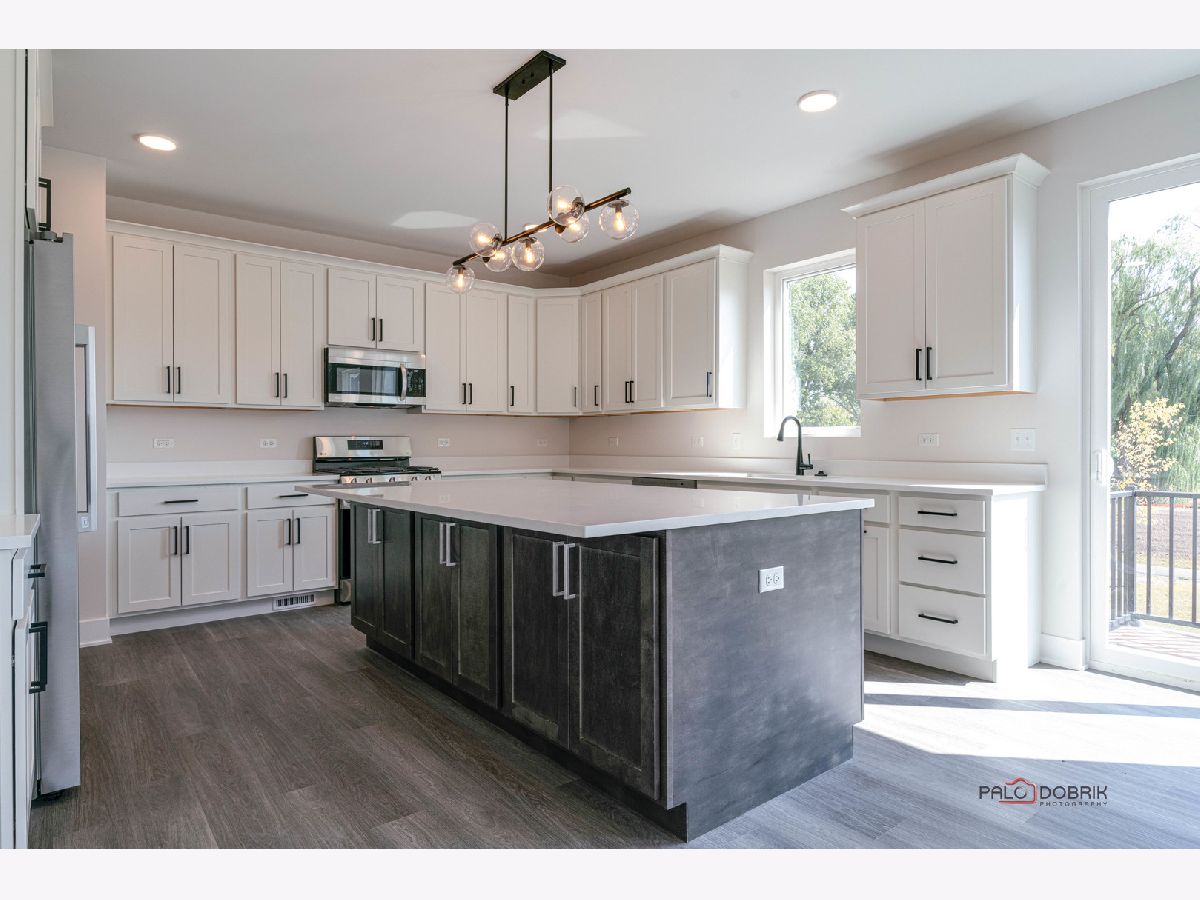 **MODEL HOME OPEN HOURS 10AM-4PM THURSDAY-MONDAY** Starting at $764,900 - NEW CONSTRUCTION, Two-Story Evergreen home (Lot 8) on site map! Fidelity Wes newest community Casa Bella of Kildeer offering 4 ranch & 2 story models. Discover the Evergreen Model, a stunning 2-story home with 4 spacious bedrooms, 2.1 baths, this home is scheduled for completion in late summer 2025. The subdivision features walking paths, water views, and open preserves, perfect for nature enthusiasts. Upon entry, the foyer with engineered hardwood flooring throughout brings you into the home, with a study/office room to the right. The spacious kitchen boasts an LG appliance package, quartz countertops, engineered hardwood flooring, and an island overlooking the family room, seamlessly connecting to the dining area with exterior access. The main level is completed by a powder room and closet space. On the second level, the primary suite features a huge walk-in closet with access to the generally sized laundry room, a double vanity, shower, tub, and water closet. Three roomy bedrooms, a hall bath, additional closet space, and a laundry room complete the second level. The home includes an unfinished basement offering a walk-out option. This home is also close to shopping, dining, and entertainment options, making it an ideal location for modern living.
