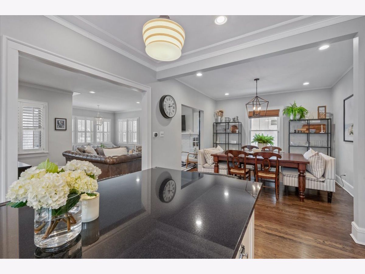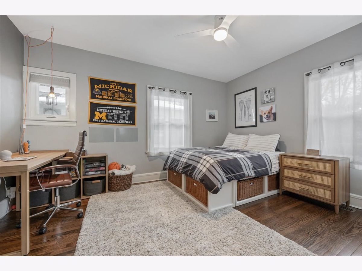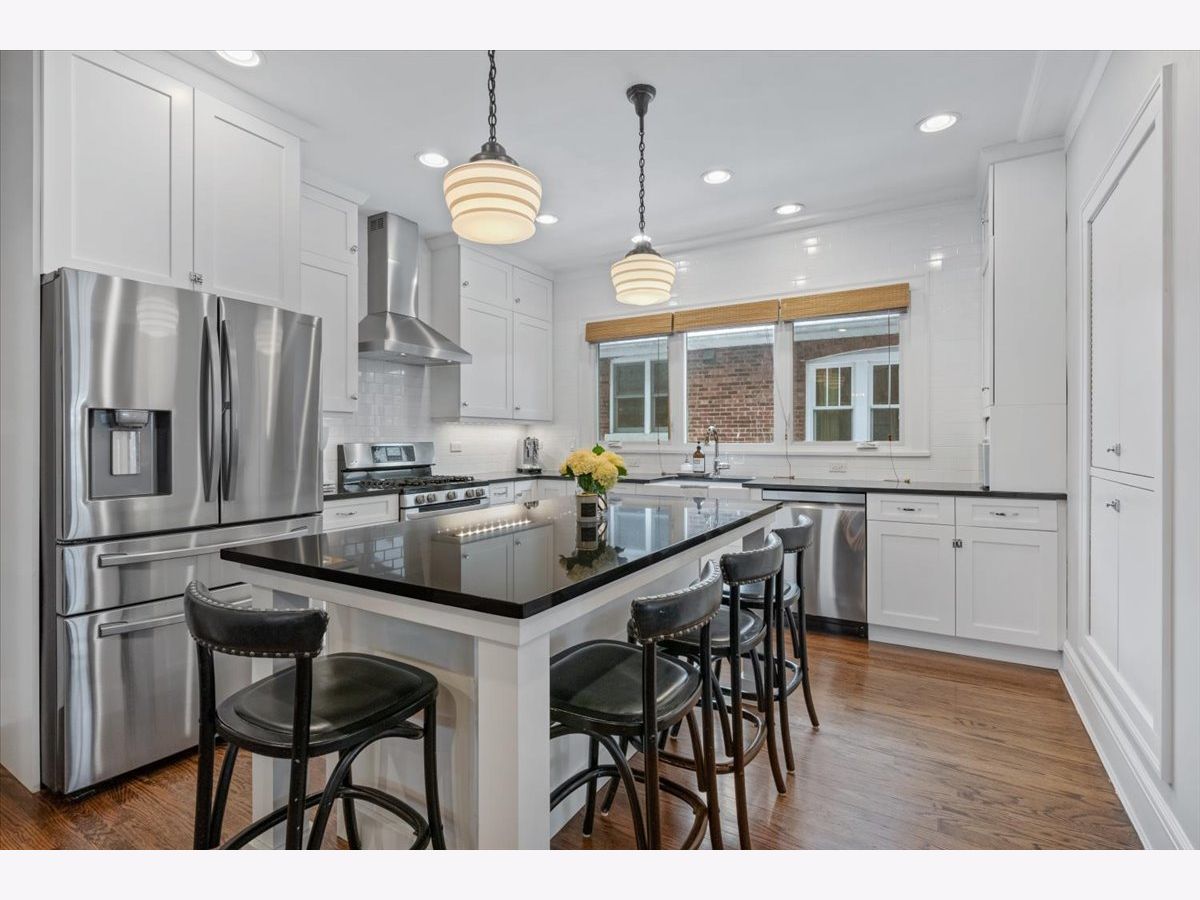 This fully updated, spacious brick bungalow is nestled in a prime Evanston location, just a few blocks from Canal Shores Golf Course, parks, the Noyes Street shopping district, the CTA Purple Line, Metra, and Northwestern University. As you enter, a large foyer welcomes you, opening into the expansive living room and sunroom, both bathed in natural sunlight and featuring a charming fireplace. These front-facing rooms offer plenty of windows, creating a bright and inviting atmosphere. The modern eat-in kitchen boasts white cabinetry, sleek black granite countertops, newer stainless-steel appliances, and a sizable island with seating for four. It seamlessly flows into the dining room, making it ideal for entertaining. If you're after a kitchen-family room layout, you can easily repurpose the current dining area into a cozy family room while keeping your dining space in the front sunroom. This main level also includes two spacious bedrooms with ample closet space, a beautifully updated full bath with a tub, shower, and double vanity, as well as a rear mudroom with plenty of storage. There's also a bonus room that adds even more storage options. The primary suite is a standout, featuring an office area just outside sliding opaque doors, a private balcony, a large walk-in closet, and a luxurious, updated en-suite bath with a walk-in shower, soaking tub, and double vanity. Make great use of the attic storage on this floor or expand further for more living space. The finished walk-out basement is a pleasant surprise, offering a family room, an office, a bedroom, a full bathroom, an exercise room, abundant storage, and a laundry area. Additional highlights include high ceilings, recessed lighting, stunning molding, and hardwood floors throughout. Outdoors, you'll enjoy a beautiful bluestone patio with an outdoor TV mounted on the garage wall, a lovely yard, and a welcoming front porch. The current owners have made numerous upgrades, including a second-floor addition, new windows, updated mechanicals, remodeled kitchen and bathrooms, improvements to the basement and more. With a flexible floor plan, abundant natural light, timeless details, and excellent outdoor living areas, this home offers comfort, character, and an unbeatable location-truly a gem where you'll love to live!