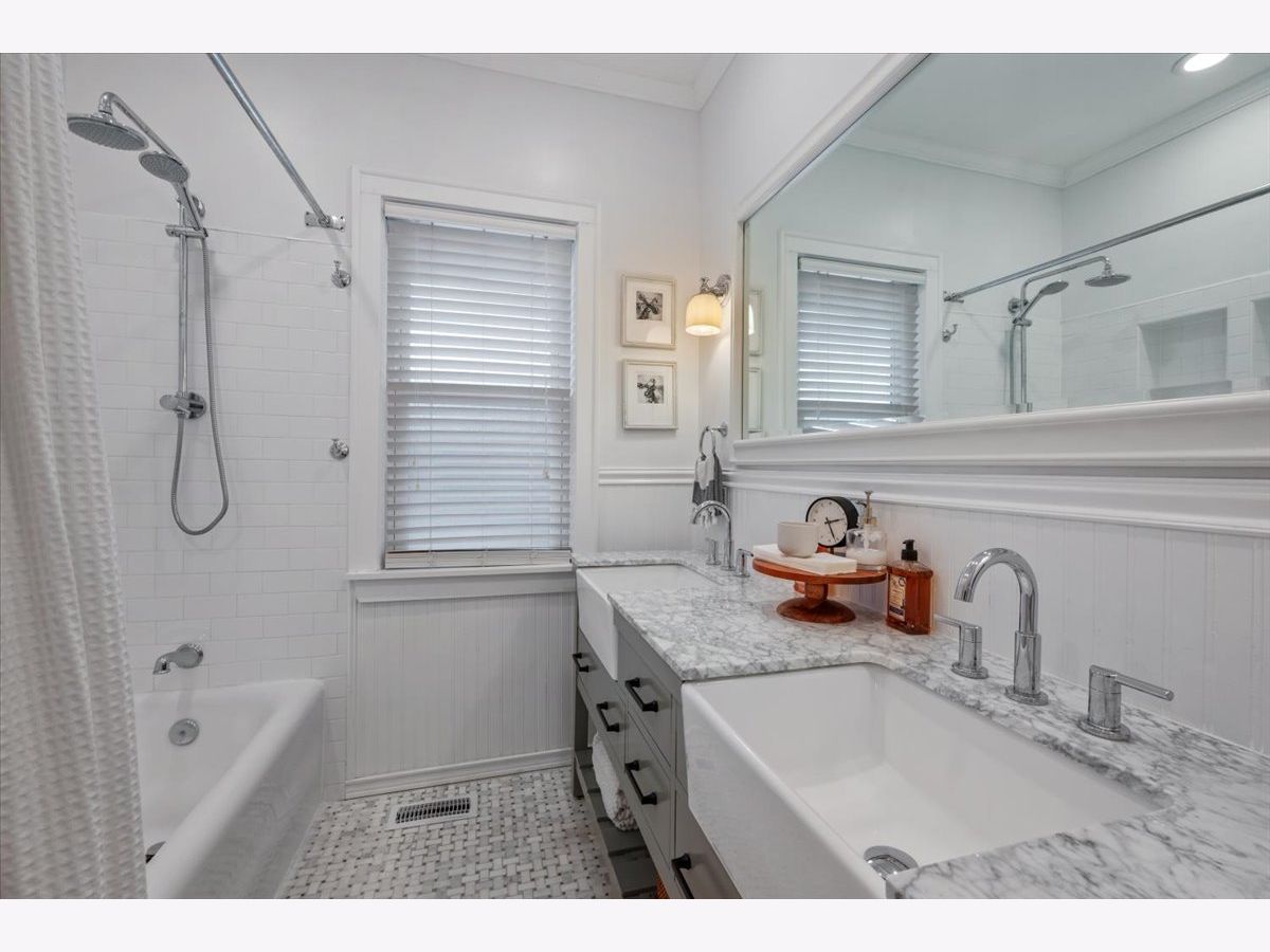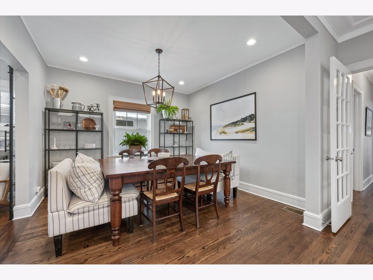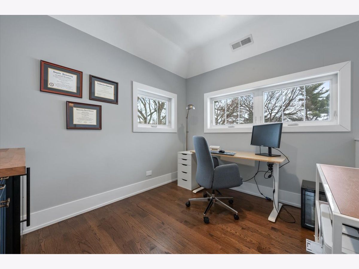 This fully updated, spacious brick bungalow is nestled in a prime Evanston location, just a few blocks from Canal Shores Golf Course, parks, the Noyes Street shopping district, the CTA Purple Line, Metra, and Northwestern University. As you enter, a large foyer welcomes you, opening into the expansive living room and sunroom, both bathed in natural sunlight and featuring a charming fireplace. These front-facing rooms offer plenty of windows, creating a bright and inviting atmosphere. The modern eat-in kitchen boasts white cabinetry, sleek black granite countertops, newer stainless-steel appliances, and a sizable island with seating for four. It seamlessly flows into the dining room, making it ideal for entertaining. If you're after a kitchen-family room layout, you can easily repurpose the current dining area into a cozy family room while keeping your dining space in the front sunroom. This main level also includes two spacious bedrooms with ample closet space, a beautifully updated full bath with a tub, shower, and double vanity, as well as a rear mudroom with plenty of storage. There's also a bonus room that adds even more storage options. The primary suite is a standout, featuring an office area just outside sliding opaque doors, a private balcony, a large walk-in closet, and a luxurious, updated en-suite bath with a walk-in shower, soaking tub, and double vanity. Make great use of the attic storage on this floor or expand further for more living space. The finished walk-out basement is a pleasant surprise, offering a family room, an office, a bedroom, a full bathroom, an exercise room, abundant storage, and a laundry area. Additional highlights include high ceilings, recessed lighting, stunning molding, and hardwood floors throughout. Outdoors, you'll enjoy a beautiful bluestone patio with an outdoor TV mounted on the garage wall, a lovely yard, and a welcoming front porch. The current owners have made numerous upgrades, including a second-floor addition, new windows, updated mechanicals, remodeled kitchen and bathrooms, improvements to the basement and more. With a flexible floor plan, abundant natural light, timeless details, and excellent outdoor living areas, this home offers comfort, character, and an unbeatable location-truly a gem where you'll love to live!