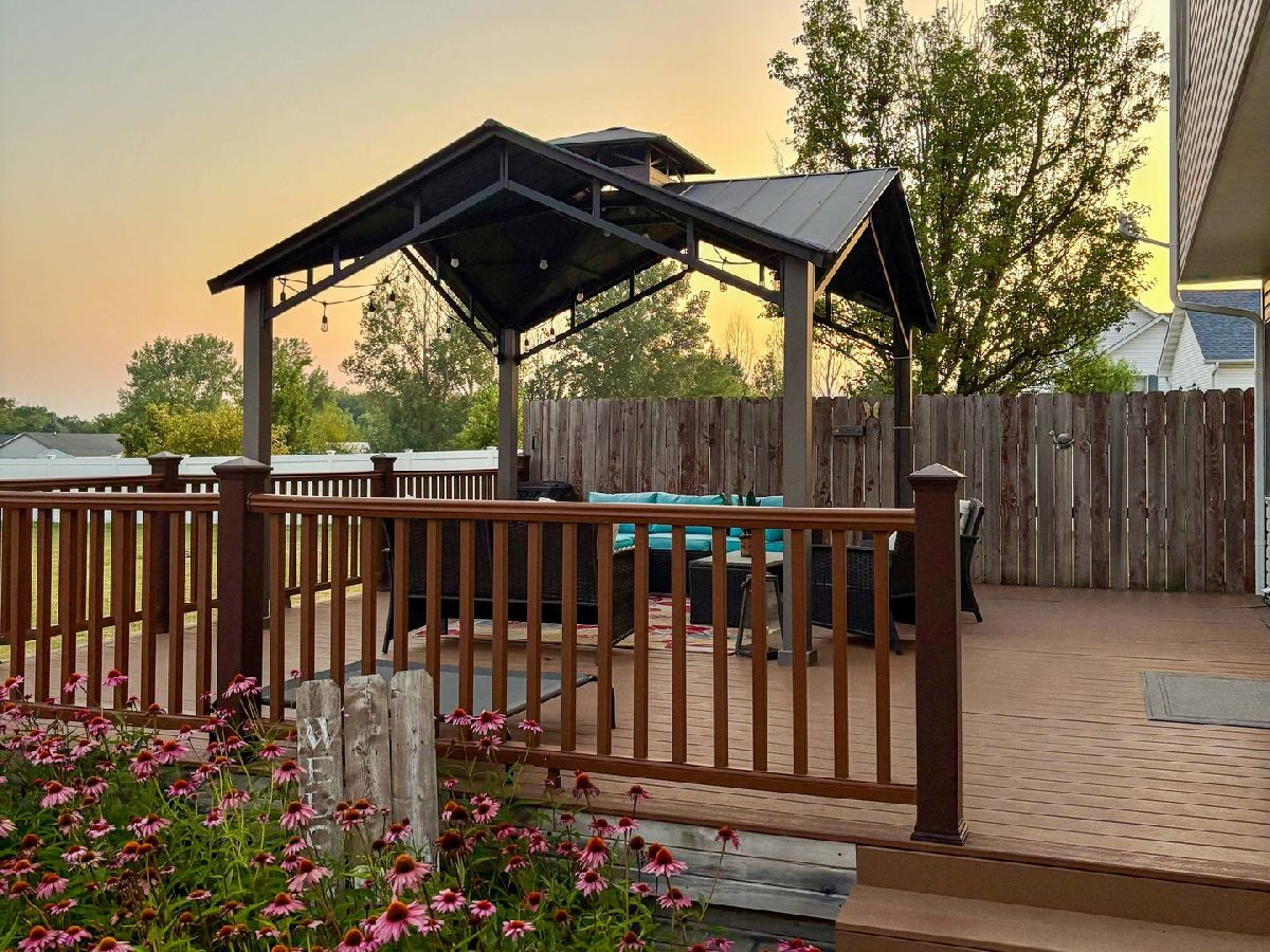 Welcome to 2216 N 2929th Rd, a beautifully maintained 4-bedroom, 2.5-bath home situated on a 0.91 acre lot with room to live, work, and entertain. This property offers the perfect blend of country living, modern features, and functional space, just minutes from town. The main level features a welcoming layout with a formal dining room, living room with built-ins, a cozy family room, and a well-appointed kitchen with granite countertops, newer appliances, and ample cabinetry. A convenient powder room completes the first floor, ideal for guests and everyday living. Upstairs, you'll find three spacious bedrooms, a full hallway bathroom, and a private primary suite featuring a walk-in closet and a full en-suite bath with double vanity, jetted tub, and separate shower. A versatile bonus room above the garage offers endless possibilities, think home office or playroom. The partially finished basement provides extra living or recreational space, perfect for a home gym, media room, or storage. Outside enjoy the expansive outdoor amenities, including a large backyard, composite deck, gazebo, back patio with fire pit, and a charming covered front porch. A long driveway, 2-car attached garage, and an additional detached garage in the backyard make this property ideal for car enthusiasts, hobbyists, or anyone needing extra storage or workshop space. If you're searching for a home with a yard, multiple garages, outdoor entertaining space, and room to grow, this property checks every box. Water Heater: 2020, Furnace and A/C: 2017, Well Pump: 2021. Also included is a hydrogen peroxide well water system and a water softener system! Schedule your private showing today and experience everything this exceptional home has to offer.