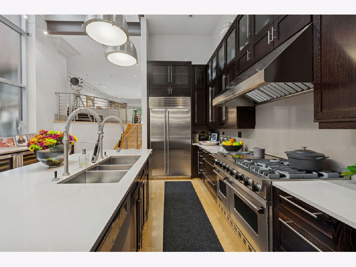 A truly extraordinary residence, seamlessly blending ultra-refined private living. Designed and built by the developer for personal use, the property is without equal-an architectural statement that redefines luxury urban living. A private entrance on Janssen Street leads to your personal three-stop elevator, opening into a dramatic 40-foot atrium lit by a 400 SF curtain wall of industrial glass and crowned with a 10'x10' glass skylight that floods the home with natural light. The residence features 14-foot ceilings, 18" crown molding accented with exposed structural steel components, custom lighting throughout, including designer fixtures by Darcy Bonner and Holly Hunt. The chef's kitchen is impeccably appointed with Sub-Zero refrigeration, a Viking range/oven, an additional Viking convection oven, (6) Viking wine coolers, and dual Bosch dishwashers. Highlights continue with three wood-burning fireplaces, maple hardwood floors, stainless steel railings, a full sprinkler system, and two sets of LG washers and dryers. Four bedrooms occupy upper floor with exquisite finishes and two bathrooms. The primary suite includes (4) additional skylights. A spacious, custom-designed private office occupies its own dedicated floor, offering the ultimate work-from-home sanctuary. Outdoor living is equally impressive, with approximately 1,300 square feet of outdoor space on four levels, showcasing breathtaking Chicago skyline views and a spectacular entertaining terrace that flows directly from the main living space. Supplemental amenities include garage parking for two cars and outside parking for three additional vehicles. More features include a heated driveway, tool room, abundant storage. Many of the building's mechanical elements were completely upgraded in 2025. The building is approximately 7,800 SF per construction documents. A rare opportunity to own an architectural masterpiece that combines luxury, and unmatched design in a phenomenal location. Owner is a licensed real estate broker.