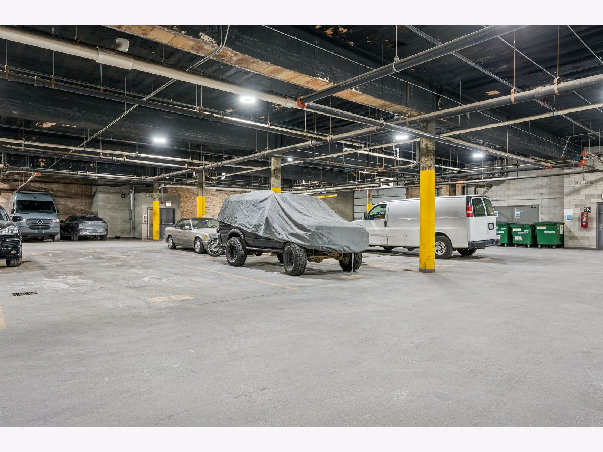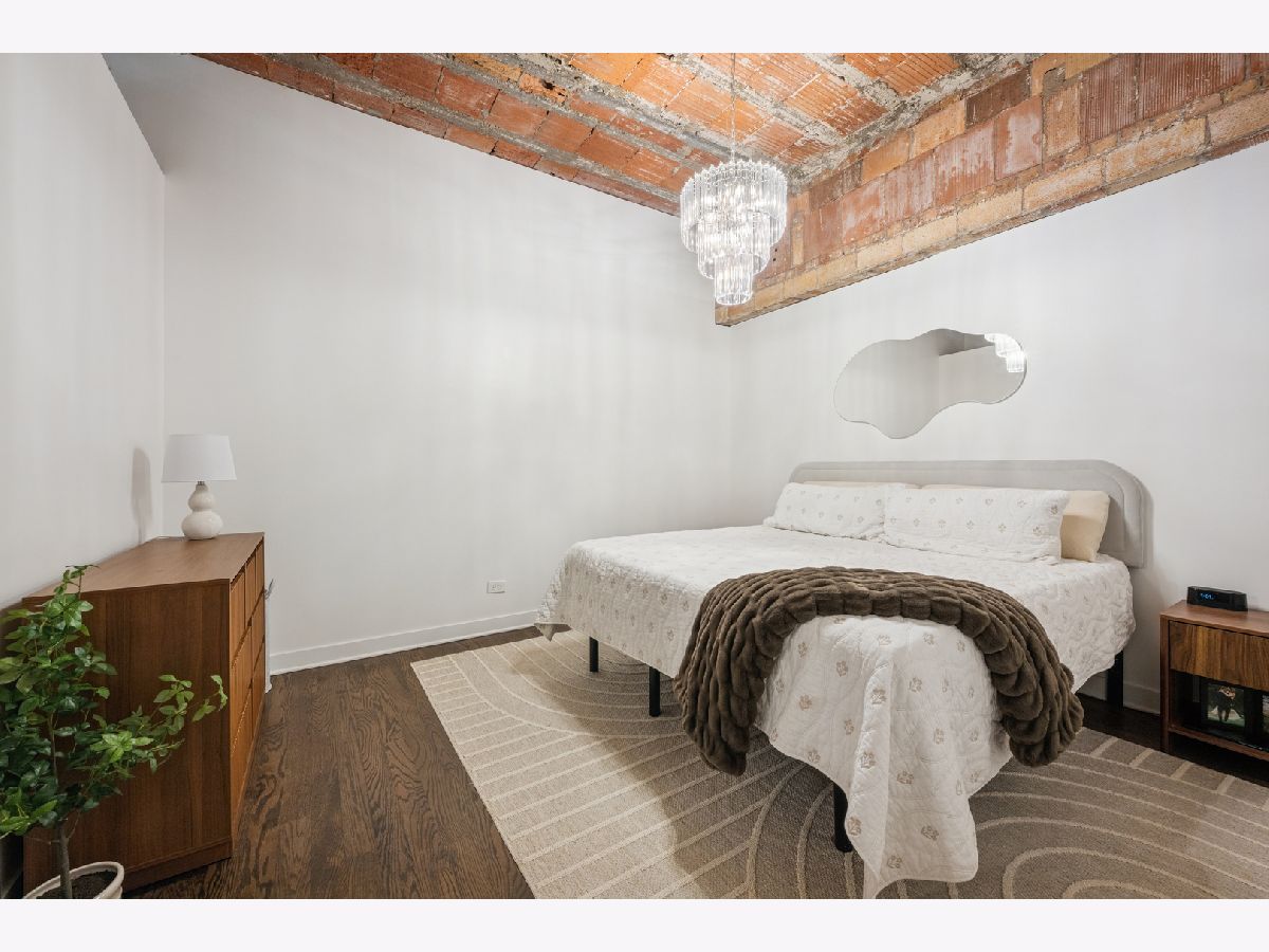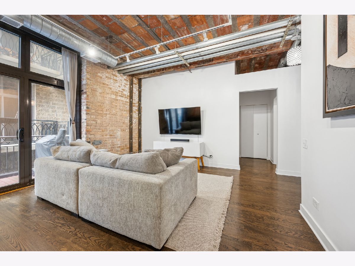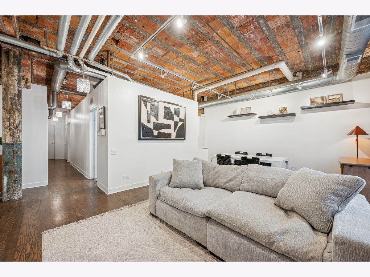 Beautifully updated West Loop loft in the iconic Daily News Building. This home features soaring exposed terra cotta ceilings, exposed brick, and mocha hardwood floors throughout. Stunning, renovated kitchen and baths with all newer appliances. Spacious bedrooms offer organized walk-in closets and en-suite baths off both bedrooms with dual vanities, PLUS a powder room off the living area! Additional features included a dedicated laundry room with full-size washer and dryer and hardwood floors throughout. Completely move-in ready. Unbeatable location near Fulton Market dining and shopping, Target - West Loop, Skinner Park, Madison Row, CTA, expressways, and easy access to the Loop and Metra. Close to highly rated Skinner Elementary School. Heated garage tandem parking included in the price.