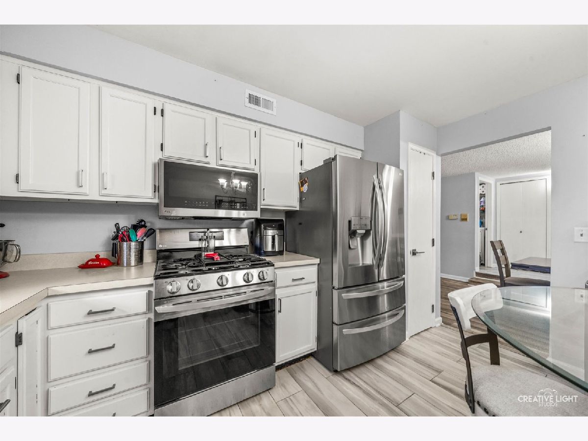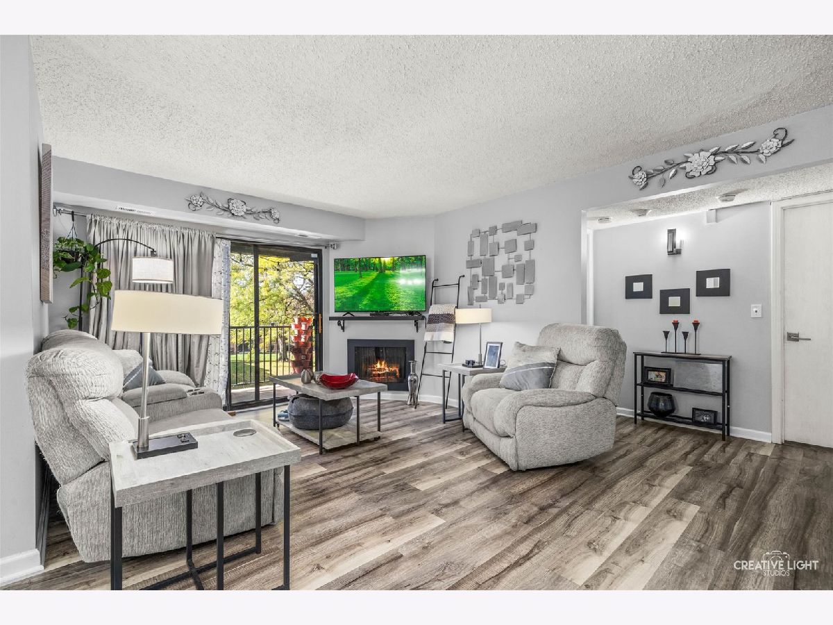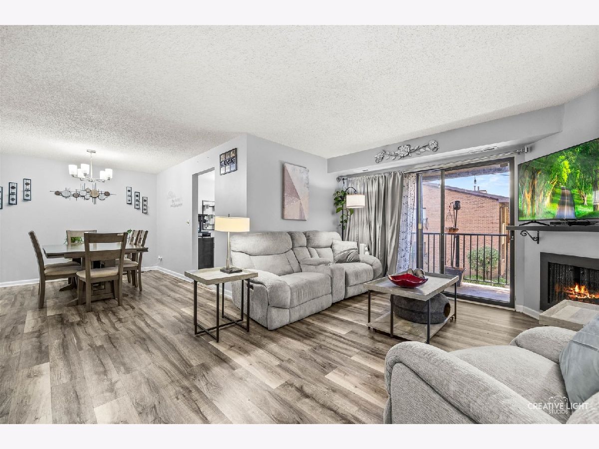 SELLER IS MOTIVATED! Enjoy top-floor living in this updated 2 bed, 2 bath corner condo with peaceful views of surrounding green space. The spacious living room with a gas fireplace flows into the dining area, creating a comfortable setting for everyday living or entertaining. The large eat-in kitchen, a rarity in a condo, features a pantry closet to keep everything organized and an LG stainless appliance suite installed in 2023. A brand new washer and dryer (2025) and new AC (2024) add modern convenience and efficiency. The primary suite includes a walk-in closet and a private bath. The second bedroom works well as a dedicated guest room or home office, and a second full bath completes the layout. Step outside to a private balcony, or take advantage of community amenities that include a pool and clubhouse. Piers II residents enjoy the use of their very own lighted dog walking/play area park complete with benches so you can relax while your four-legged friends roam. Private garage parking is just steps away. The location supports an easy daily rhythm. The ARC Athletic Recreation Center and Cypress Cove Family Aquatic Park are just down the street for fitness and fun. Commuting is straightforward with quick access to I-355 and I-55. Everyday errands are simple with nearby shopping and dining at the Promenade. Additionally, This home is served by highly rated District 68 and 99 schools. Move-in ready, comfortable, and thoughtfully updated for practical living. This home comes with a one year Achosa Home Warranty.