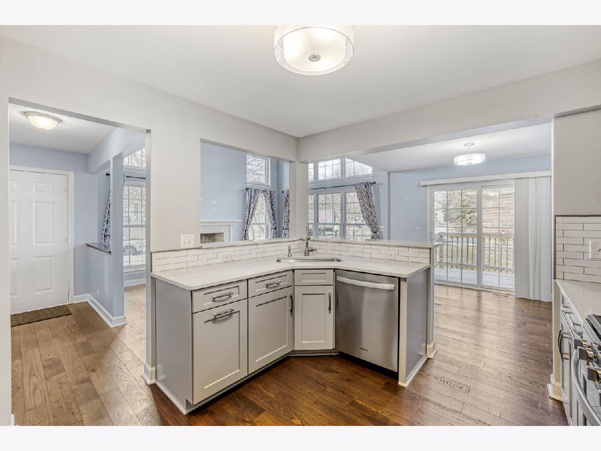 Welcome to this beautifully updated end-unit 2-bedroom, 3.1-bath townhome in the sought-after Links at Poplar Creek golf course community. This light-filled home features a dramatic two-story living room with a cozy fireplace and oversized windows that fill the space with an abundance of natural light. The fully renovated kitchen offers stainless steel appliances, quartz countertops, and modern finishes that make both everyday living and entertaining a pleasure. Upstairs, the spacious primary suite impresses with a tray ceiling, walk-in closet, and a beautifully updated en suite bath complete with double sinks and a walk-in shower. An additional generously sized bedroom and renovated full bath complete the second level. The fully finished basement expands your living space featuring a wet bar area and endless possibilities for a recreation room, home office, workout space or playroom plus yet another full bathroom for added convenience. Enjoy the wood deck overlooking beautifully landscaped grounds. Ideally located next to Poplar Creek Golf Course with convenient access to the aquatic center, shopping, dining, walking paths and major highways. Don't miss this exceptional home!