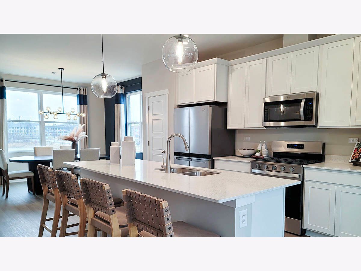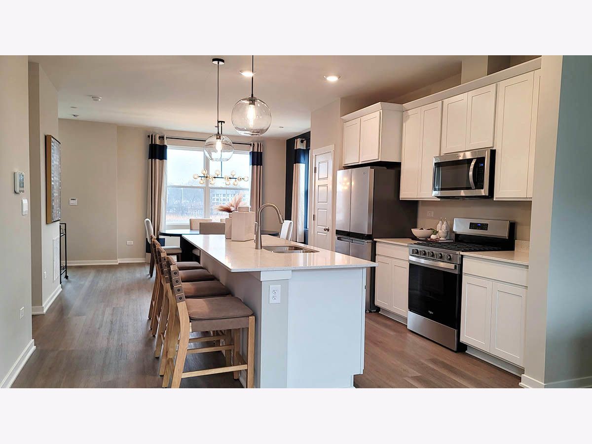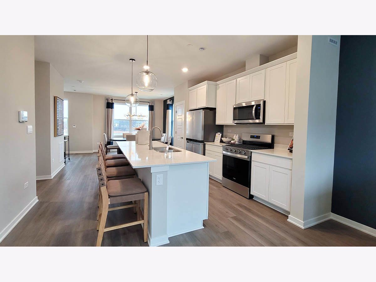 SELLING NOW!! NEW CONSTRUCTION NEW LAYOUT TOWNHOME: AUGUST MOVE IN! Find your way to 2225 Waters Edge Dr. Schaumburg, Illinois, our newest phase of brand-new construction with new modern style townhomes in our HIGHLY DESIRABLE NORTHGATE AT VERIDIAN community. This new construction townhome is ready for you to move in Summertime! Homesite includes a fully sodded yard with landscaping. This Grant style townhouse offers approx. 1838 square feet of living space with 3 bedrooms, 2.5 baths, and a finished flex room. The finished flex room is perfect for a home office, playroom, or 2nd family room. Walking up the stairs to the main level you will find this home's open concept living with 9-foot ceilings and luxury vinyl plank flooring throughout the entire main level! The expansive kitchen features a large island that is ideal for everyday living and overlooks both the front dining and back great room areas, making it the perfect space to entertain. Additionally, your kitchen includes Quartz countertops, 42" cabinetry with soft close doors and crown molding, stainless steel appliances and a pantry. Arriving at the top floor, you'll find the primary suite, secondary bedrooms with a full second bath, linen closet, and laundry room. The spacious primary bedroom suite includes a bright large walk-in closet with window and connecting en-suite bathroom, featuring a walk-in shower. This Chicago home includes our America's Smart Home Technology. Photos are of a similar home. Actual home built may vary.