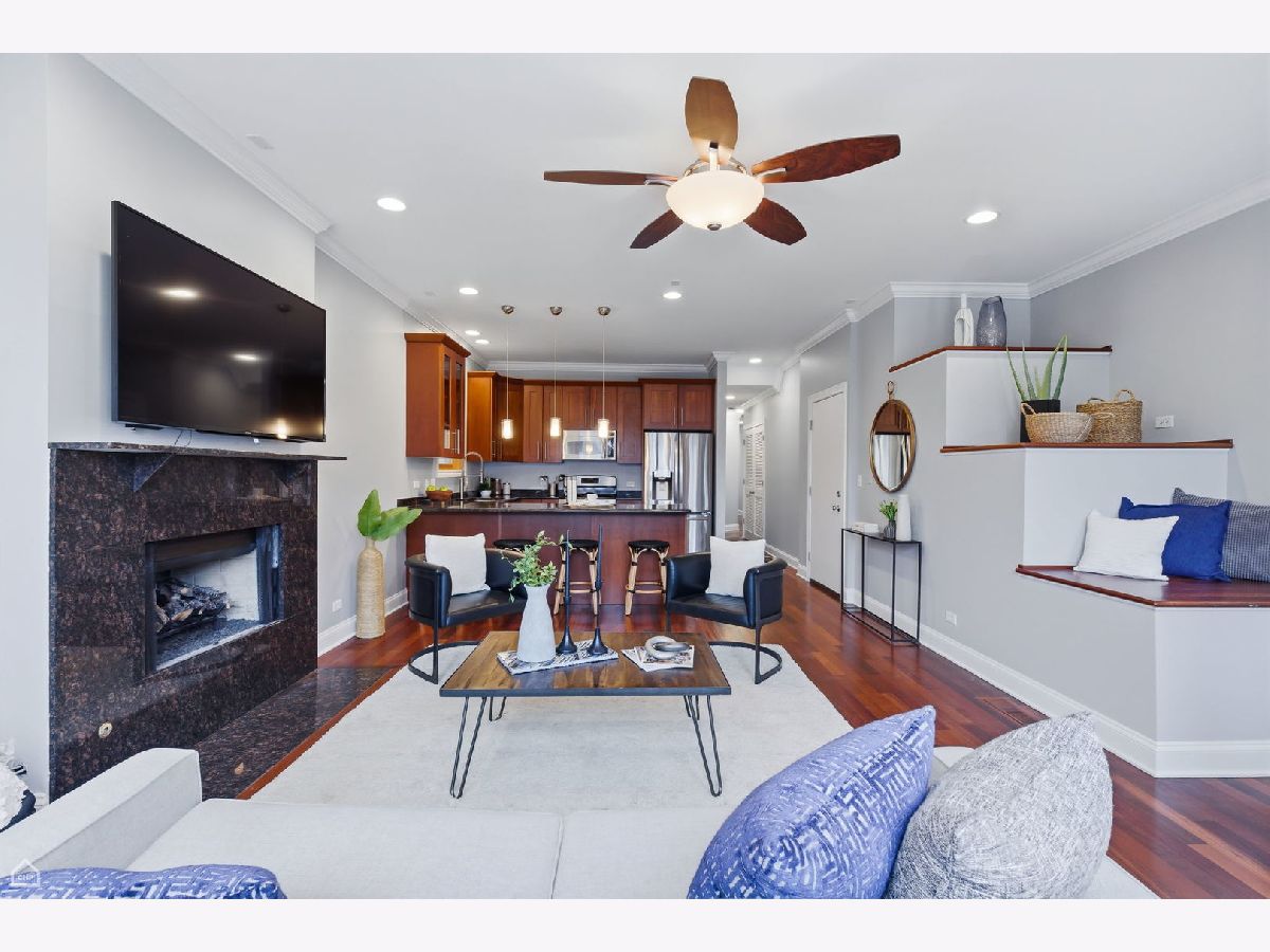 Come see this wonderful 2BD/2BA condo in the heart of Bucktown! Located on an idyllic tree-lined street, this move-in ready unit features a modern floorplan, hardwood floors, and a cozy fireplace, all showcased by oversized windows throughout and beautiful natural light. The kitchen offers shaker cabinets, stainless steel appliances, and ample counter space. Great connectivity to the spacious living and dining room, perfect for everyday living and entertaining. The primary bedroom is a generous size with a walk-in closet and a well-appointed ensuite bath. The second bedroom gives options for a home office, guest room, or nursery. Another full bath and in-unit laundry provide further convenience. Plenty of closet space throughout, plus an extra storage space located in the basement. Great deck, perfect for enjoying the warmer months. Very desirable location, steps to Holstein Park (and pool!), neighborhood restaurants, and coffee shops. Easy walk to public transit, grocery, other area hot spots, and 606 Trail - you will love living here! 1 garage parking space included in price.