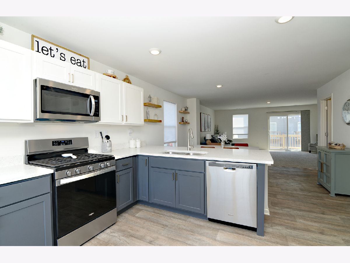 Rare floor plan. Upgrades already done. No wait. No brainer. This end unit overlooks a park...not another building, something you simply won't get with most new construction. Here is the shortcut you need. The Lincoln model in Stonewater has been retired-making this a rare opportunity to own a layout the builder no longer offers. And unlike new construction, this one is already finished the way it should be. This 1,756 sq ft, 3 bedroom, 2.5 bath townhome with a 2 car attached garage delivers what the builder doesn't-window treatments installed, towel bars and toilet paper holders already in place-ready for you from day one. Why wait months, spend more, and still have a to-do list? ALL the appliances are included. The main level features a functional, open-concept design with a peninsula-style kitchen and breakfast bar with seating, perfect for everyday living and easy entertaining-flowing right into the great room and dining area, featuring a balcony for outdoor space. The kitchen stands out with quartz countertops and designer cabinetry featuring a custom two-tone finish-crisp white uppers paired with sleek gray lowers for a clean, modern look. Upstairs, enjoy the convenience of second-floor laundry and a flexible layout with the option to convert bedrooms into a larger secondary suite. And the tech is already handled, smart home system is in place, allowing you to control your home from anywhere with your phone, voice, or panel.