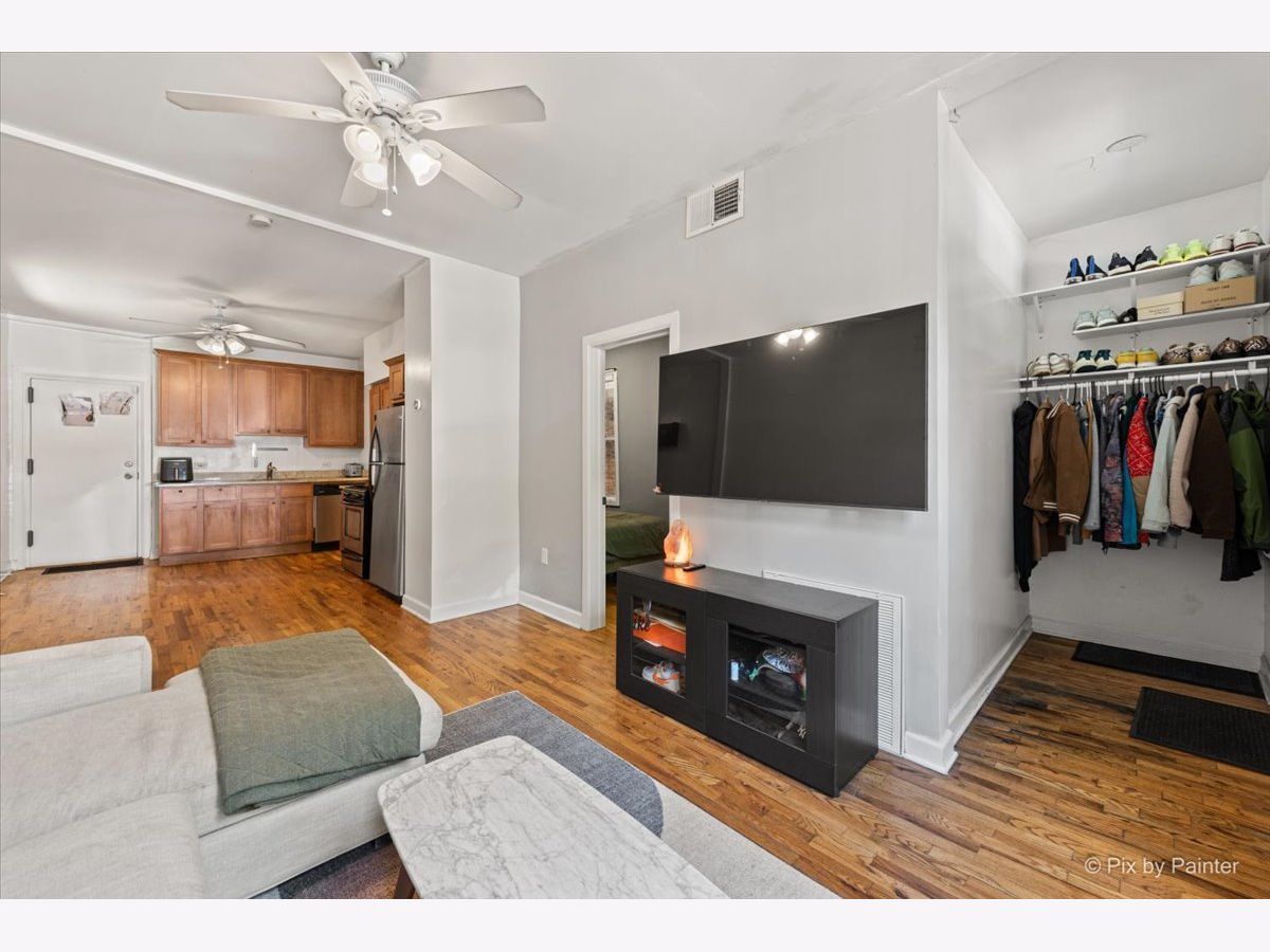 Welcome home to this beautiful 1-bedroom condo in the heart of Bucktown. This charming unit features hardwood floors throughout, a spacious eat-in kitchen with granite countertops, stainless steel appliances, and an open-concept living area perfect for relaxing or entertaining. A large picture window fills the living room with natural light, creating a bright and inviting space. The bedroom comfortably fits a queen bed, nightstand, and dresser, with ample closet space throughout the unit. Enjoy the convenience of in-unit laundry and additional storage. Ideally located just steps from Holstein Park, close to the Blue Line, and surrounded by Bucktown's best shops, restaurants, and cafes. Easy street parking available right outside on Shakespeare. This move-in-ready home offers the perfect blend of comfort and location-don't miss it!
