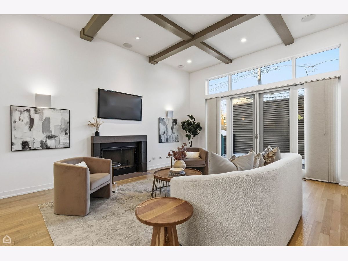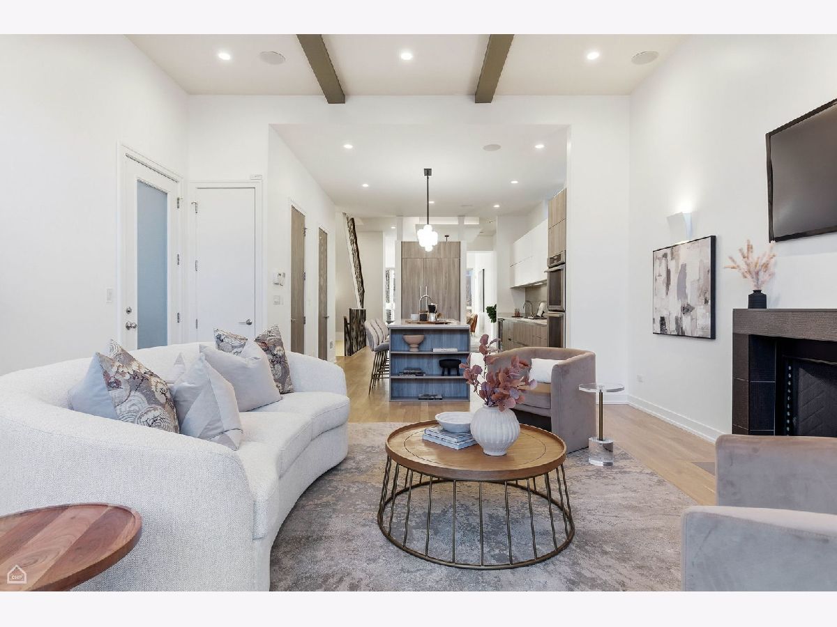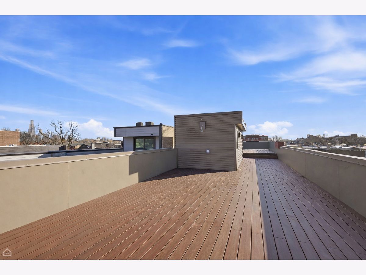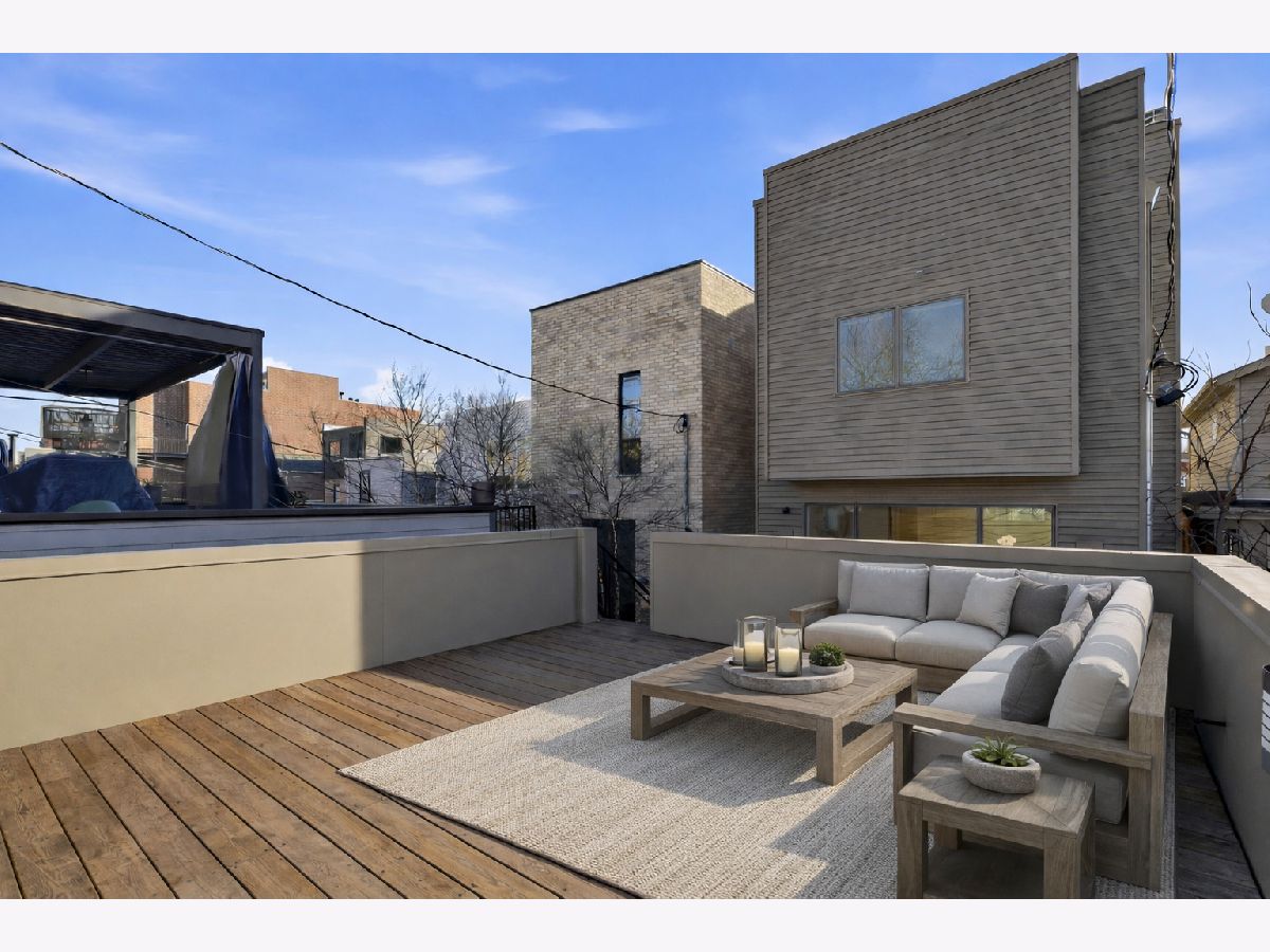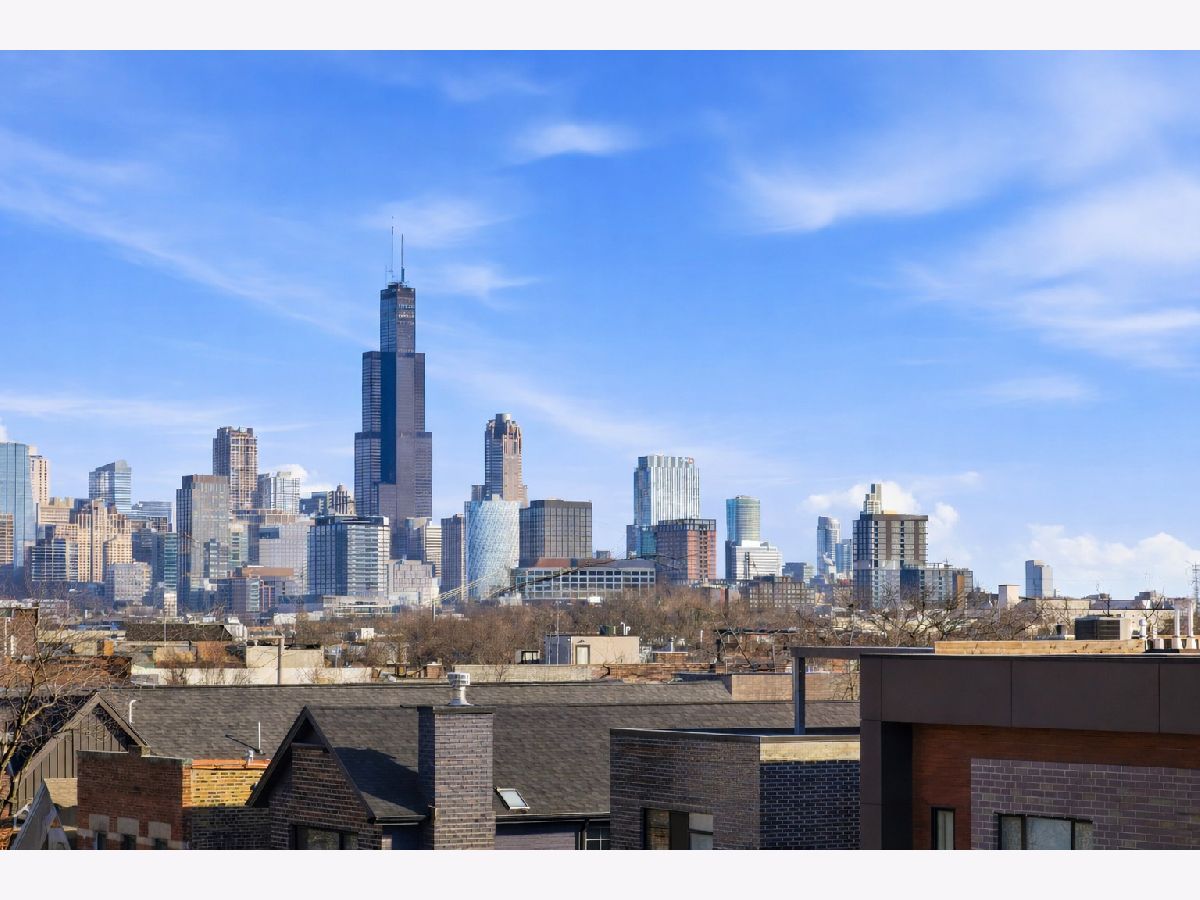 Mitchell School District! Better than new construction, this modern single-family residence offers approximately 4,100 square feet of well-executed living space with 5 bedrooms and 3.1 baths. Thoughtfully designed on 3 levels, the home delivers exceptional indoor-outdoor living, including multiple private outdoor spaces. The interior features an open layout with hardwood floors, oversized windows, dramatic ceiling heights, and custom beamed ceilings. A striking staircase with metal detailing anchors the home and connects each level. The kitchen features quartz countertops, Italian Copatlife cabinets, integrated Thermador appliances, a large island, and a butler's pantry. Open living and dining areas are ideal for everyday living or entertaining. The primary suite offers a true retreat with a spa-inspired bath, including dual vanities with a makeup station, a soaking tub, anoversized steam shower with body sprays, and two custom walk-in closets. The fully finished lower level provides a flexible entertainment space with a wet bar, ice maker, and beverage refrigerator. A top-floor bonus room with an additional wet bar opens directly onto an expansive roof deck with stunning city views. Additional highlights include three fireplaces, two laundry areas (only one has a washer and dryer installed), 400-amp electrical service, central vacuum system, Pella windows, security cameras, on-demand hot water heaters, EV-ready 220-volt wiring, and flush-mounted speakers throughout. This is one of the best blocks in West Town - walk to school, dining, shopping, and transit.