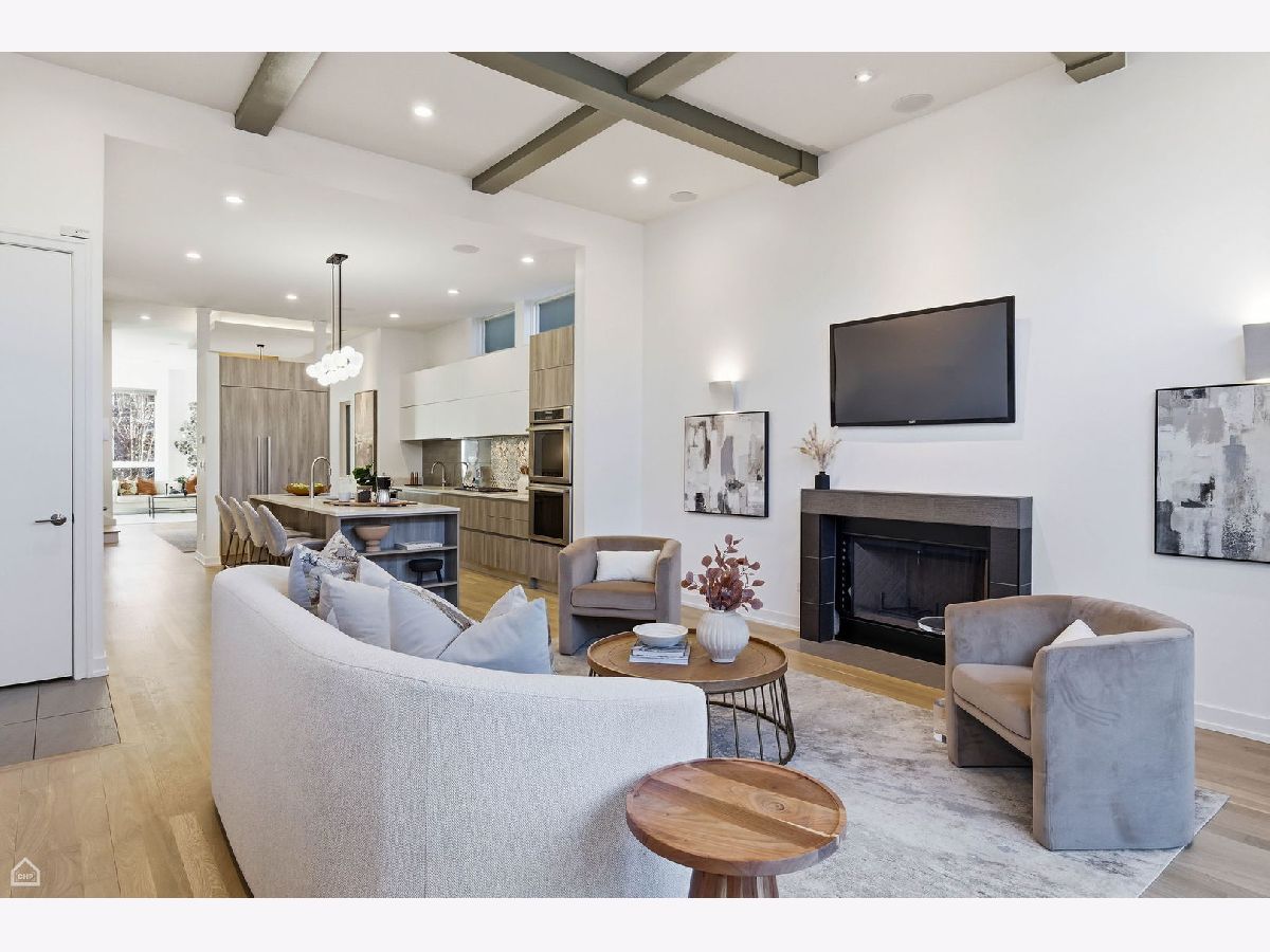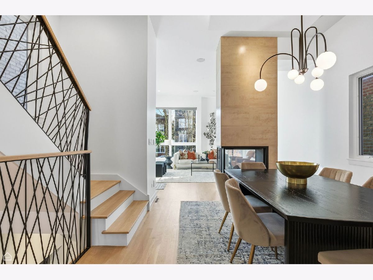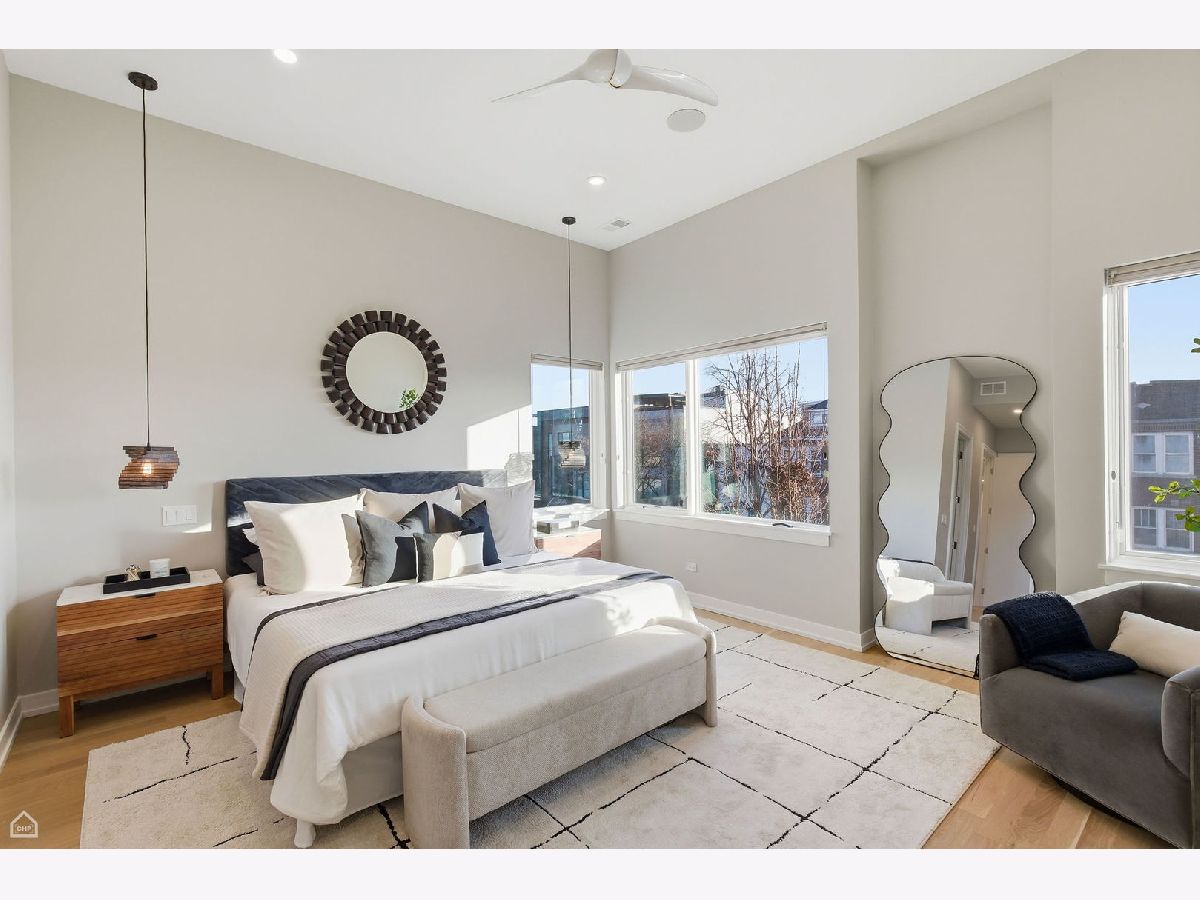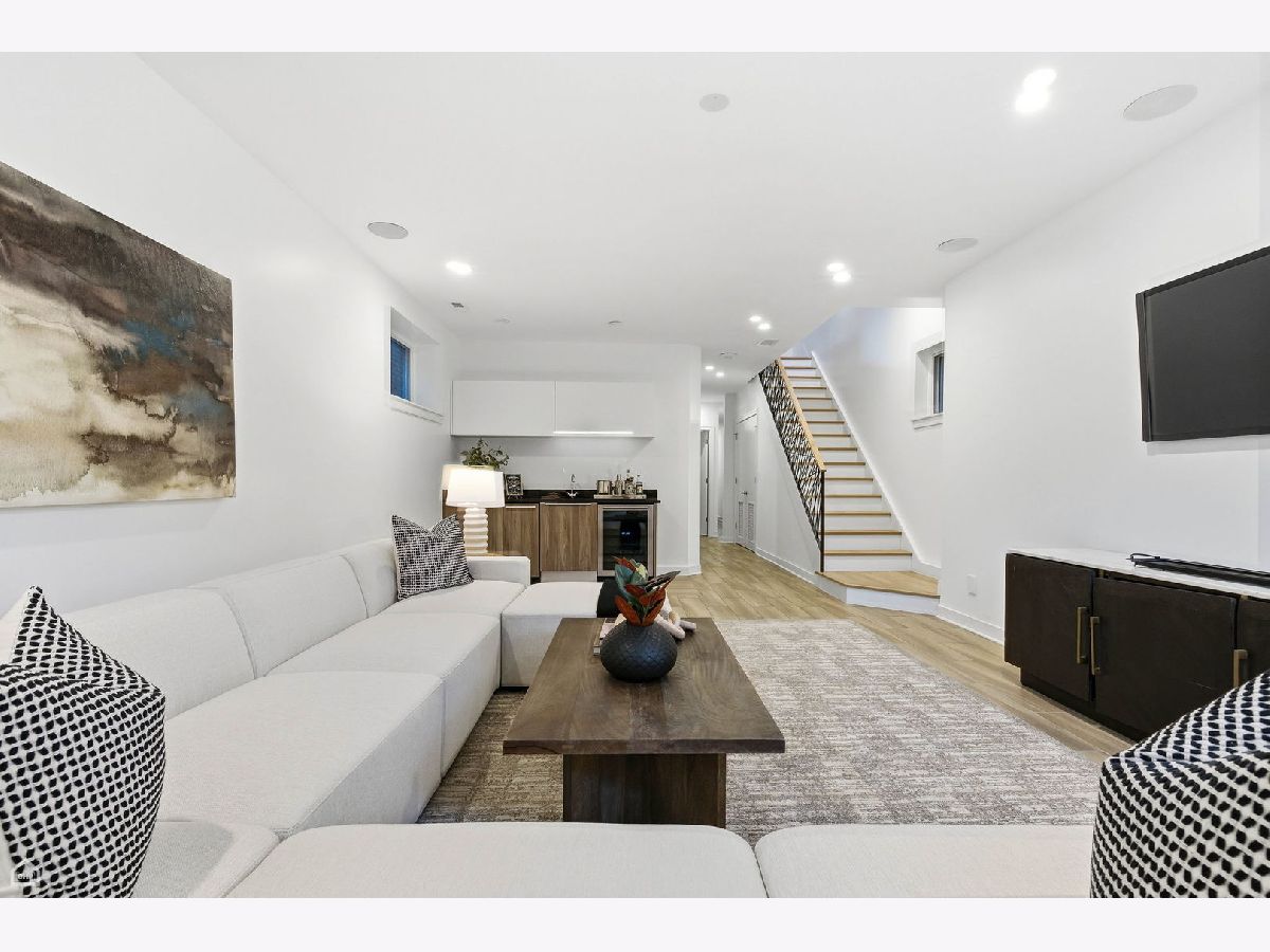 Mitchell School District! Better than new construction, this modern single-family residence offers approximately 4,100 square feet of well-executed living space with 5 bedrooms and 3.1 baths. Thoughtfully designed on 3 levels, the home delivers exceptional indoor-outdoor living, including multiple private outdoor spaces. The interior features an open layout with hardwood floors, oversized windows, dramatic ceiling heights, and custom beamed ceilings. A striking staircase with metal detailing anchors the home and connects each level. The kitchen features quartz countertops, Italian Copatlife cabinets, integrated Thermador appliances, a large island, and a butler's pantry. Open living and dining areas are ideal for everyday living or entertaining. The primary suite offers a true retreat with a spa-inspired bath, including dual vanities with a makeup station, a soaking tub, anoversized steam shower with body sprays, and two custom walk-in closets. The fully finished lower level provides a flexible entertainment space with a wet bar, ice maker, and beverage refrigerator. A top-floor bonus room with an additional wet bar opens directly onto an expansive roof deck with stunning city views. Additional highlights include three fireplaces, two laundry areas (only one has a washer and dryer installed), 400-amp electrical service, central vacuum system, Pella windows, security cameras, on-demand hot water heaters, EV-ready 220-volt wiring, and flush-mounted speakers throughout. This is one of the best blocks in West Town - walk to school, dining, shopping, and transit.