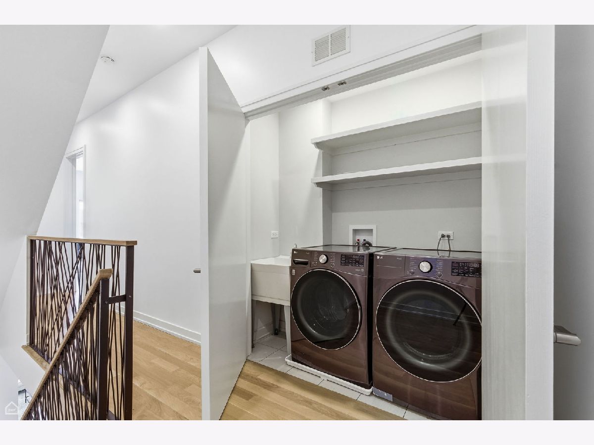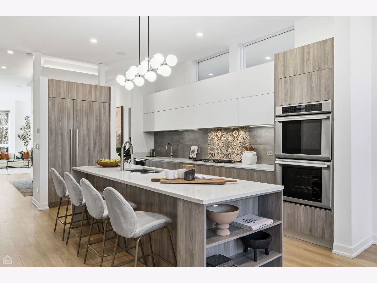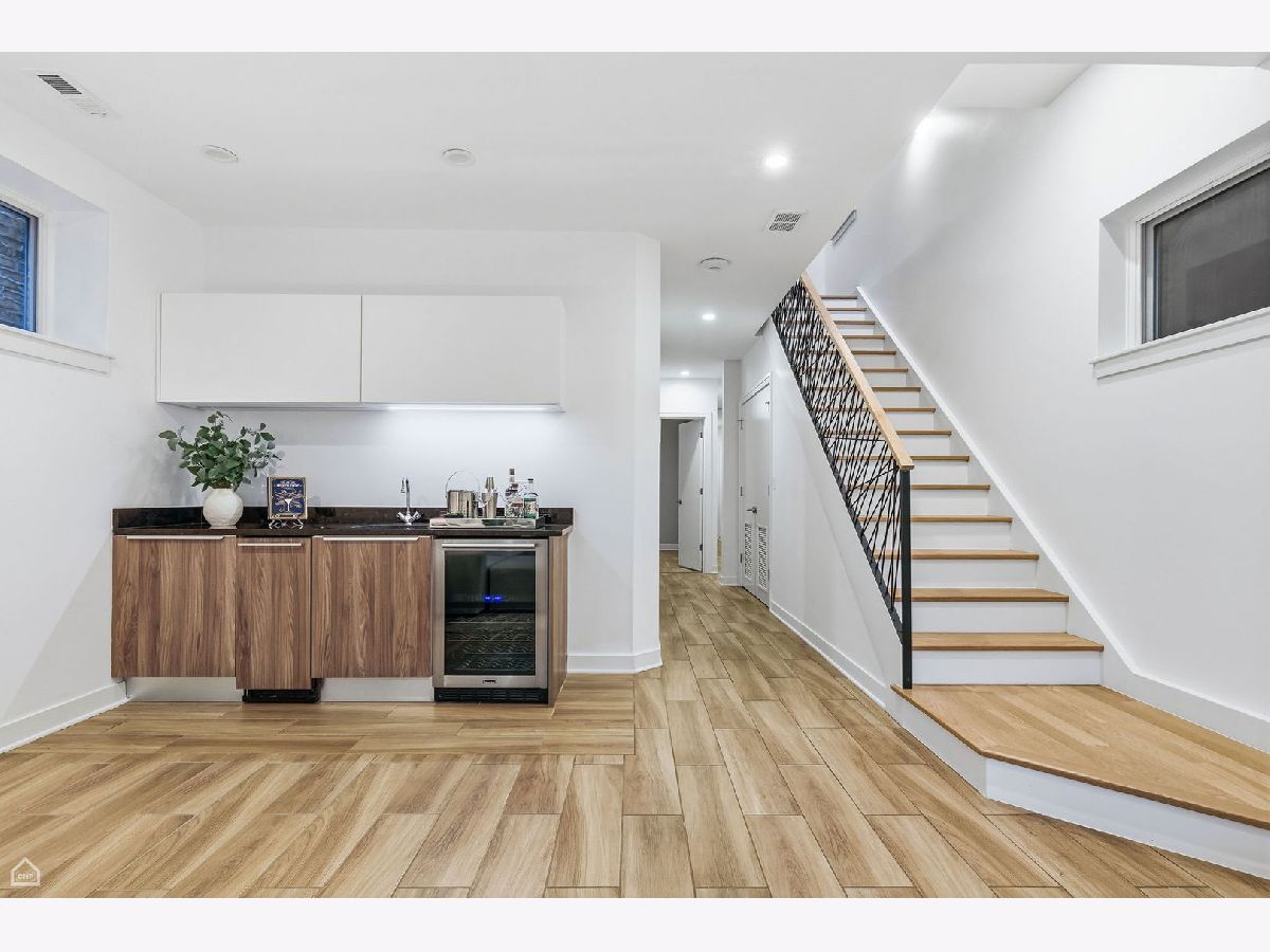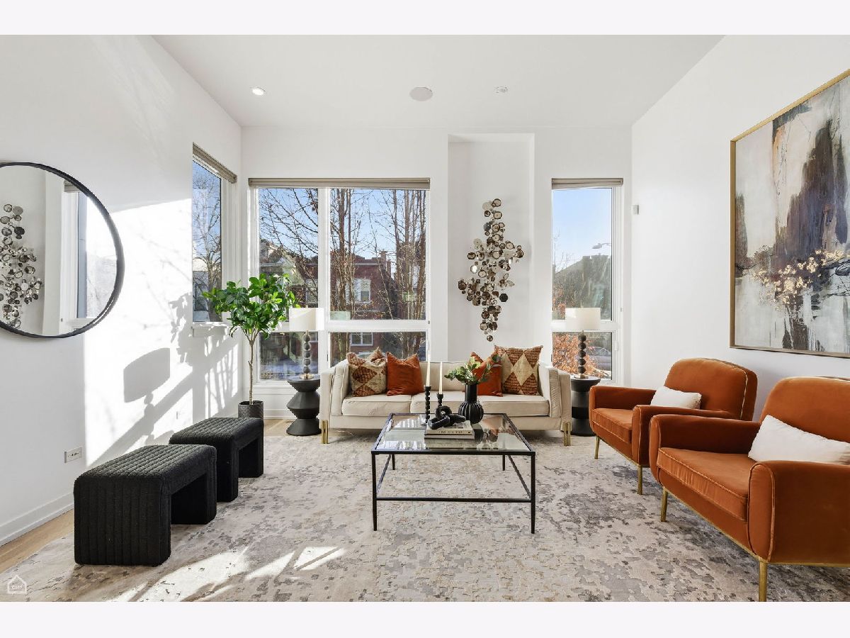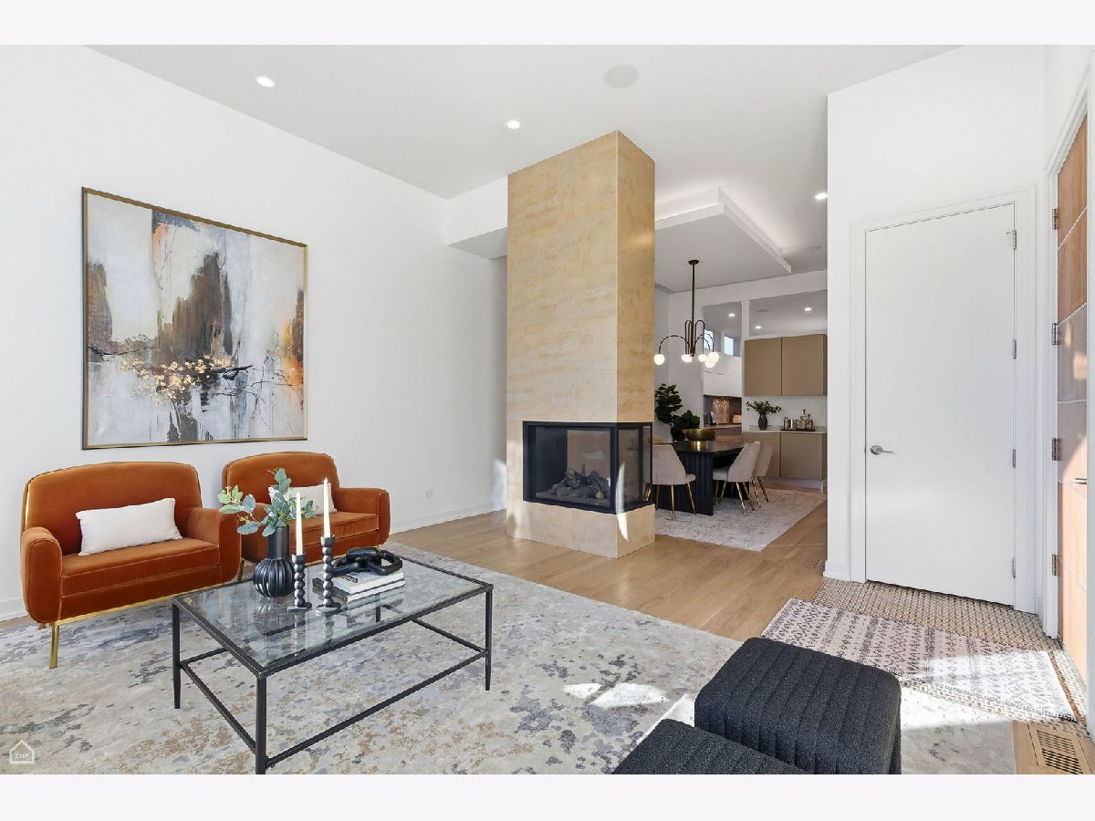 Mitchell School District! Better than new construction, this modern single-family residence offers approximately 4,100 square feet of well-executed living space with 5 bedrooms and 3.1 baths. Thoughtfully designed on 3 levels, the home delivers exceptional indoor-outdoor living, including multiple private outdoor spaces. The interior features an open layout with hardwood floors, oversized windows, dramatic ceiling heights, and custom beamed ceilings. A striking staircase with metal detailing anchors the home and connects each level. The kitchen features quartz countertops, Italian Copatlife cabinets, integrated Thermador appliances, a large island, and a butler's pantry. Open living and dining areas are ideal for everyday living or entertaining. The primary suite offers a true retreat with a spa-inspired bath, including dual vanities with a makeup station, a soaking tub, anoversized steam shower with body sprays, and two custom walk-in closets. The fully finished lower level provides a flexible entertainment space with a wet bar, ice maker, and beverage refrigerator. A top-floor bonus room with an additional wet bar opens directly onto an expansive roof deck with stunning city views. Additional highlights include three fireplaces, two laundry areas (only one has a washer and dryer installed), 400-amp electrical service, central vacuum system, Pella windows, security cameras, on-demand hot water heaters, EV-ready 220-volt wiring, and flush-mounted speakers throughout. This is one of the best blocks in West Town - walk to school, dining, shopping, and transit.