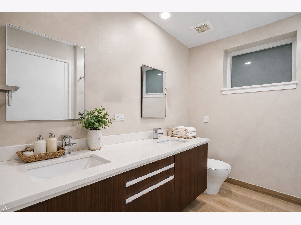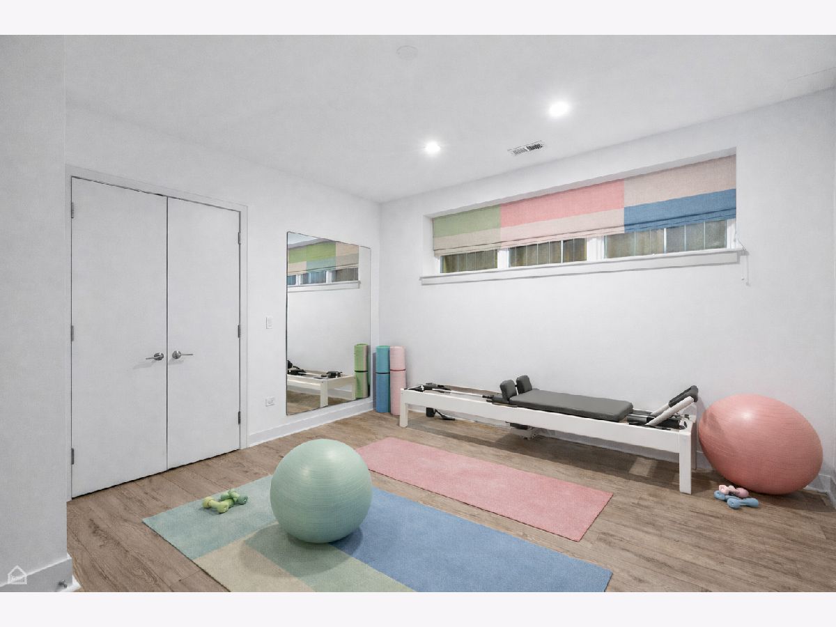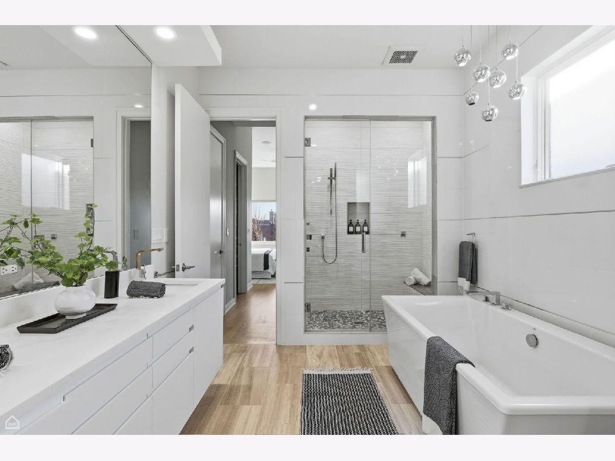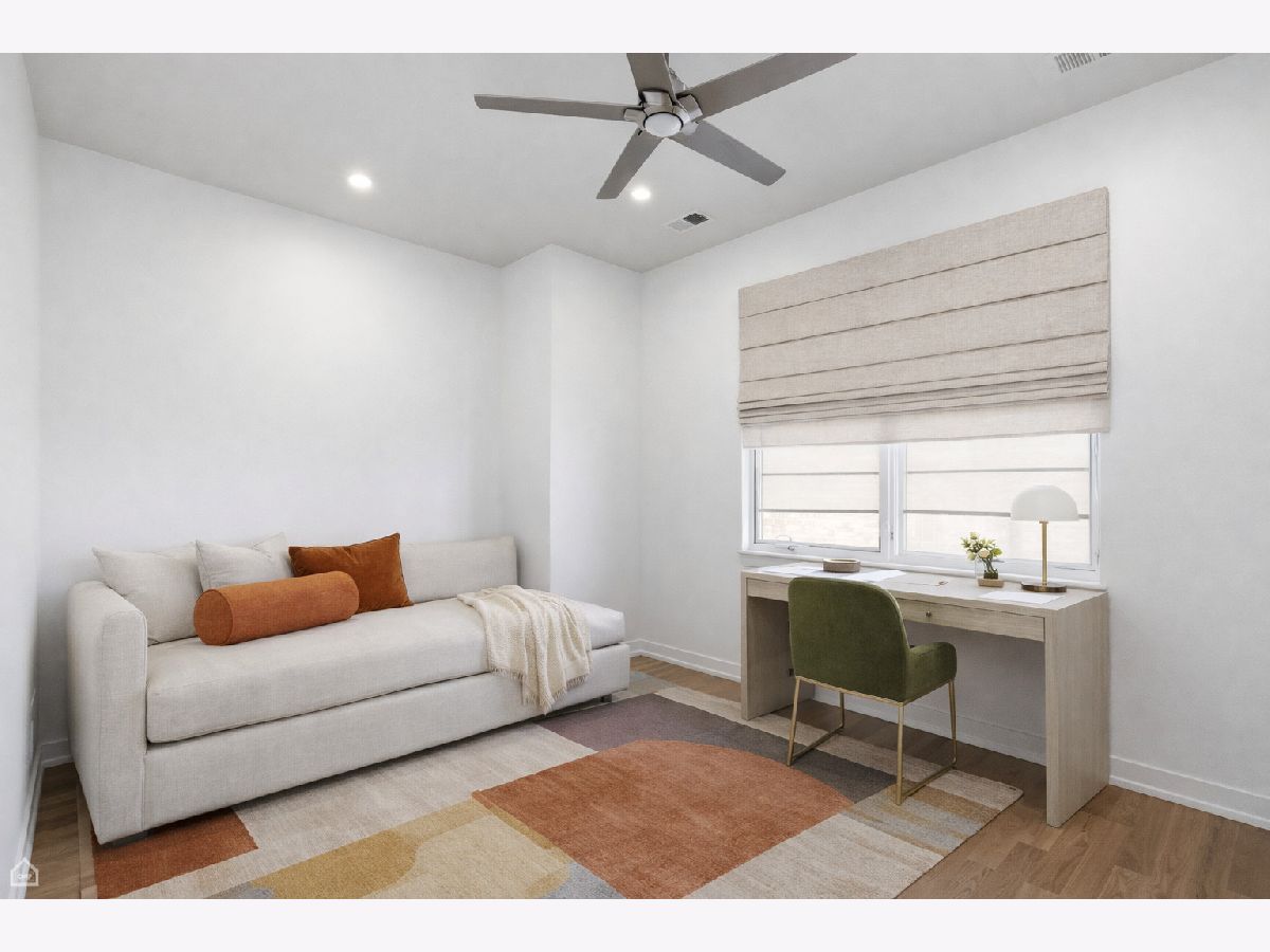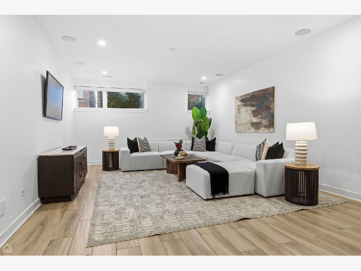 Mitchell School District! Better than new construction, this modern single-family residence offers approximately 4,100 square feet of well-executed living space with 5 bedrooms and 3.1 baths. Thoughtfully designed on 3 levels, the home delivers exceptional indoor-outdoor living, including multiple private outdoor spaces. The interior features an open layout with hardwood floors, oversized windows, dramatic ceiling heights, and custom beamed ceilings. A striking staircase with metal detailing anchors the home and connects each level. The kitchen features quartz countertops, Italian Copatlife cabinets, integrated Thermador appliances, a large island, and a butler's pantry. Open living and dining areas are ideal for everyday living or entertaining. The primary suite offers a true retreat with a spa-inspired bath, including dual vanities with a makeup station, a soaking tub, anoversized steam shower with body sprays, and two custom walk-in closets. The fully finished lower level provides a flexible entertainment space with a wet bar, ice maker, and beverage refrigerator. A top-floor bonus room with an additional wet bar opens directly onto an expansive roof deck with stunning city views. Additional highlights include three fireplaces, two laundry areas (only one has a washer and dryer installed), 400-amp electrical service, central vacuum system, Pella windows, security cameras, on-demand hot water heaters, EV-ready 220-volt wiring, and flush-mounted speakers throughout. This is one of the best blocks in West Town - walk to school, dining, shopping, and transit.