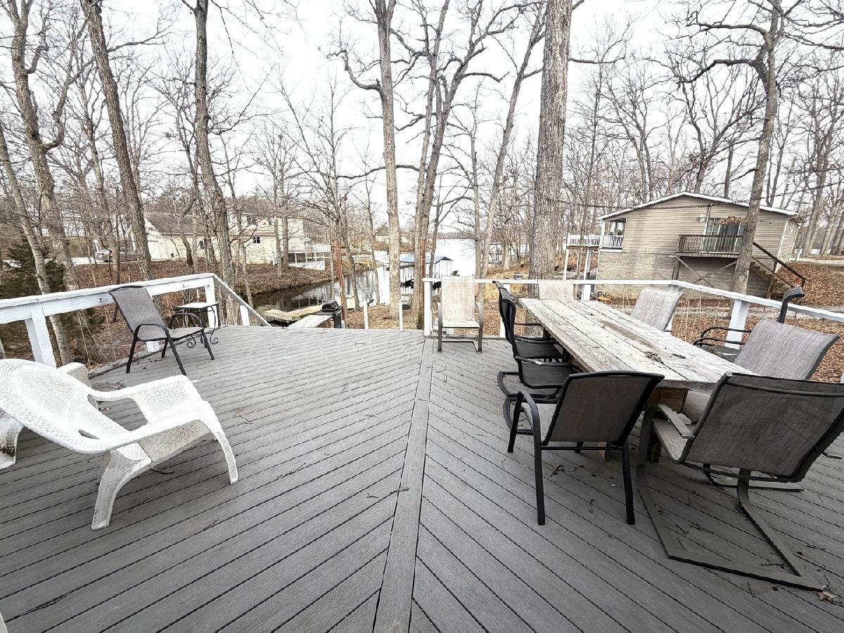 This fully furnished lake house is ready for you to bring your groceries and clothes. The split floor plan is perfect for entertaining. Large living room with a gorgeous view of the lake. Kitchen has an island and loads of cabinet space. Family room/game room is a great place to hang out after a day on the water. Large primary bedroom with 3 closets, large ensuite with separate soaking tub/shower. Two additional bedrooms and full bathroom. Outdoors you can enjoy the large deck with a view of the lake, dock and large yard. There is plenty of patio space for a firepit and chairs. Posts to hang your outdoor lights around the patio to create the perfect ambiance. 1 car detached garage that is oversized for storage.