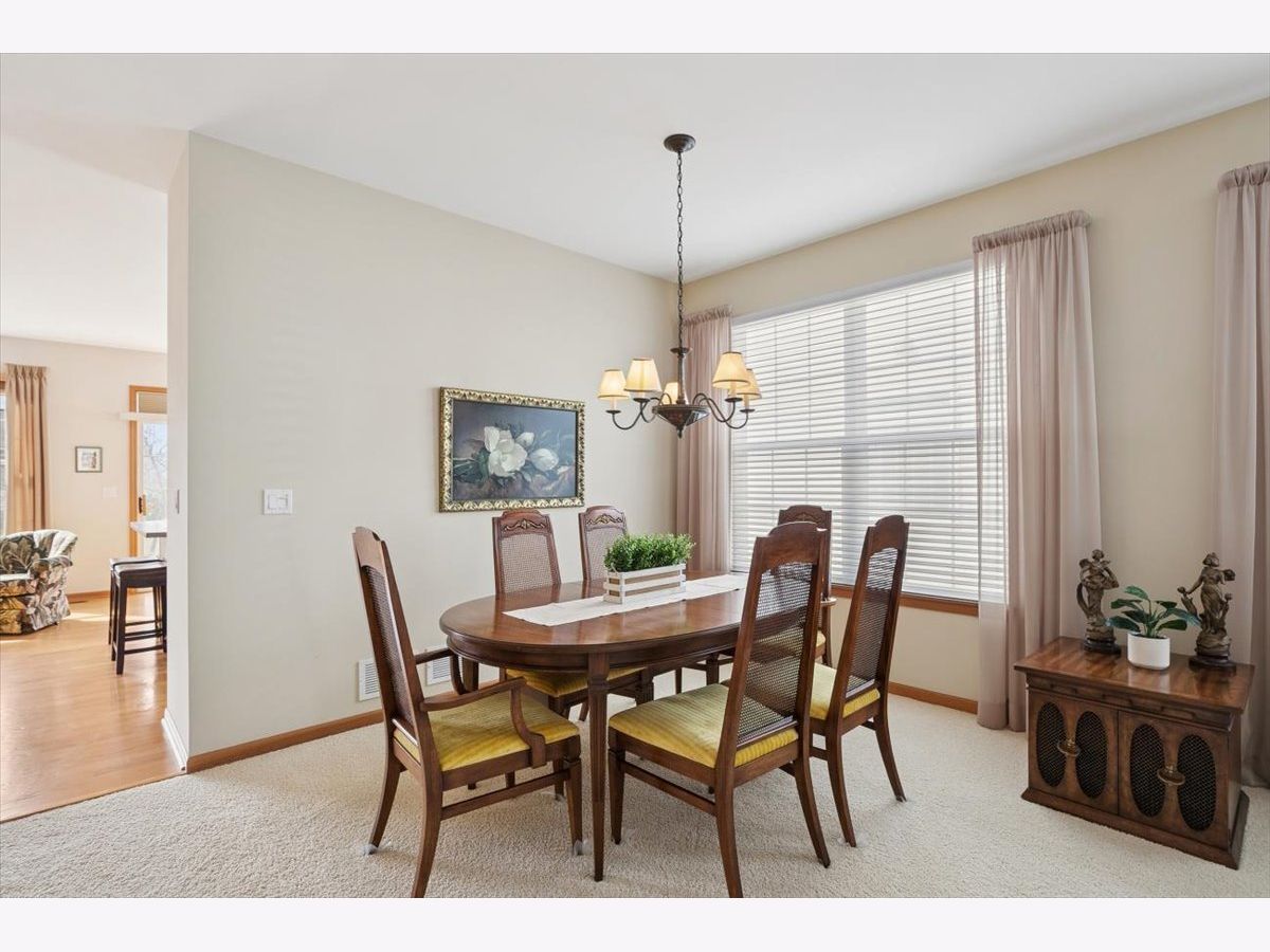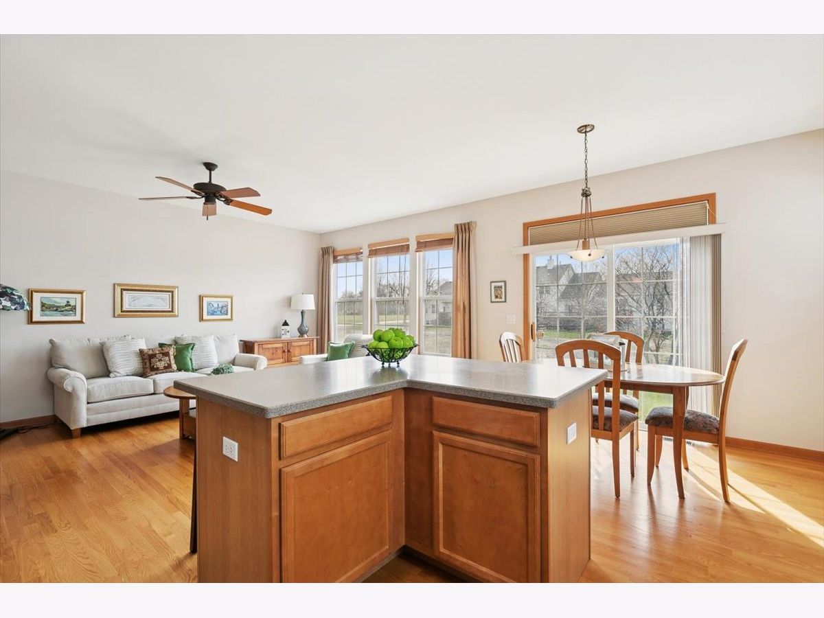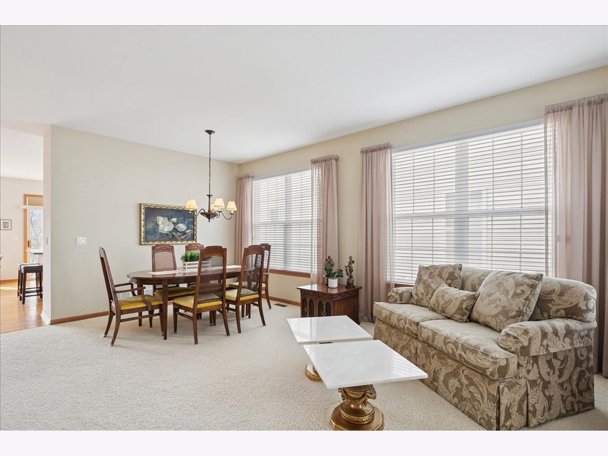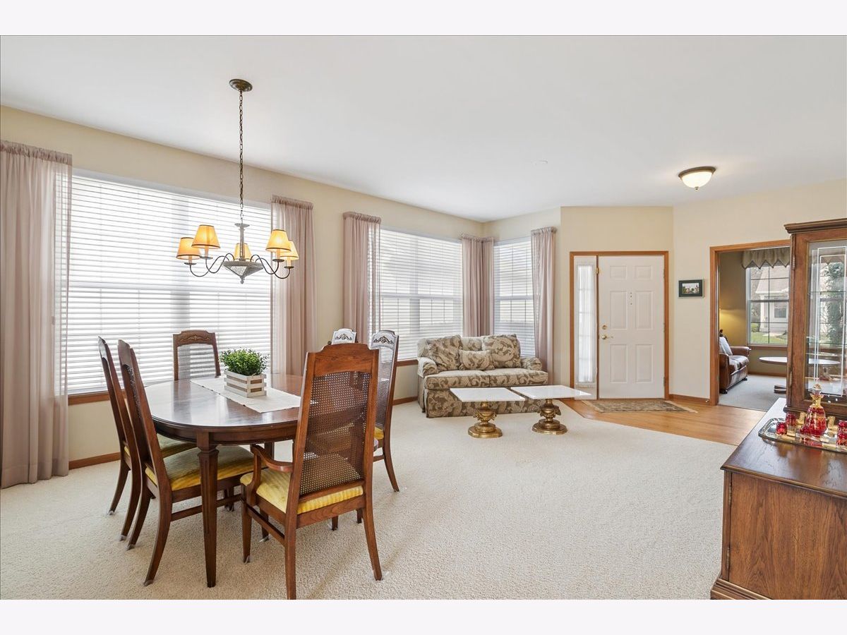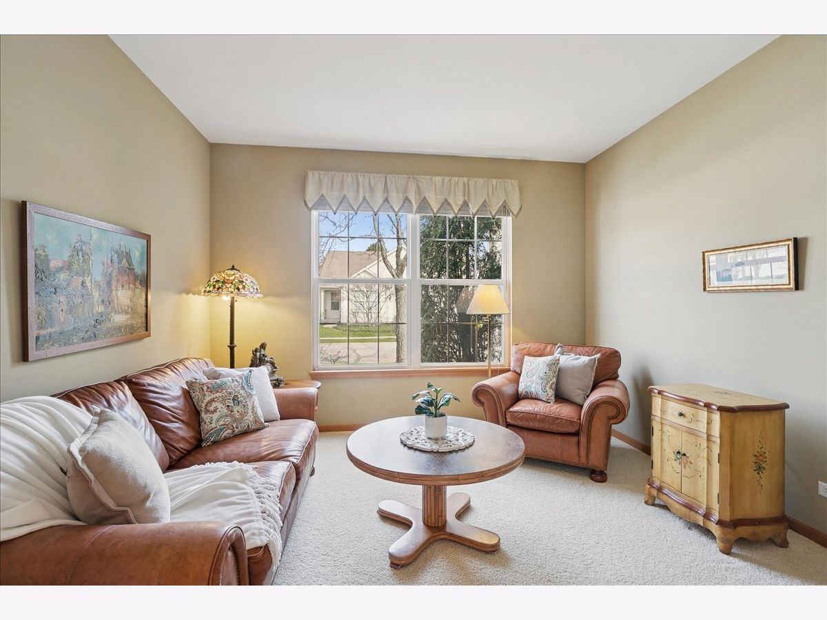 Located in the highly desirable Carillon North 55+ gated retirement community, this amazing 2-bedroom, 2 full-bath ranch home with a den/office and a 2-car garage offers both comfort and convenience. Set within a beautiful community featuring ponds, walking trails, and a variety of activities, residents also enjoy access to a clubhouse with tennis/pickleball courts, heated pool, and more. This outstanding home, with custom window treatments, offers a desirable layout with an abundance of natural light. The spacious living and dining room combination is perfect for entertaining, while the eat-in kitchen features wood cabinetry, ample counter space, and an island that flows seamlessly into a family room addition with a wall of windows overlooking the backyard. Step outside to a concrete patio surrounded by mature trees and professional landscaping. The primary suite includes a private bath with a tub, walk-in shower, and a large WIC.. An additional spacious bedroom, den/office, and full bath complete this ideal first floor layout. The unfinished basement provides potential for additional living space along with abundant storage and bathroom rough-in. Conveniently located near shopping, dining, golf courses, and the Rollins Savanna Forest Preserve with beautiful walking and biking trails, this home offers an exceptional location and lifestyle. Updates include the roof (2017), water heater (2019), furnace (2016), and dual capacitor in the AC (2025).