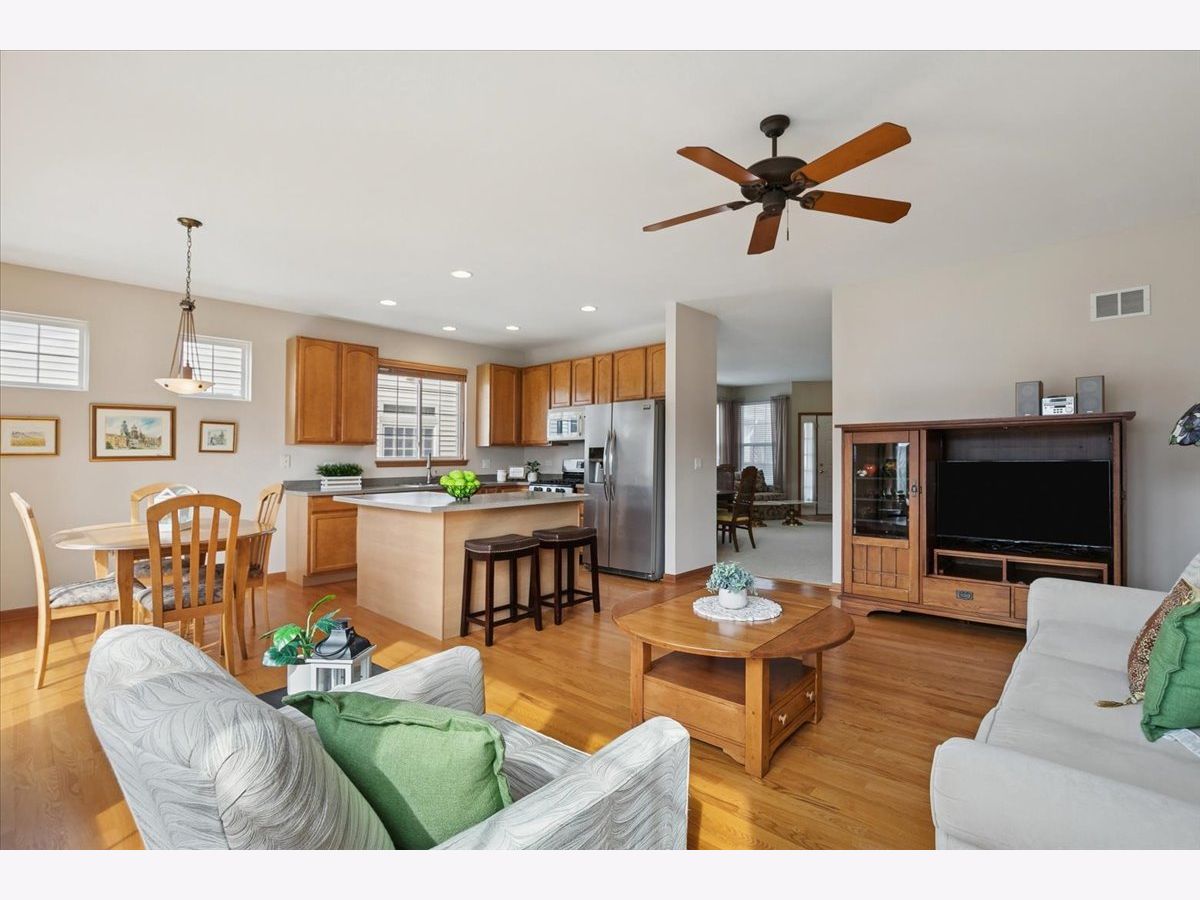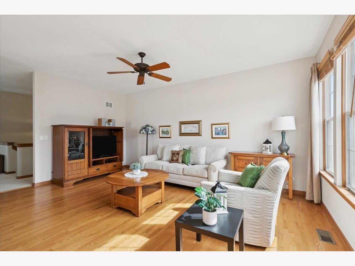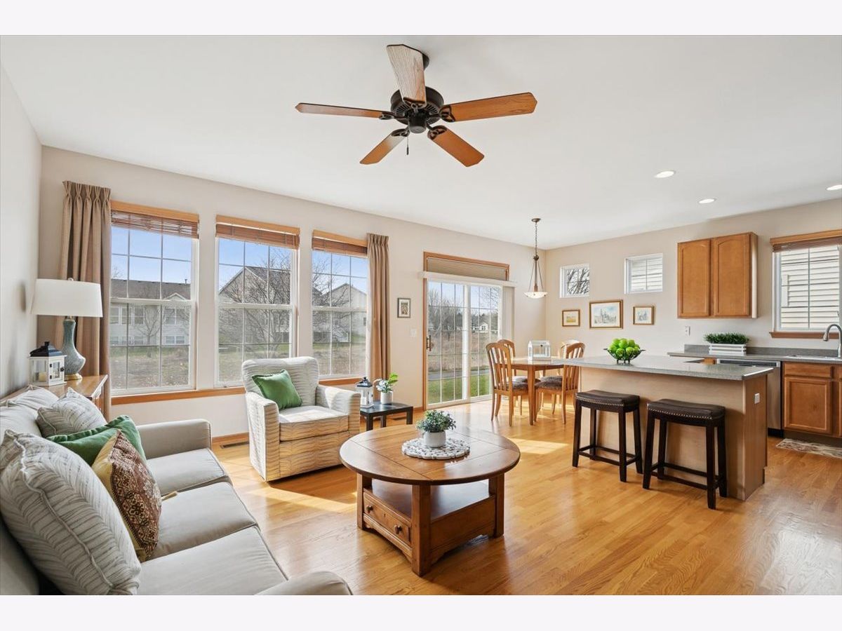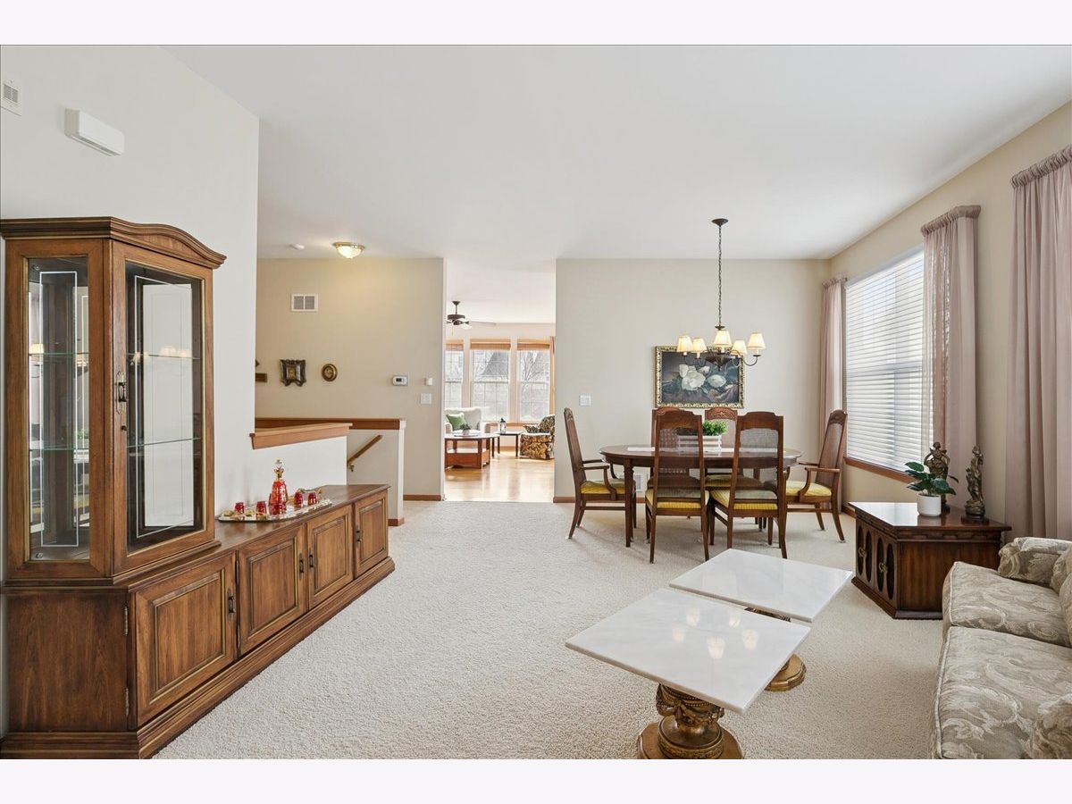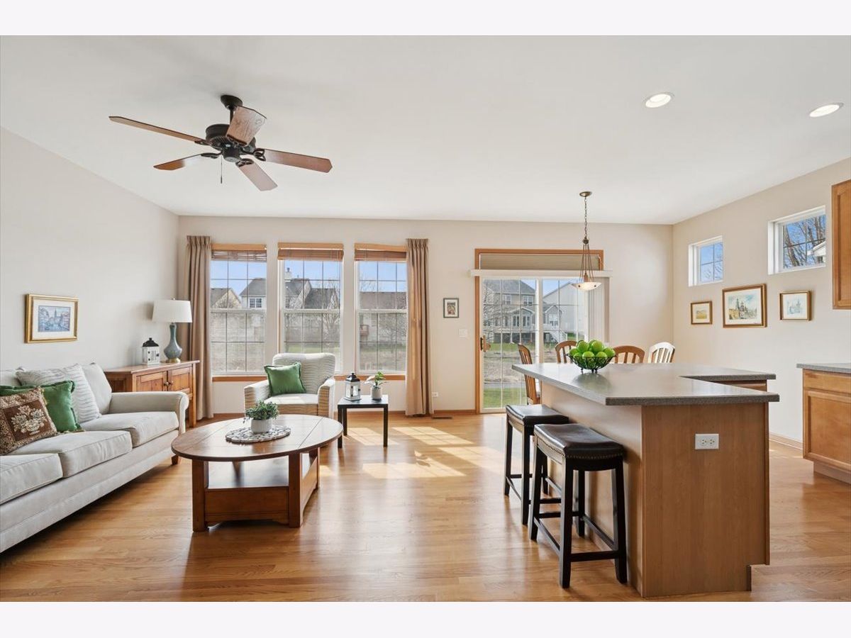 Located in the highly desirable Carillon North 55+ gated retirement community, this amazing 2-bedroom, 2 full-bath ranch home with a den/office and a 2-car garage offers both comfort and convenience. Set within a beautiful community featuring ponds, walking trails, and a variety of activities, residents also enjoy access to a clubhouse with tennis/pickleball courts, heated pool, and more. This outstanding home, with custom window treatments, offers a desirable layout with an abundance of natural light. The spacious living and dining room combination is perfect for entertaining, while the eat-in kitchen features wood cabinetry, ample counter space, and an island that flows seamlessly into a family room addition with a wall of windows overlooking the backyard. Step outside to a concrete patio surrounded by mature trees and professional landscaping. The primary suite includes a private bath with a tub, walk-in shower, and a large WIC.. An additional spacious bedroom, den/office, and full bath complete this ideal first floor layout. The unfinished basement provides potential for additional living space along with abundant storage and bathroom rough-in. Conveniently located near shopping, dining, golf courses, and the Rollins Savanna Forest Preserve with beautiful walking and biking trails, this home offers an exceptional location and lifestyle. Updates include the roof (2017), water heater (2019), furnace (2016), and dual capacitor in the AC (2025).