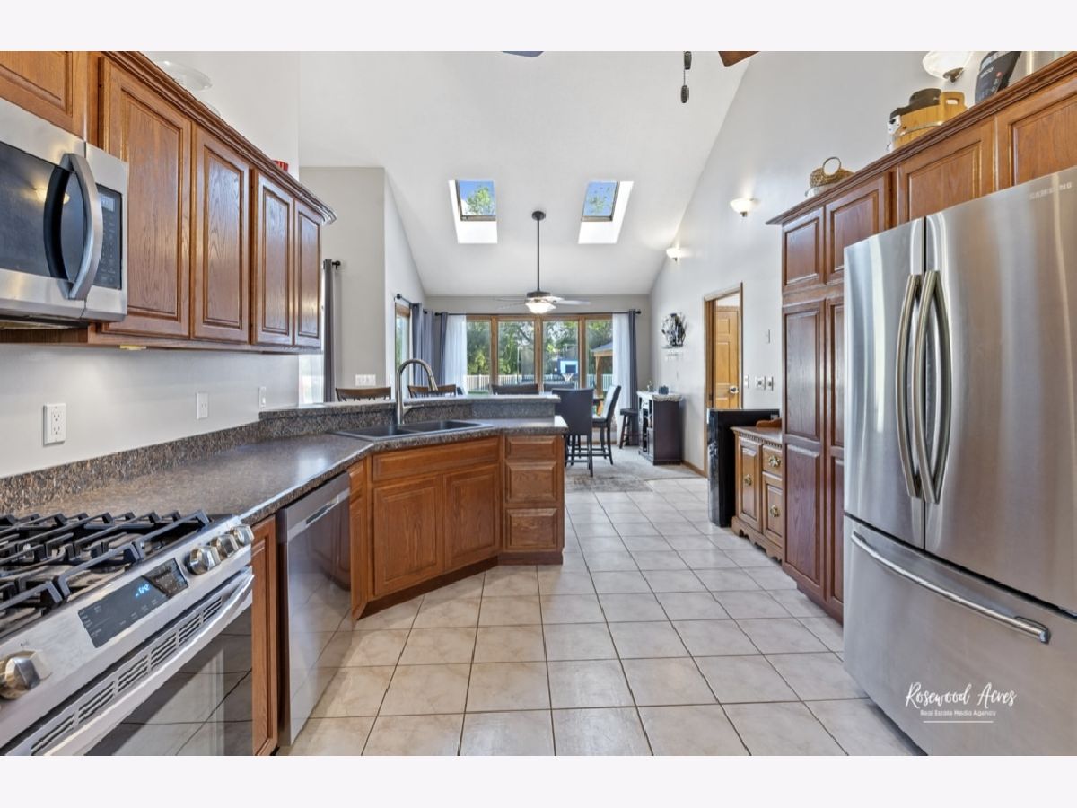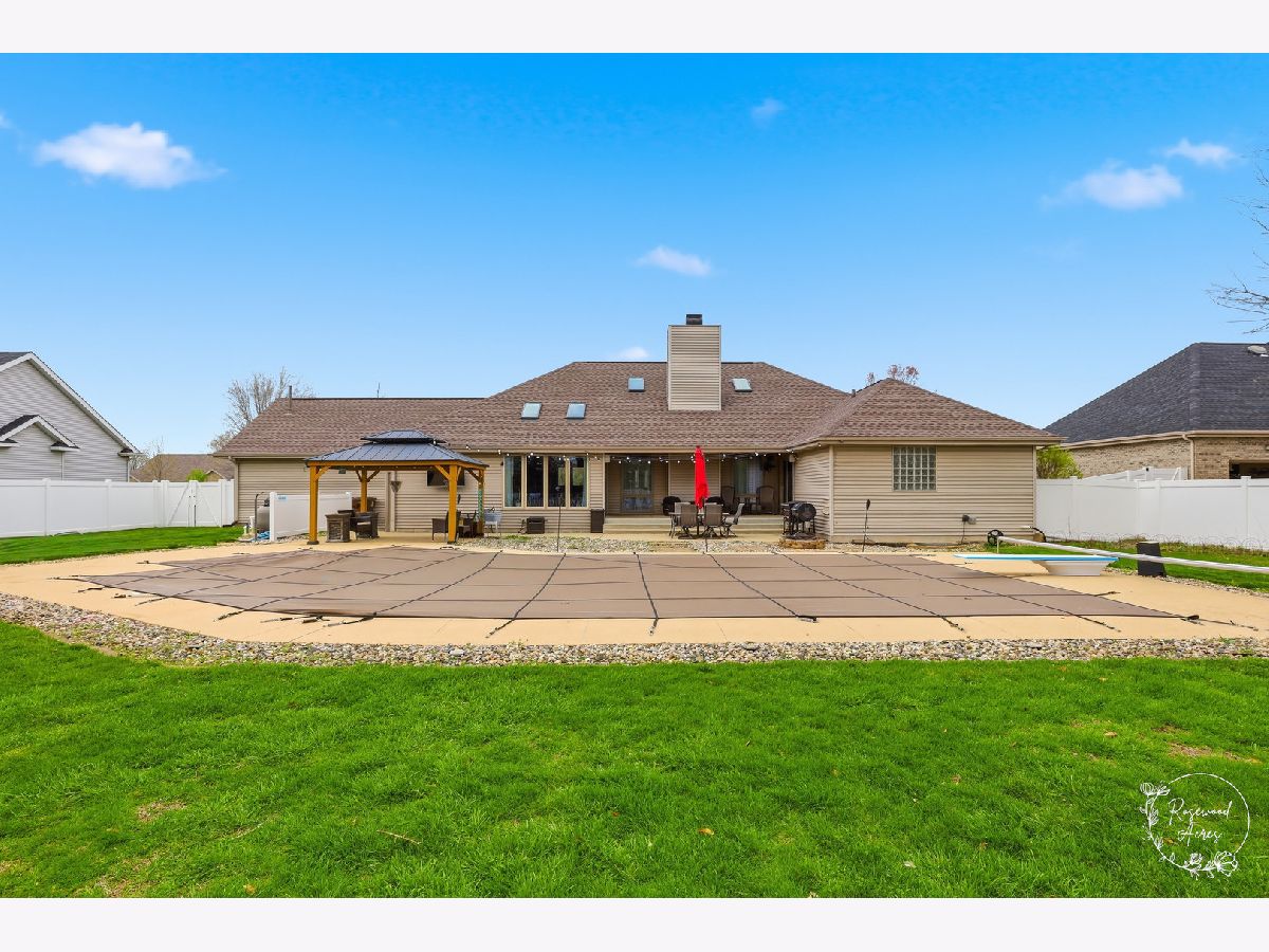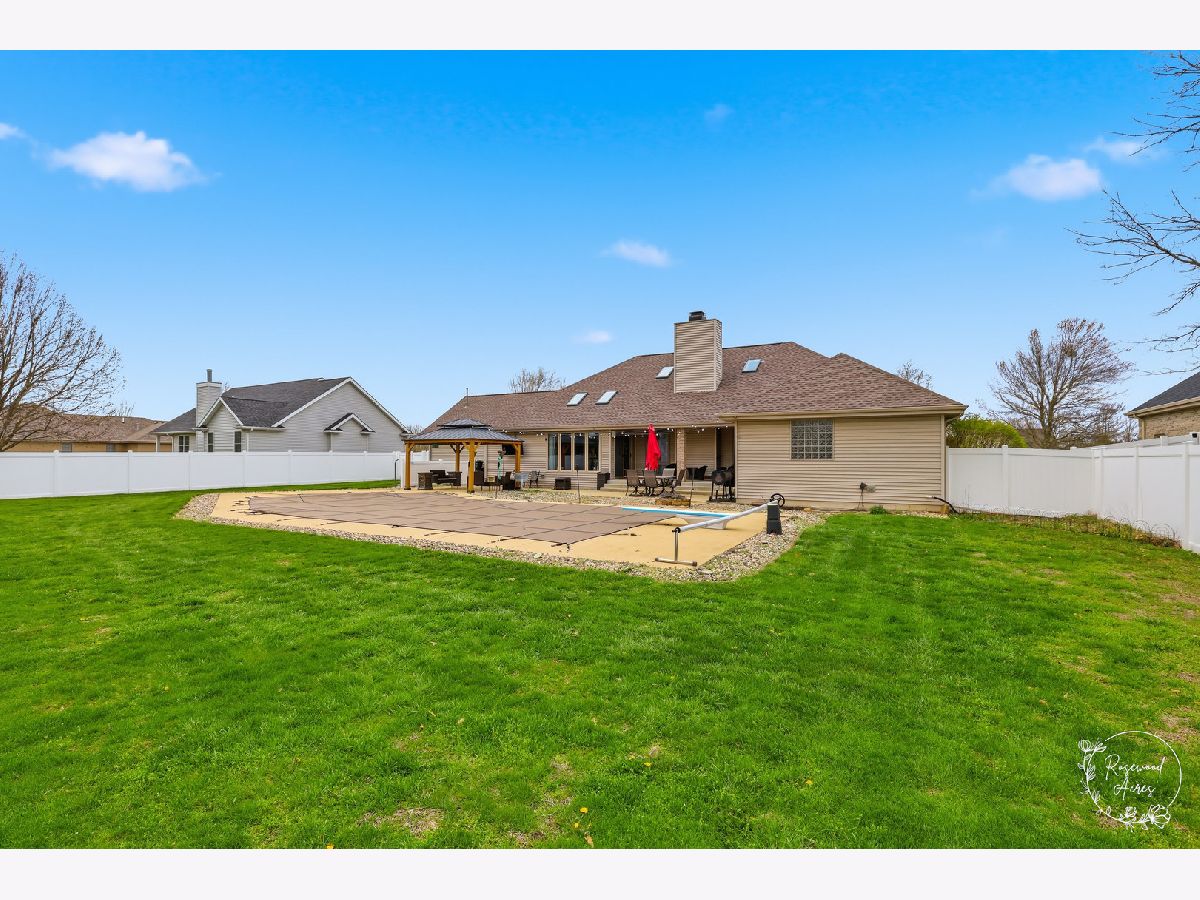 Exceptional 3BR, 3.5BA home in highly sought-after River Bend Subdivision within Herscher School District! Built in 1998 by Designs Unlimited, this well-maintained home offers 2,100 sq ft on the main level plus a full basement with approx. 1,400 sq ft of beautifully finished space. The main level features spacious, light-filled living areas with a cozy gas fireplace, vaulted and trayed ceilings, and stunning new solar-shaded skylights (2025). The main level of the home features a 5-room sound system. The updated kitchen boasts a new breakfast bar, 5-stage reverse osmosis system, and newer, stainless steel appliances-all included-along with convenient main-level laundry (washer/dryer stay). The home offers ample closet space throughout. The finished basement is built for entertaining and everyday living, offering a large game room, additional family room, private study, full bath, and extensive storage areas. The basement also features Bose surround sound system. Enjoy in-floor radiant heat powered by a newer on-demand boiler (2023), with additional radiant heat in upstairs tile areas. Battery backup sump pump adds extra peace of mind. Step outside to your private backyard oasis! Fully enclosed with a white PVC fence, this incredible space features an 8' deep in-ground pool with diving board, gazebo, firepit area, and a 12x16 storage shed-perfect for summer entertaining and relaxing evenings. Major updates provide peace of mind, including new roof (2025), new skylights (2025), on-demand water heater (2024), on-demand boiler system (2023), high-efficiency furnace, and more. Additional highlights include heated 3.5-car garage, with a new heater, and Brinks security system. A rare find offering space, upgrades, and resort-style outdoor living-this one truly has it all!