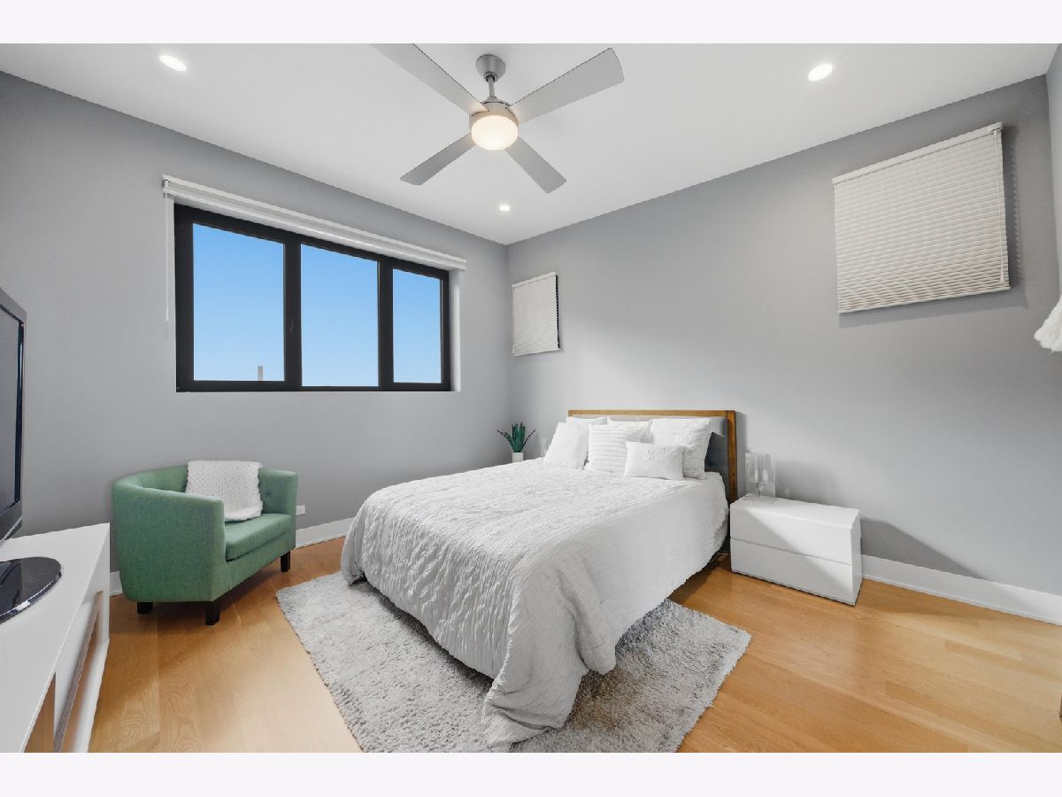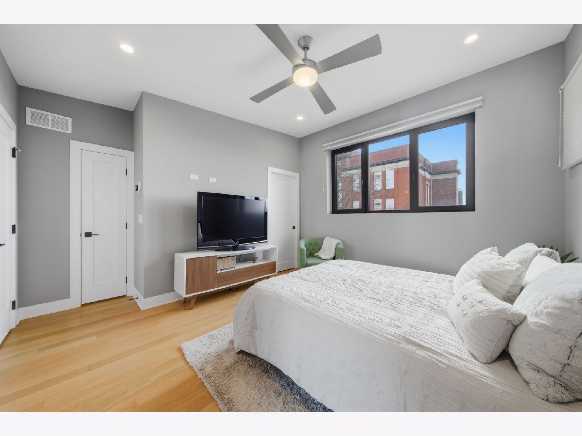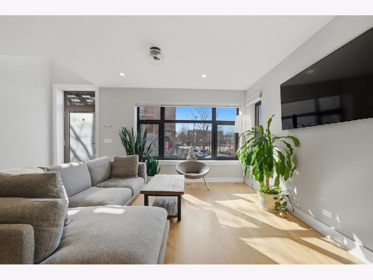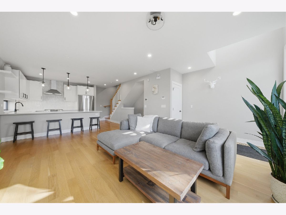 Built in 2020, this rarely available corner 4-bedroom, 3-bath townhome offers the feel of brand new construction in the heart of vibrant Logan Square. This front corner unit faces the park and features a large fenced yard, a rare find for townhome living. Thoughtfully designed with high-end finishes, exceptional attention to detail, and a beautifully landscaped private gated courtyard with dedicated green space, this home stands out from the moment you arrive. The main level features a dramatic lightwell entry and an open-concept kitchen with Bosch appliances, crisp modern finishes, and a stunning quartz breakfast bar overlooking the spacious living and dining area. The second floor includes two generously sized bedrooms with ample closet space, a large full bath with dual vanities, and a laundry room with side-by-side washer and dryer. The entire third floor is dedicated to the private primary suite, complete with a custom-built walk-in closet and a spa-like bath featuring a double vanity, walk-in shower, and heated floors. A private rooftop deck offers exceptional outdoor space and sweeping treetop views. The lower level provides a second living area, an additional bedroom, a full bathroom, and extra storage, making it ideal for guests, a home office, or a media room. Garage parking with an EV charger is included in the price. This home also overlooks Goethe Elementary School playground and park, and is just steps from neighborhood restaurants, shops, and minutes to the California Blue Line. Rockwell Square puts you close to everything Logan Square has to offer. Explore the property in 3D by clicking the virtual tour button and walking through every detail.