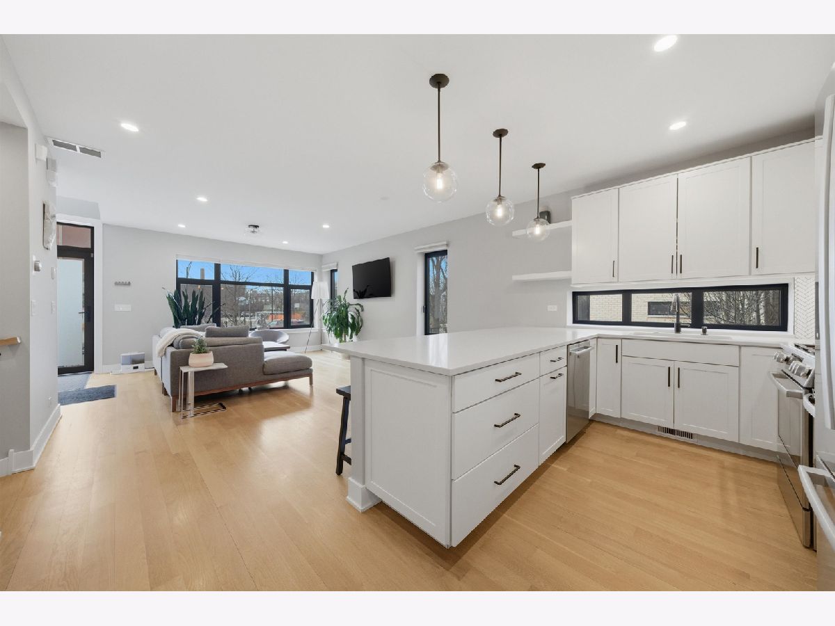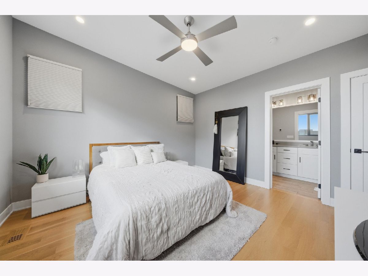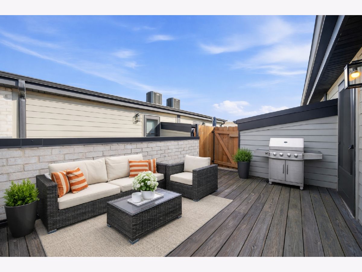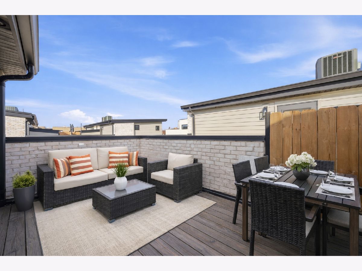 Built in 2020, this rarely available corner 4-bedroom, 3-bath townhome offers the feel of brand new construction in the heart of vibrant Logan Square. This front corner unit faces the park and features a large fenced yard, a rare find for townhome living. Thoughtfully designed with high-end finishes, exceptional attention to detail, and a beautifully landscaped private gated courtyard with dedicated green space, this home stands out from the moment you arrive. The main level features a dramatic lightwell entry and an open-concept kitchen with Bosch appliances, crisp modern finishes, and a stunning quartz breakfast bar overlooking the spacious living and dining area. The second floor includes two generously sized bedrooms with ample closet space, a large full bath with dual vanities, and a laundry room with side-by-side washer and dryer. The entire third floor is dedicated to the private primary suite, complete with a custom-built walk-in closet and a spa-like bath featuring a double vanity, walk-in shower, and heated floors. A private rooftop deck offers exceptional outdoor space and sweeping treetop views. The lower level provides a second living area, an additional bedroom, a full bathroom, and extra storage, making it ideal for guests, a home office, or a media room. Garage parking with an EV charger is included in the price. This home also overlooks Goethe Elementary School playground and park, and is just steps from neighborhood restaurants, shops, and minutes to the California Blue Line. Rockwell Square puts you close to everything Logan Square has to offer. Explore the property in 3D by clicking the virtual tour button and walking through every detail.