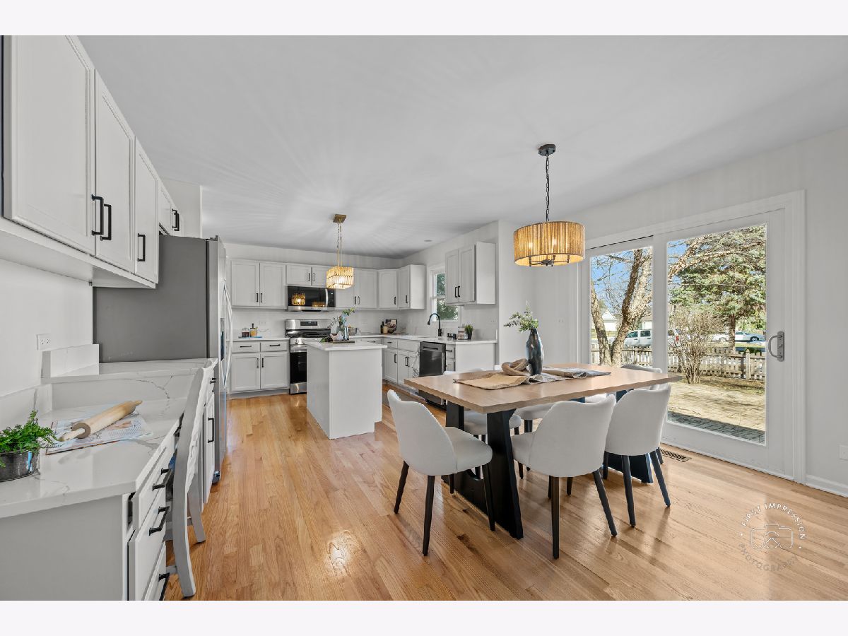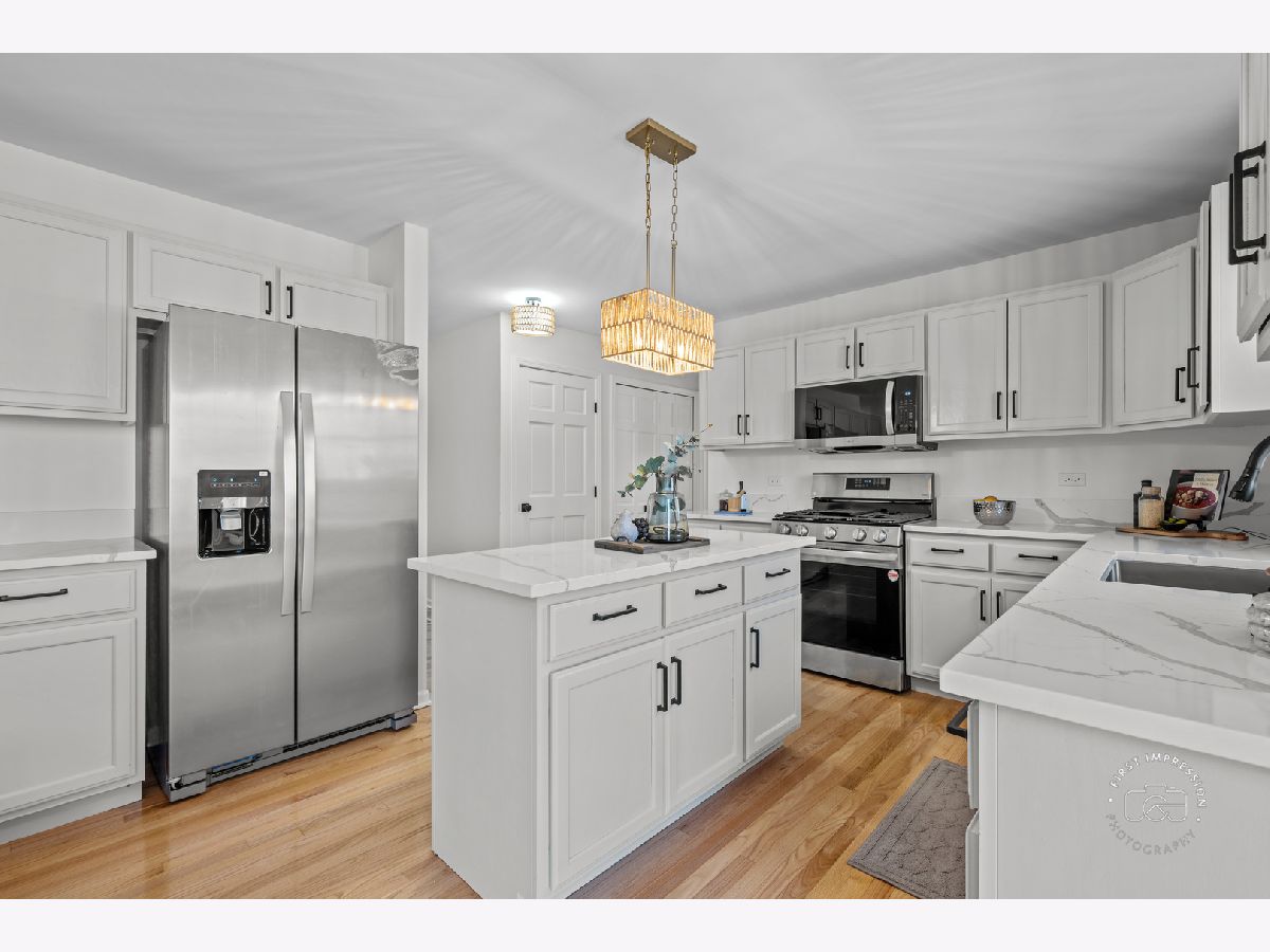 Beautiful updated 4 bedroom home in West Aurora's premier golf neighborhood - Orchard Valley! This large 2,700 sq ft home has a fantastic floor plan with tons of space for everyone. First floor features large eat in kitchen with island, brand new quartz countertops, new appliances, and refinished hardwoods that opens into huge family room. Family room features floor to ceiling brick fireplace. 1st floor office, and 1st floor laundry. 4 huge bedrooms upstairs. Master suite is absolutely massive and features a large walk in closet, and en suite bath with dual vanity with new quartz and faucets, soaking tub, and separate shower. Freshly painted unfinished basement. Large fenced yard with paver patio, and a huge front porch. All major updates are done for you! Recent updates include: AC ('26), Sump Pump ('26), refinished hardwoods ('26), new carpet ('26), new sliding glass door & hall bath window ('26), Kitchen appliances ('26), Roof ('24), Water Heater ('21), Furnace ('17). Move in just in tee time for Orchard Valley Golf Course's big reopening after renovation and tee it up all summer long!