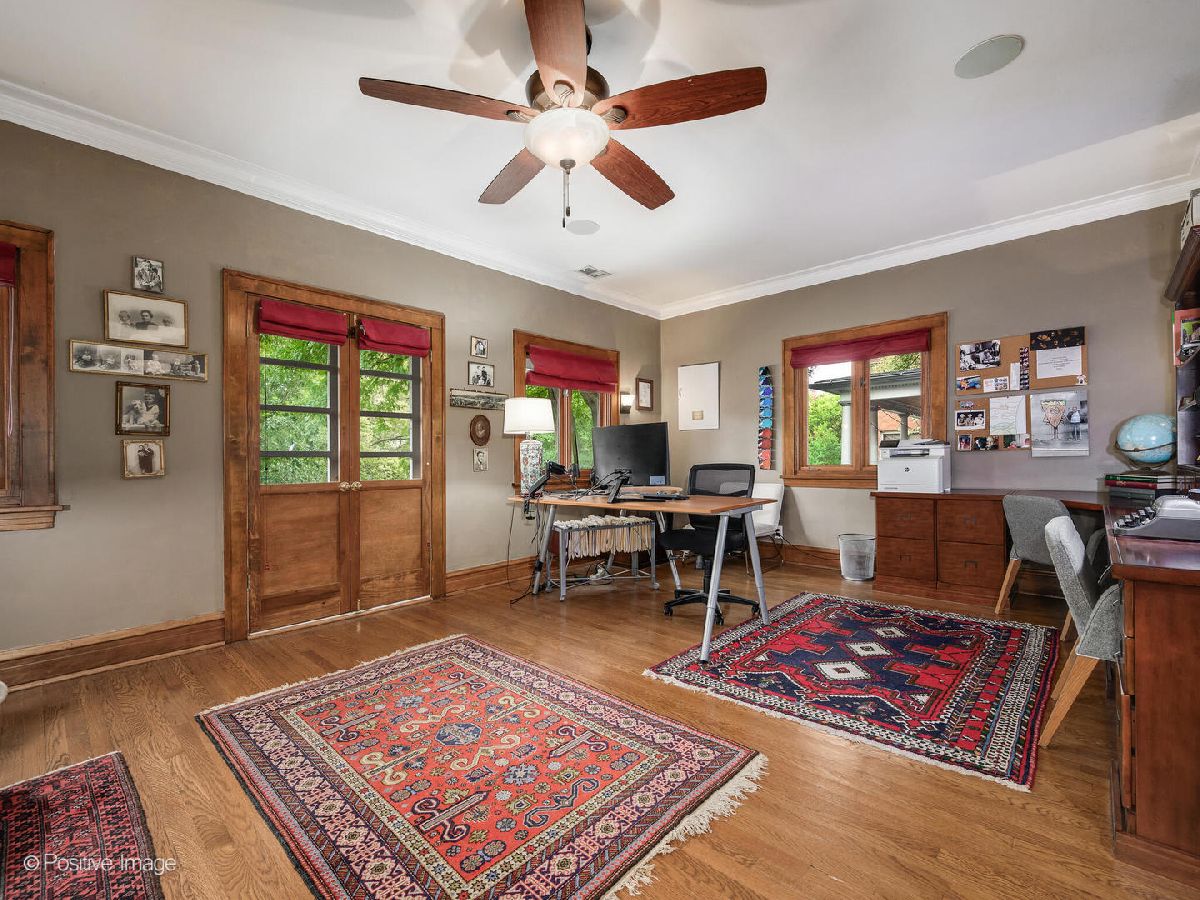 Welcome home to this stunning, center of town home, offering a perfect blend of exquisitely restored period details and modern amenities suited for today's lifestyle. The renovated kitchen is classic beauty, with its stainless steel appliances, double oven, large island, and white 42" cabinetry providing abundant storage. The kitchen opens into the family room making it the heart of the home, while thoughtful built-in storage creates a mudroom area by the back door. The expansive living room provides for two seating areas plus woodburning fireplace and is beautifully accented by dark wood trim and crown molding. Double doors open to the extra wide front porch spanning the width of the home, perfect for entertaining or relaxing outdoors. The spacious dining room is ideal for hosting holiday dinners and parties. Completing the main floor is the 4th bedroom and a full bath, ideal for guests or work from home. Take the beautifully crafted dark wood staircase up past the original leaded windows to the 2nd floor where you'll find the primary suite, two additional bedrooms, and another living area featuring a second woodburning fireplace. This room is currently used as an office, and would also work as a second family room or additional guest space. The massive primary suite boasts a sitting area, a wall of windows, and three closets including a spacious custom-organized walk-in. Primary bath features a whirlpool tub and separate shower. Two additional bedrooms, a full bath, and convenient 2nd floor laundry complete this floor. The unfinished basement provides another laundry room plus loads of storage space. In addition to the sprawling front porch, the large backyard also features green space, a back deck, patio for dining al fresco, and seating around a fire pit. 2.5 car heated garage with driveway providing even more parking space. All new custom lighting as well as original hardwood floors throughout. Dual zoned HVAC and updated plumbing, electrical, and windows. Recent updates include two new 75-gallon water heaters, newer washer/dryer, and both furnaces. All this AND an absolutely unbeatable location - one of the best blocks in Oak Park and so conveniently located, walkable to all the dining, shopping, cafes, and boutiques downtown Oak Park offers as well as the green line/Metra.