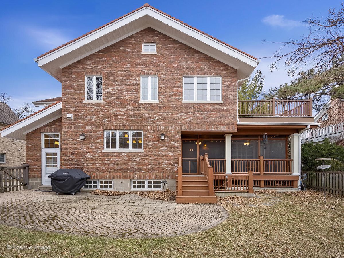 This exceptional home is set on a rare 75-foot-wide lot along one of the most coveted streets in the Historic District of La Grange. Showcasing timeless curb appeal, this center-entry brick Colonial features a bluestone front walk and porch, paver brick terrace, clay tile roof, fully fenced backyard, and an incredible screened-in porch-just the beginning of all it has to offer. Inside, you'll find a thoughtfully designed floor plan highlighted by rich moldings, beautiful French doors and gleaming hardwood floors throughout. A welcoming vestibule opens to a gracious foyer, flanked by a formal dining room and an entertainment-sized living room with an inviting fireplace. The impressive two-story rear addition (2009) elevates the home with a chef's kitchen boasting custom Craftsman-style solid oak cabinetry, a generous center island with breakfast bar and a spacious breakfast room with a built-in desk. A rear hall with mudroom and main-floor powder room add to the home's functionality and appeal. The main-floor family room is filled with natural light from surrounding windows and features a second fireplace, custom built-ins, and the home's original terracotta mosaic tile floor. Upstairs, four spacious bedrooms and two full baths-including the expansive primary suite addition-offer comfortable living. The luxurious primary retreat features a vaulted ceiling, sitting area with private rooftop deck access, walk-in closet, laundry room, and spa-inspired bath complete with rain shower, body sprays, river rock flooring, whirlpool tub and double vanity. The walk-up third floor offers excellent storage or expansion potential, while the finished basement with exterior access provides abundant additional living space, including a recreation room, craft room, workshop, private office with exercise area (potential 5th bedroom), utility room with second laundry, ample storage and a third full bath. All of this is complemented by highly regarded local schools-Cossitt Elementary, Park Junior High and Lyons Township High School. Ideally located just half a block from Elm Park, two-and-a-half blocks to the Stone Avenue train stop and the West End Business District, and an easy stroll to schools and vibrant downtown La Grange with its restaurants, movie theater and library. A rare opportunity to own a truly special home in an unbeatable location!