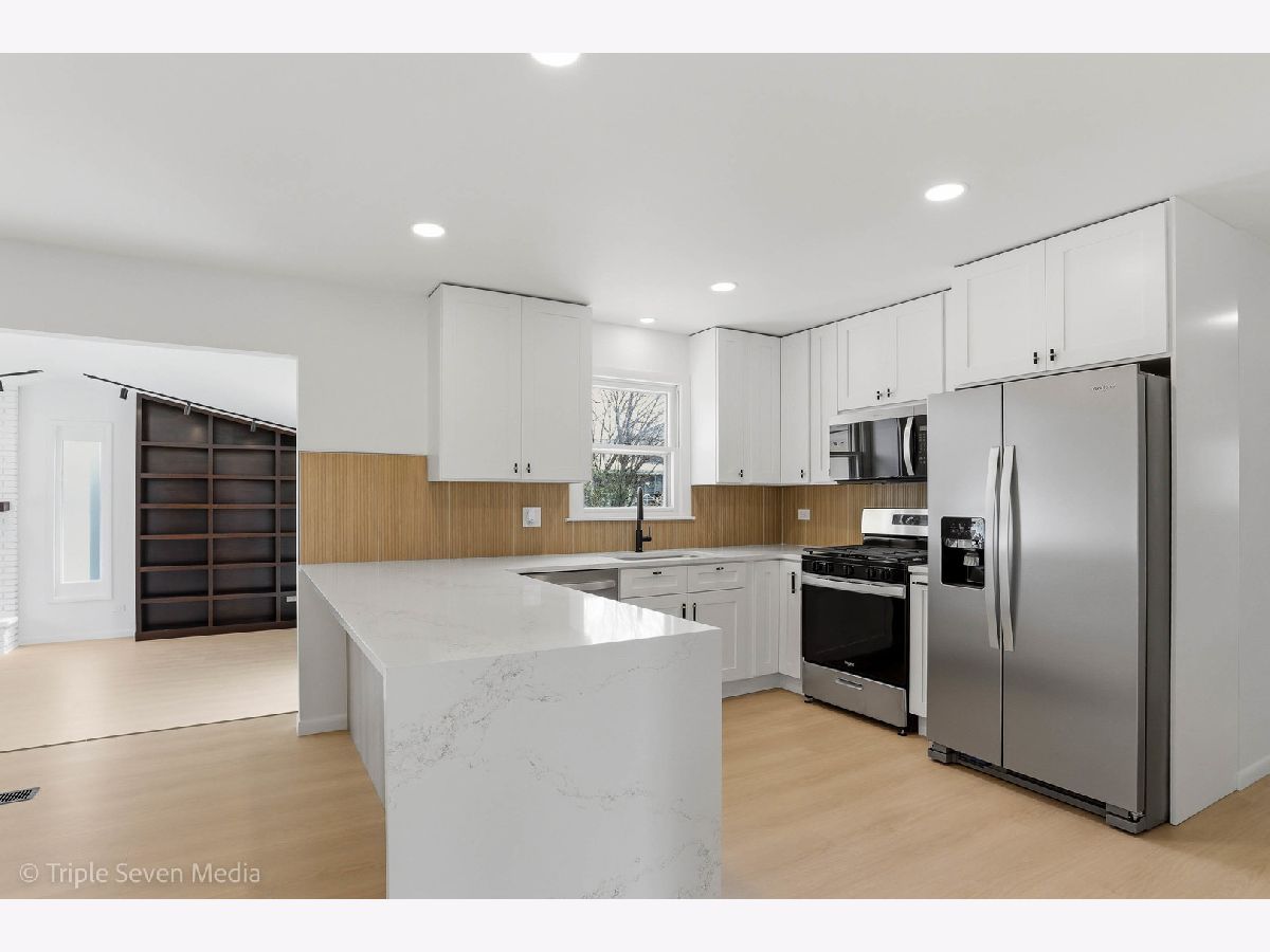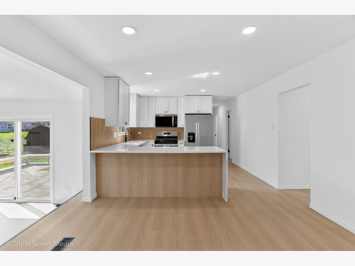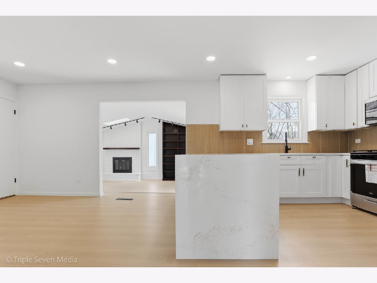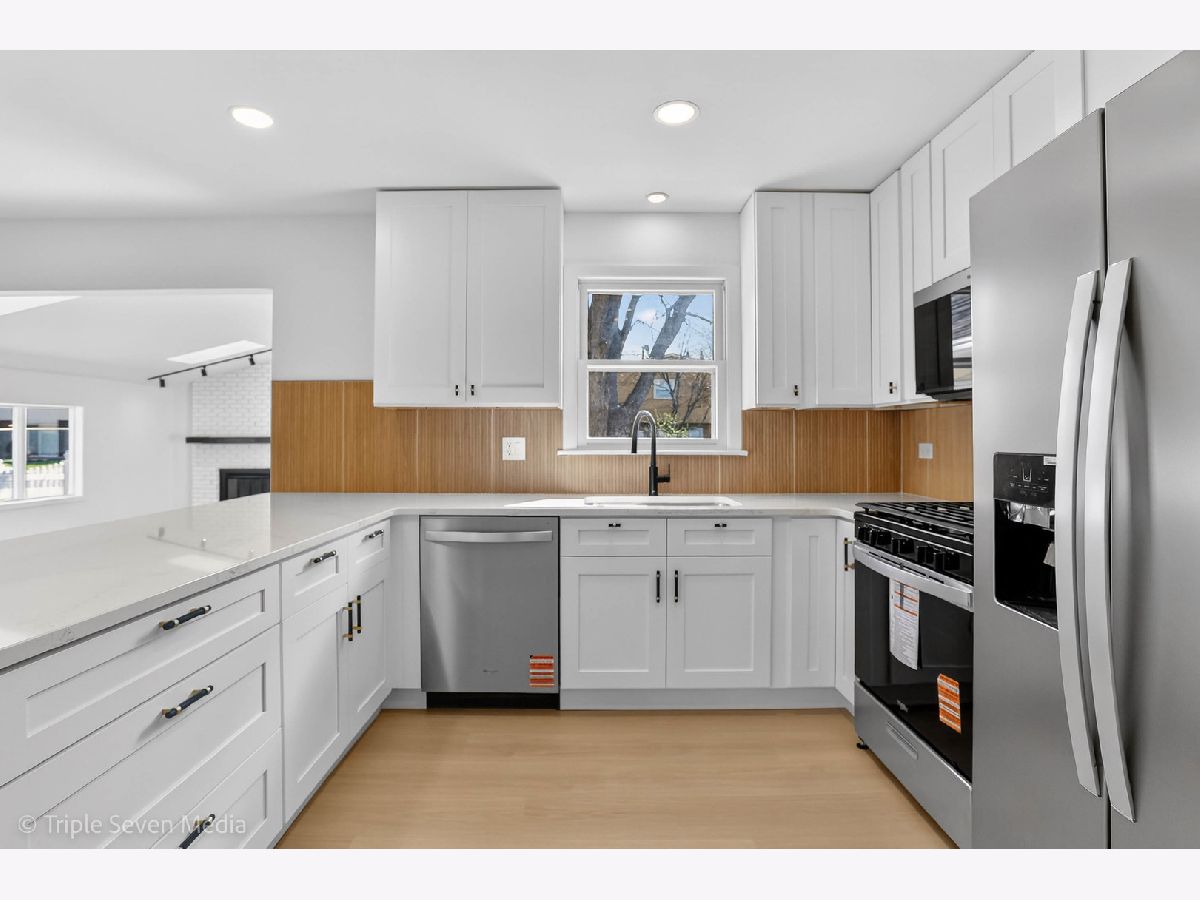 Welcome to this stunning 3-bedroom, 2-bath expansive ranch offering 1,663 square feet of expertly designed living space. The home features a newly repainted exterior and attached 2-car garage, setting the tone for the high end finishes throughout. Inside, a spacious living room flows into a striking kitchen featuring an 8-foot waterfall island in Heart of Gold quartz, soft-close cabinetry, bamboo fluted tile backsplash, and a brand-new Whirlpool appliance package including refrigerator, dishwasher, range, and microwave, accented by matte black knurled hardware throughout. The great room showcases soaring 10-foot ceilings, skylights, a matte black fireplace, and a custom-built bookshelf, with sliding glass doors leading to a large deck with built-in seating, ideal for entertaining. The home includes three generously sized bedrooms, including a primary suite with private full ensuite bath. Bathrooms feature large-format tile from floor to ceiling, creating a dramatic, marble spa-inspired feel. The basement offers clean painted ceilings and walls, ideal for a game room, gym, storage, or furnished living area, along with a dedicated laundry area. New can lighting and updated electrical, a brand-new water heater, and HVAC and roof certified by licensed professionals provide added peace of mind. Located on a quiet street near Lake George, within the subdivision of Neil Armstrong Elementary School, with nearby shopping and easy highway access.