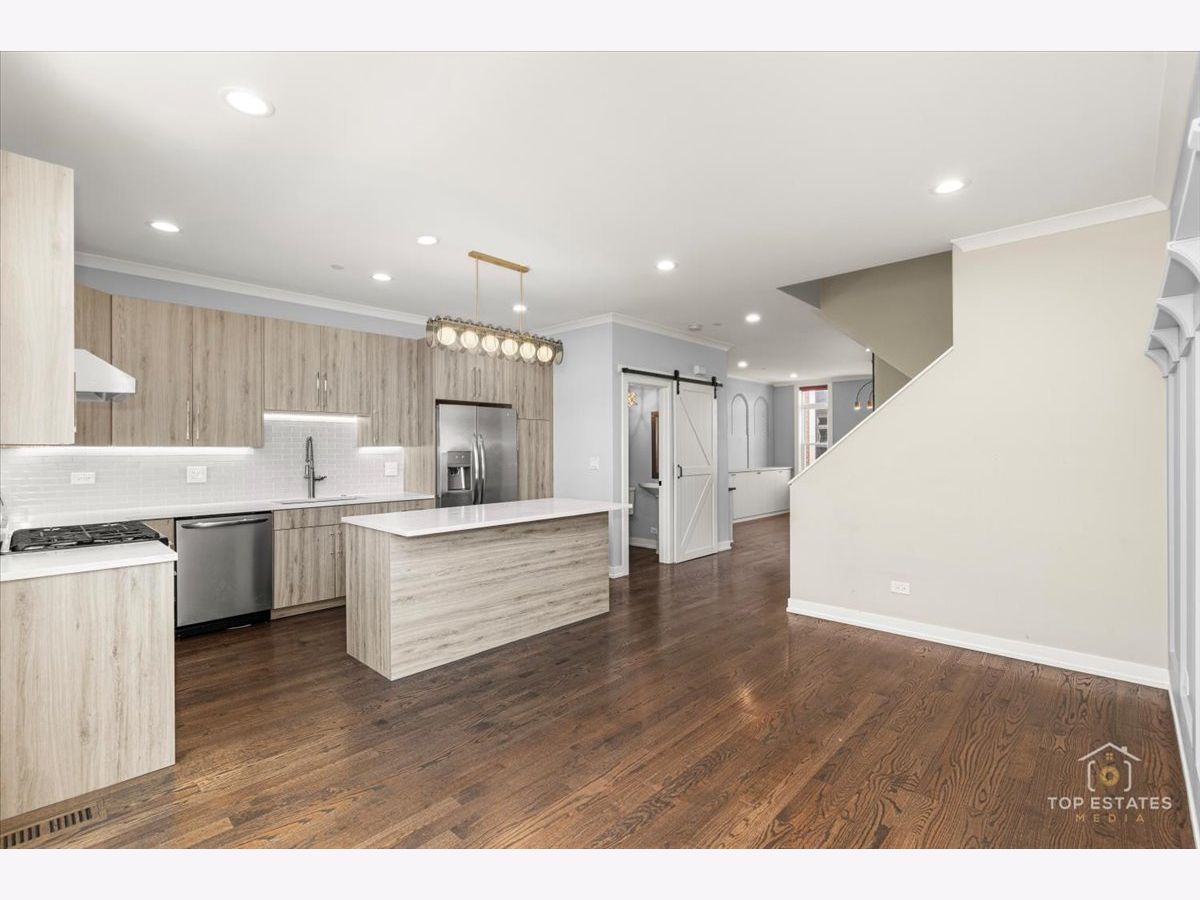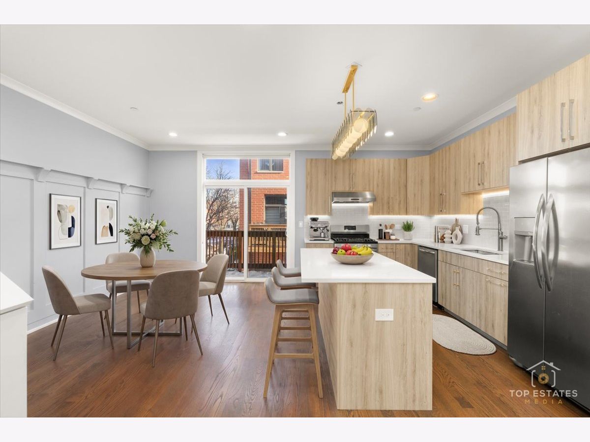 Remarkable-upgraded home CORNER UNIT with SIDE YARD (around 600 sq feet extra outdoor space!) Top-tier finishes, including stainless steel appliances, quartz countertops, sleek cabinetry. Remodeled Bathrooms are beautifully-designed with porcelain tiles, while hardwood floors enhance the spacious, open concept living area. Exceptional custom California closet built in for work and closets in the main bedroom. The layout includes three bedrooms upstairs and a large recreation room on the first floor, which opens onto a private patio with the amazing out door space. An attached 2 car garage adds convenience. Just steps from the "Heart of Chicago," with its iconic Italian restaurants and near Pilsen's vibrant dining, shopping, and arts scene. Near Medical District, major highways, and downtown, plus easy access to Costco, Mariano's, and Target, this home combines luxury and convenience. Rare corner home opportunity!