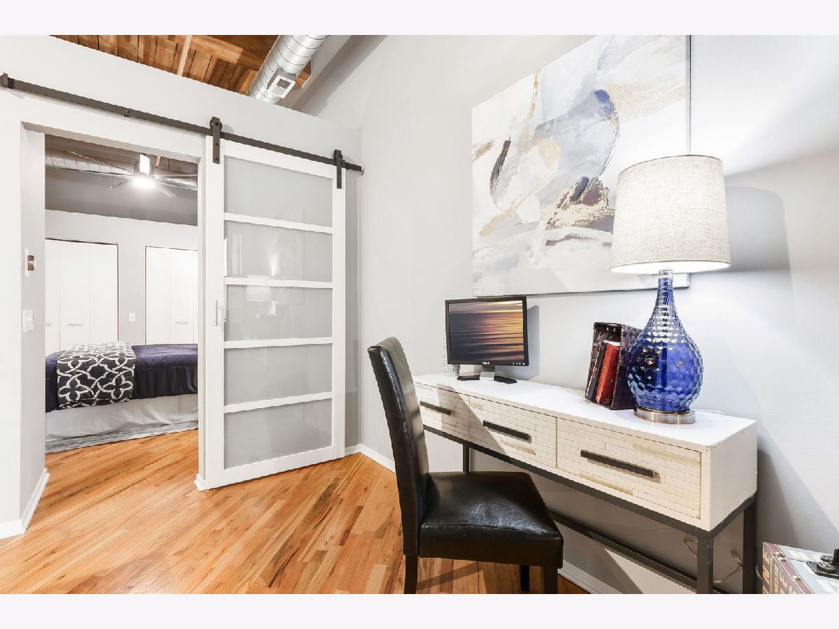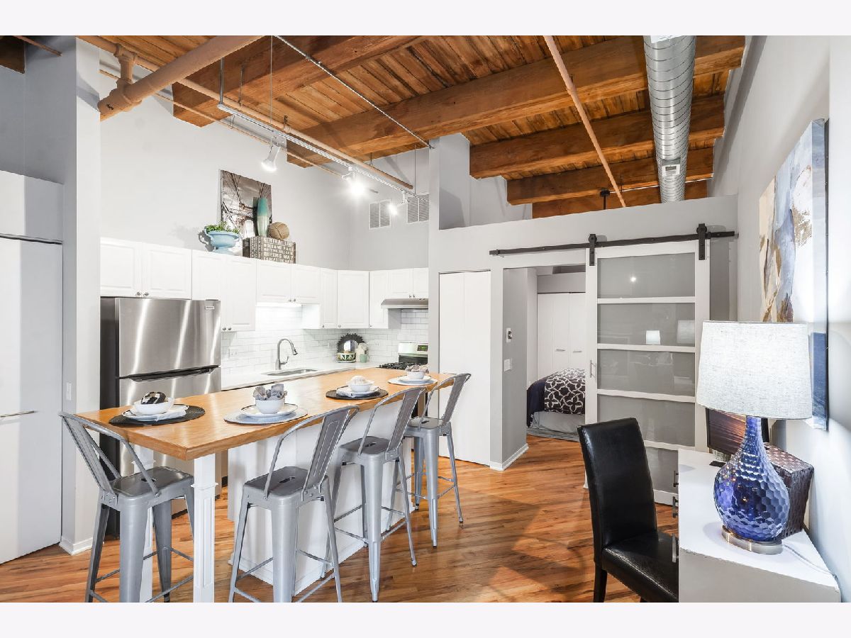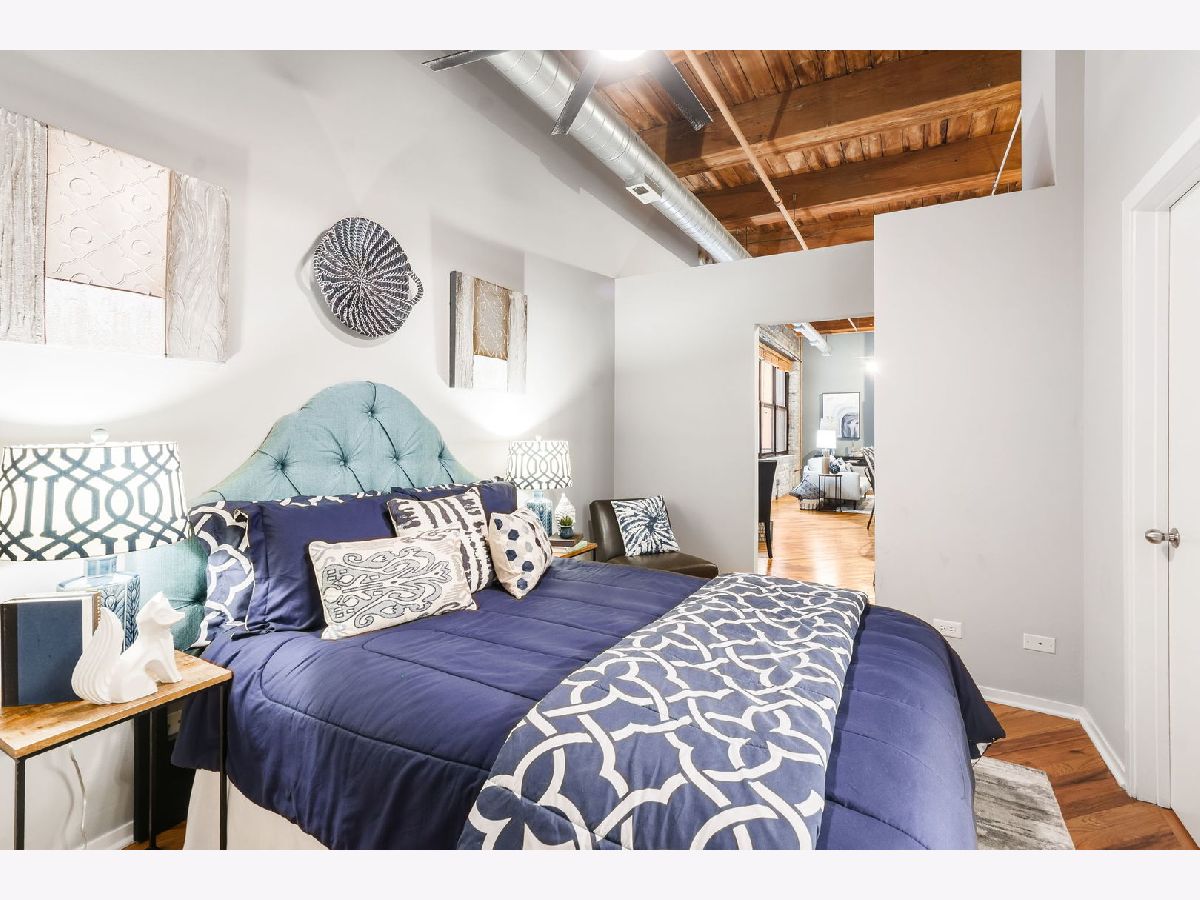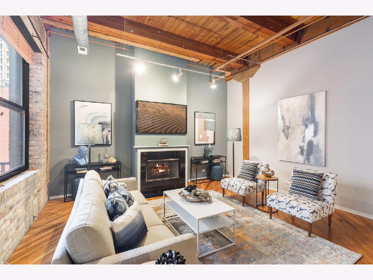 Spacious loft home in the sought after Fulton River District/West Loop neighborhood! This one bedroom/one bath unit has amazing character with exposed brick and timber beams throughout. The open floorplan is perfect for entertaining and huge windows allow for an abundance of natural light. Updated kitchen with white cabinets, quartz countertops, large butcher block island, custom backsplash and stainless steel appliances. Other unit features include hardwood floors throughout, balcony, gas fireplace, in-unit washer/dryer and central heat/air. Primary bedroom has Elfa organized closets along with an en-suite bathroom. Building amenities include exercise room, storage, on-site manager & maintenance. This location is unbeatable, situated in the heart of the Fulton Market, steps from the West Loop and River North. It's conveniently close to the Loop, public transportation options, Metra stations, expressways, expanded Chicago Riverwalk leading east to Lake Michigan, various grocery stores, retail shopping, green parks and the vibrant dining scene along Randolph Street and Fulton Street. One garage space available for additional purchase at 20K, but does not need to be sold with the unit.