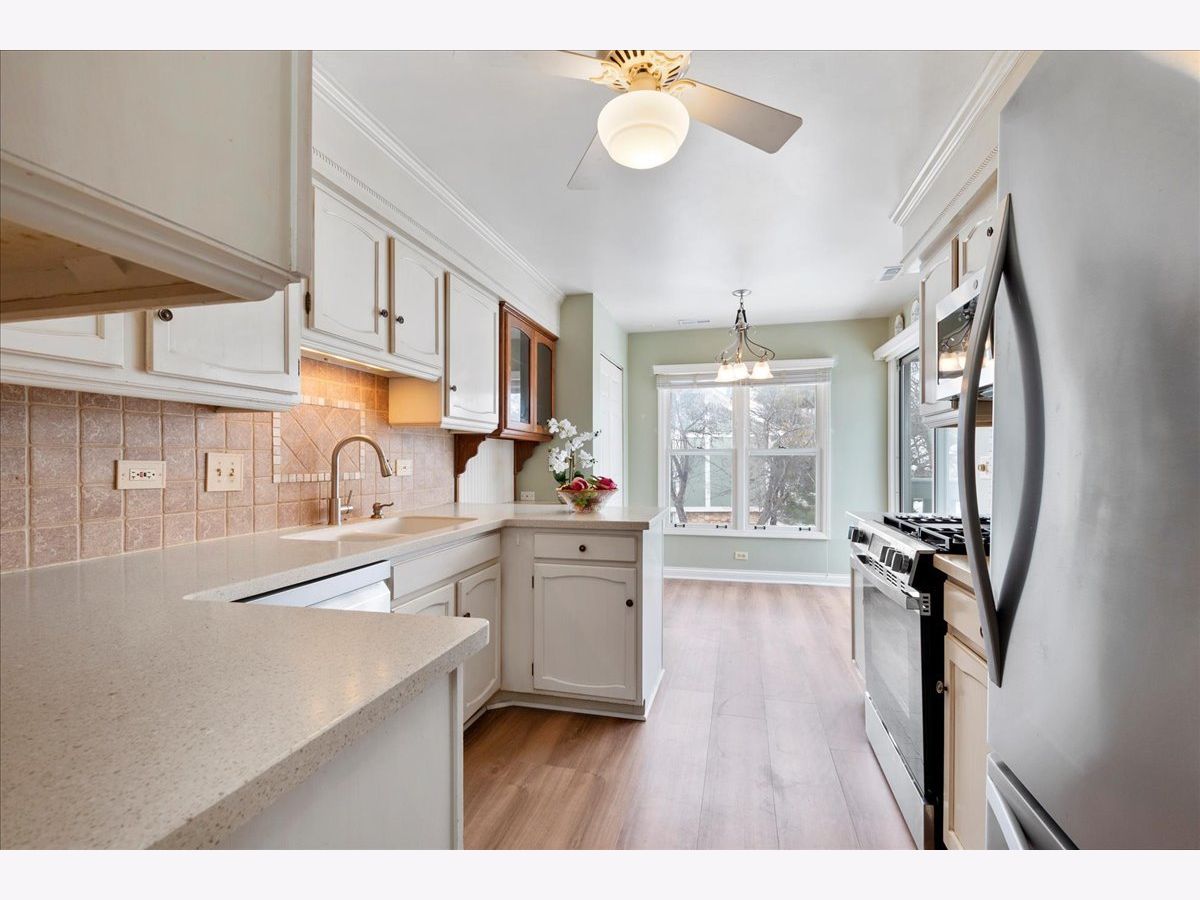 Rare opportunity to own a fully upgraded 3-bedroom, 2-bath second-floor townhome. This move-in-ready home features brand-new 2025 stainless steel appliances (dishwasher, stove, microwave, washer/dryer), luxury vinyl plank kitchen flooring (2025), a newer AC (2022), and an EV charger outlet in the garage (2025). Major improvements include roof and gutters (2021), balcony deck (2021), remodeled bathrooms (2019), furnace (2017), and custom window treatments, offering peace of mind and low-maintenance living. Enjoy a private balcony, an updated primary suite with dual granite vanities, community pool and tennis courts, and a prime Vernon Hills location near shopping, parks, Metra, and major highways.