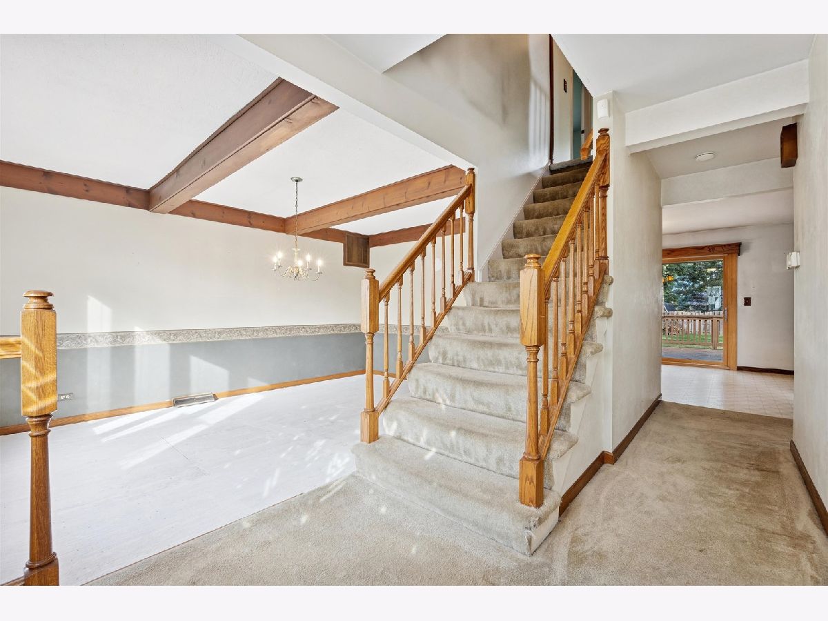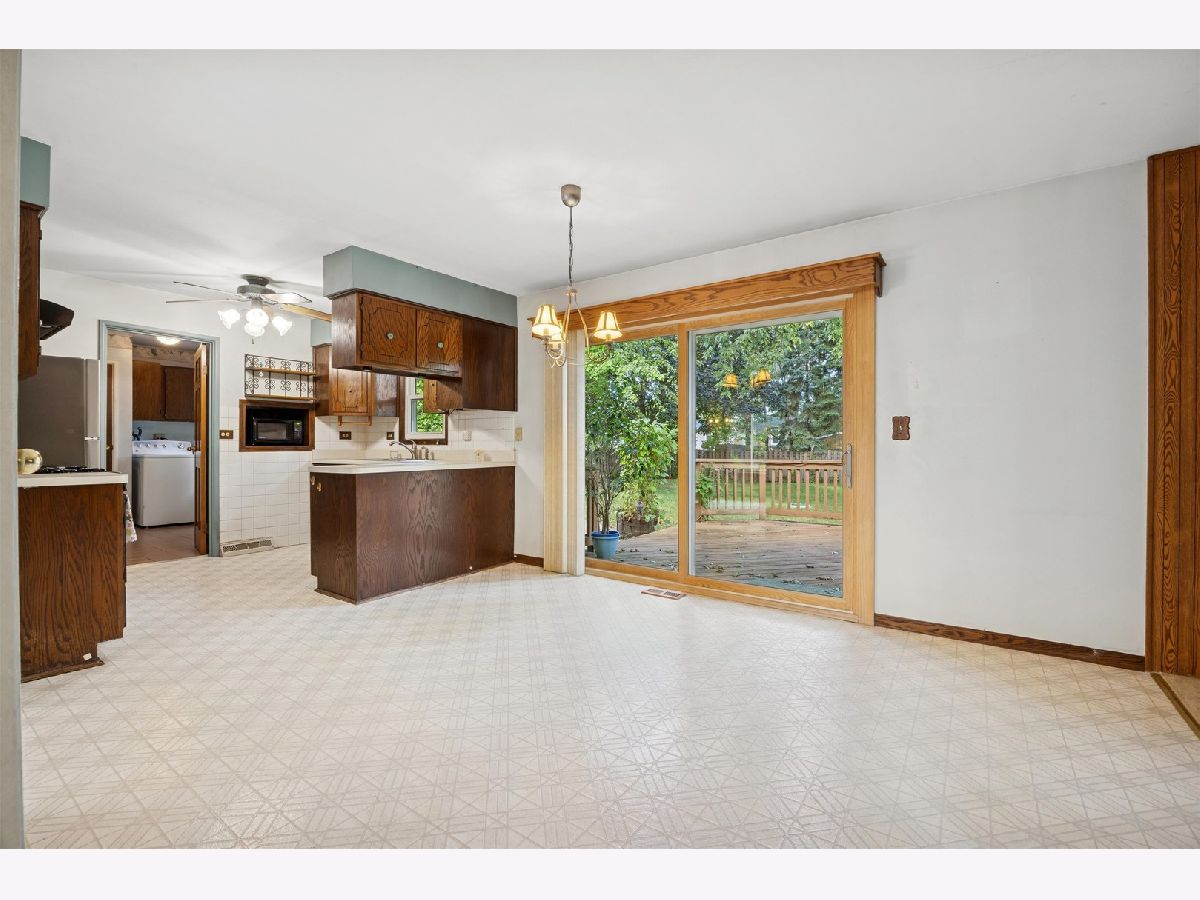 This charming 1.5-story home offers 3 bedrooms, 2 full baths, and 1,800 sq. ft. of living space, plus a full, unfinished basement. While the home is ready for modern updates, it is solidly built and well-maintained, providing a great foundation for your vision. The main level features a spacious layout with the kitchen and eating area leading into the family room. The separate dining room could become your formal living room or home office. The first-floor primary bedroom has a shared full bath. Upstairs, you'll find two additional bedrooms, a full bath, and a versatile den/family room area - ideal for a playroom or lounge. A separate laundry room off the kitchen adds convenience and a true mudroom feel as it leads to the attached garage and backyard. Enjoy your backyard retreat with a large deck, brick paver patio, and hot tub - perfect for entertaining or relaxing. The home is walking distance to the elementary school, park & walking trails. It is close to Boughton Ridge Golf Course, and is just a mile from shopping and restaurants at The Promenade, and I-355 access. With great bones and ample space both inside and out, this property is an excellent opportunity to create the home of your dreams. Love Bolingbrook.