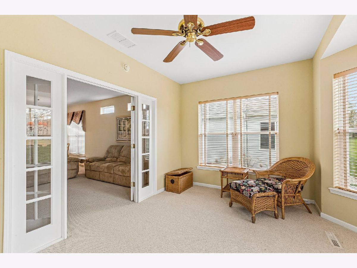 Turn-key, pridefully maintained single-owner 2 bed/2 bath ranch in the 55+ Saddlebrook Farms community, thoughtfully designed for comfortable, low-maintenance living with updates throughout. The functional, open layout is immediately apparent upon entry, with clear sightlines extending from the front door through to the back, creating an airy, connected feel. The eat-in kitchen flows seamlessly into the living room, where clerestory windows bring in consistent natural light while maintaining privacy. A standout sunroom accessed through French doors expands the living space with large bay windows, abundant sunlight, & direct access to the back deck, creating a quiet, inviting setting with open views & no rear neighbors. The primary bedroom features bay windows, a private full bath, & walk-in closet, while the second bedroom & additional full bath offer flexibility for guests or hobbies. Notable updates include a newer roof, washer and dryer, furnace, humidifier, & an extended garage with added window, reflecting consistent care & thoughtful functionality. Saddlebrook Farms supports maintenance-free living with walking paths, stocked lakes, fitness center, pickleball & bocce courts, library, lake house, & community spaces designed for ease and connection.