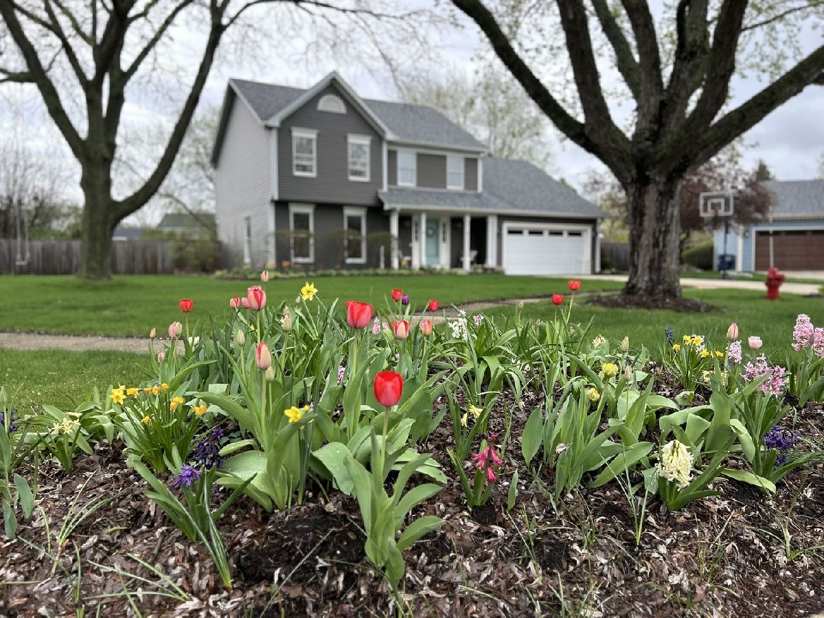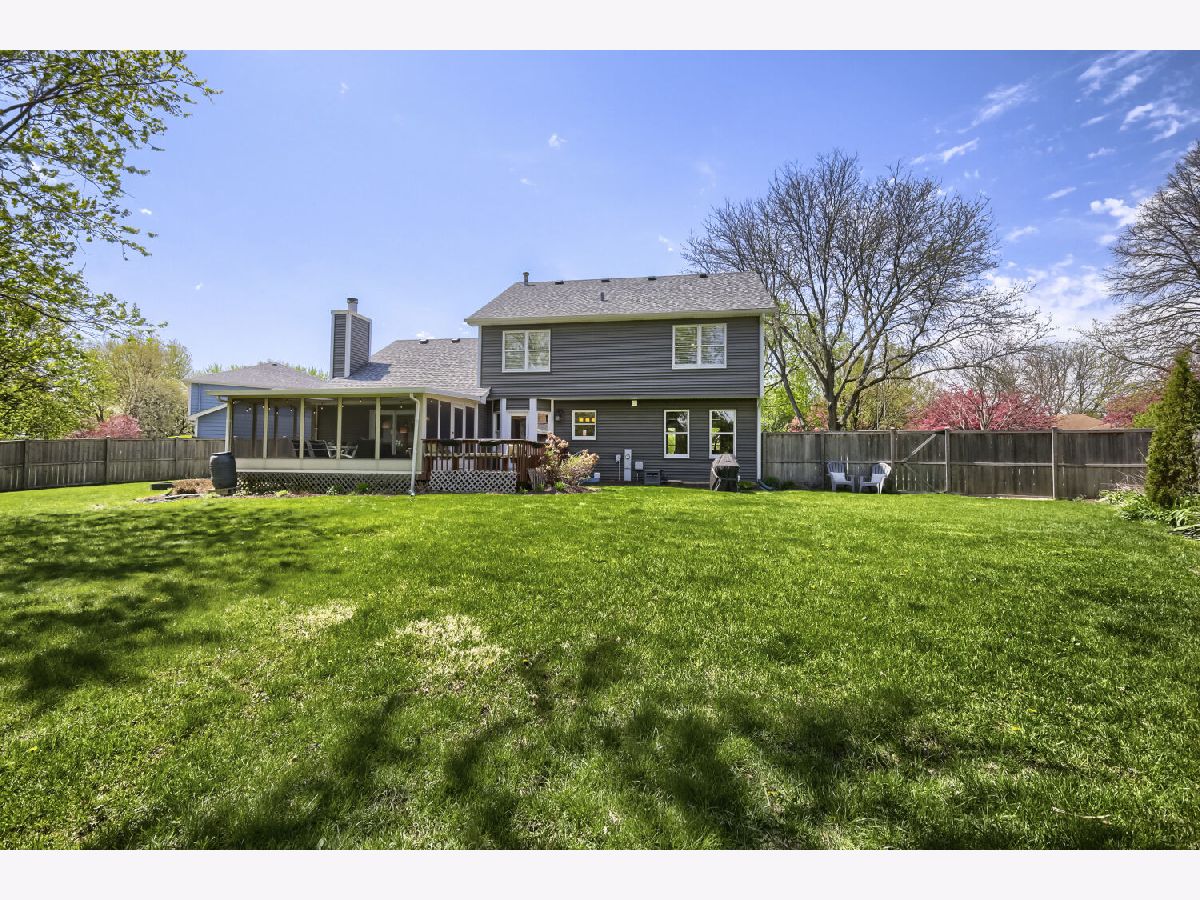 Situated on a quiet cul-de-sac, this beautiful home offers both privacy and presence in one of Geneva's most desirable areas. Showcasing true car-stopping curb appeal, it features striking dark siding, a charming robin's egg blue front door, and thoughtfully designed landscaping bursting with seasonal color. Perfectly positioned within walking distance to Williamsburg Elementary, Geneva Commons, and Delnor Hospital, and just minutes from downtown Geneva shopping and dining. The location is as exceptional as the home itself. Inside, you'll find a spacious and thoughtfully designed layout with an abundance of natural light from oversized first-floor windows. The large eat-in kitchen opens seamlessly to a dramatic vaulted family room with exposed beam detail and a floor-to-ceiling brick, wood-burning fireplace, perfect for cozy gatherings. The main level also includes formal living and dining rooms, plus a convenient first-floor laundry room. Enjoy indoor-outdoor living with a generous screened-in porch with skylights and lighting, and an attached deck complete with built-in bench seating, overlooking a fully fenced backyard with mature landscaping, garden beds, and storage shed. All four bedrooms are on the second floor, including a primary bedroom with private ensuite bath. The basement expands your living space with a rec room, dry bar, dedicated office area, storage and crawl space, ideal for work or play. Additional highlights include, Epoxy-coated 2-car garage with built-in cabinet storage, Whole house fan and furnace air purifier, Active radon mitigation system, Newer siding, roof, garage door, hot water heater, and meticulously maintained HVAC system with humidifier. This home truly has it all, location, floorplan, mature yard, and timeless style!
